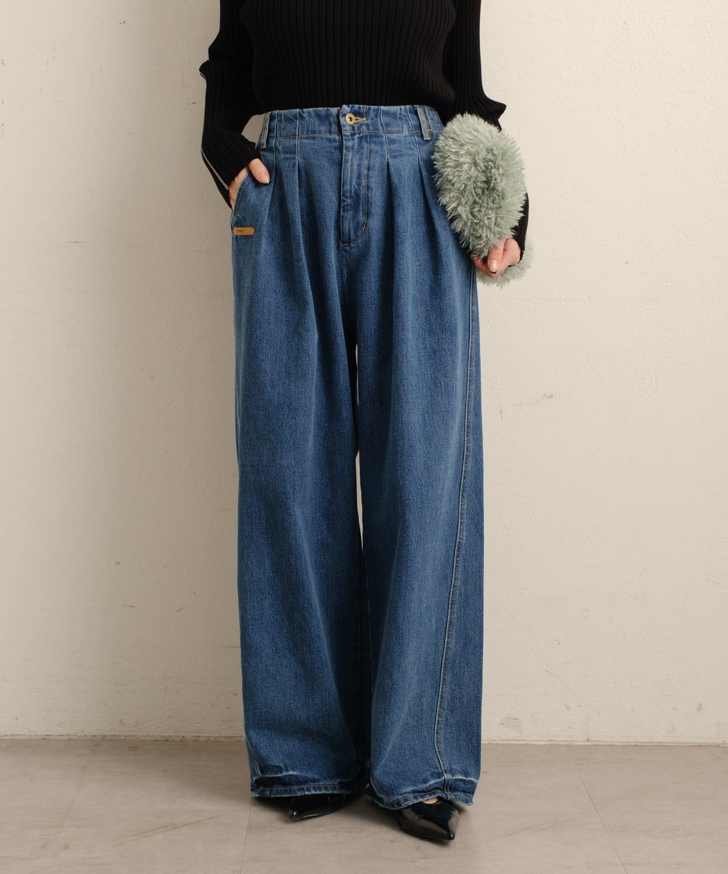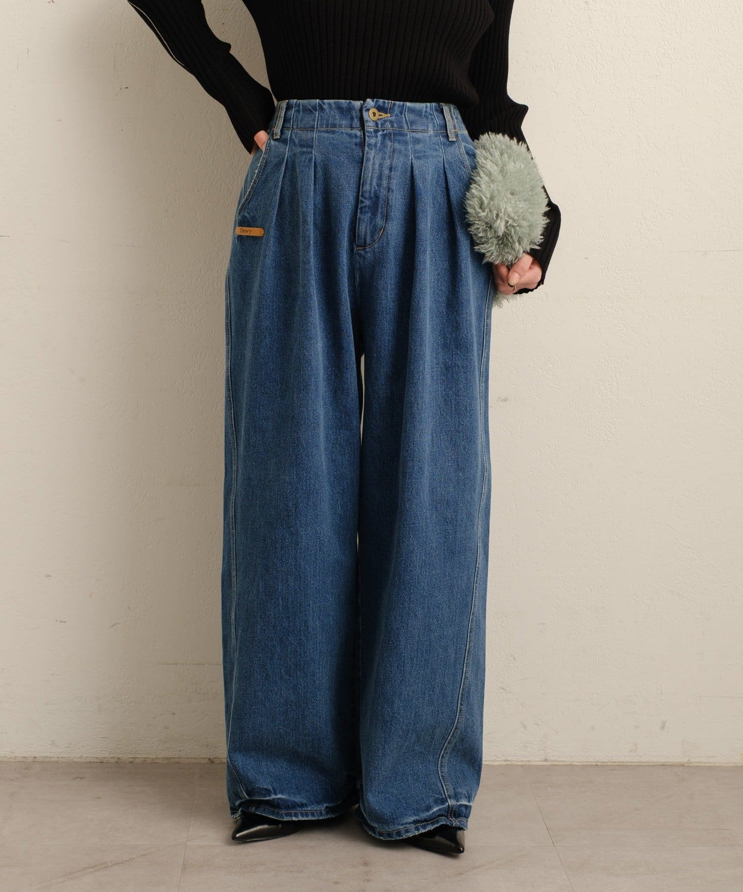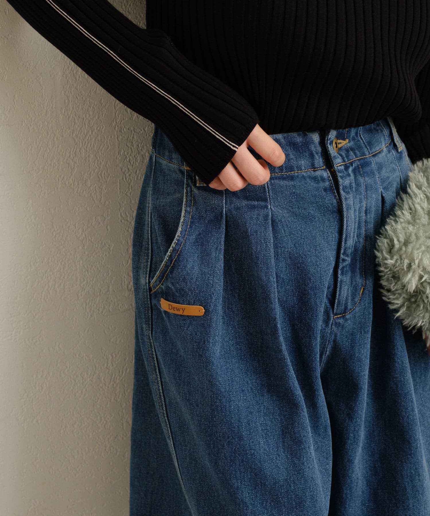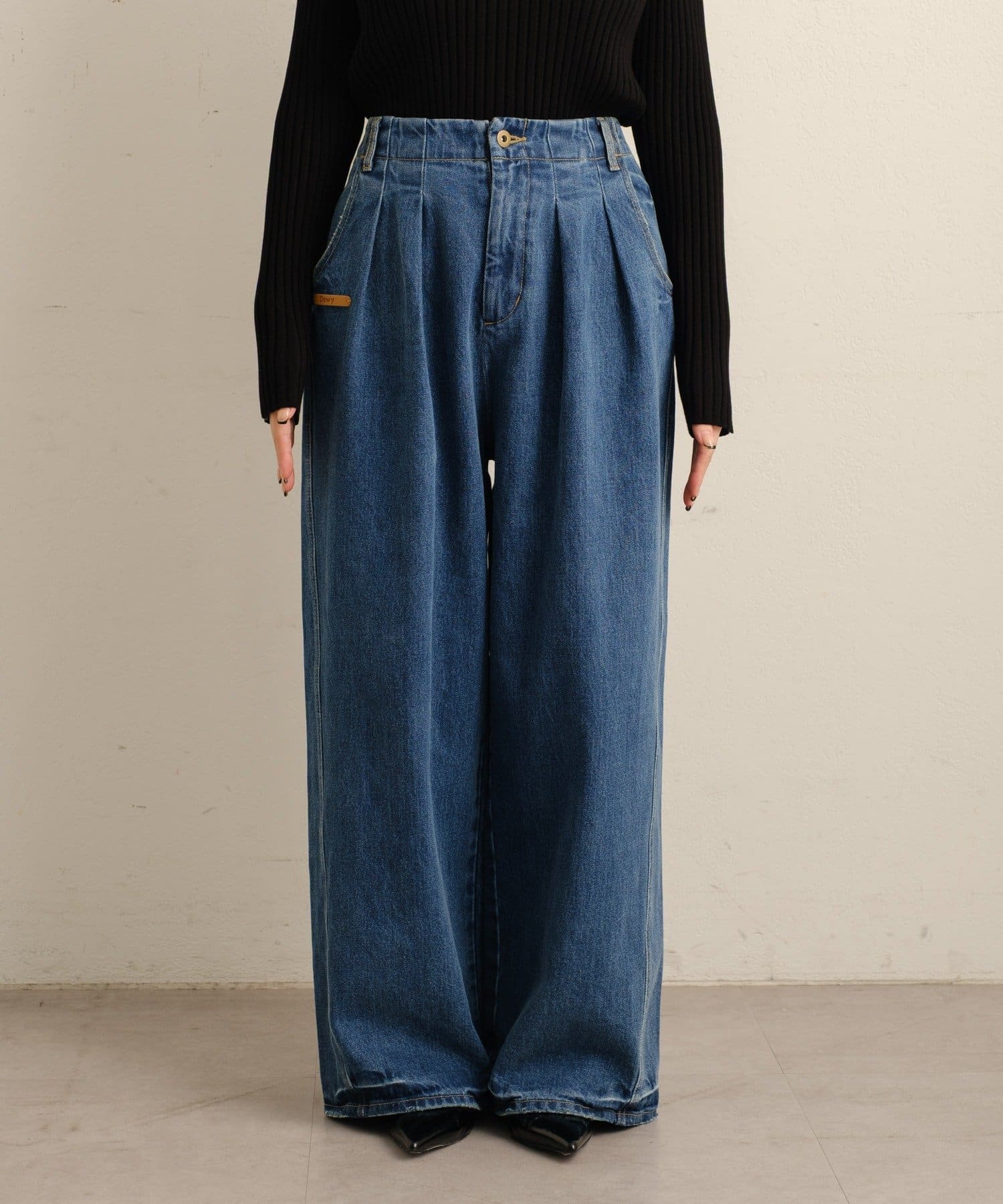 Dewyのレザータグがポイントになる大人カジュアルデニム