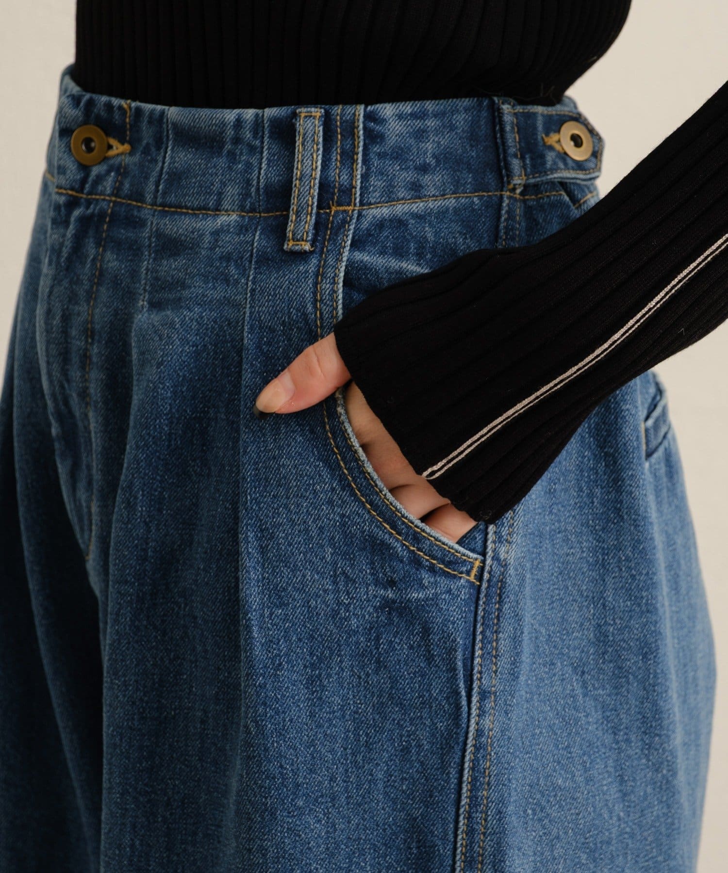 ダブルタックデニムパンツ