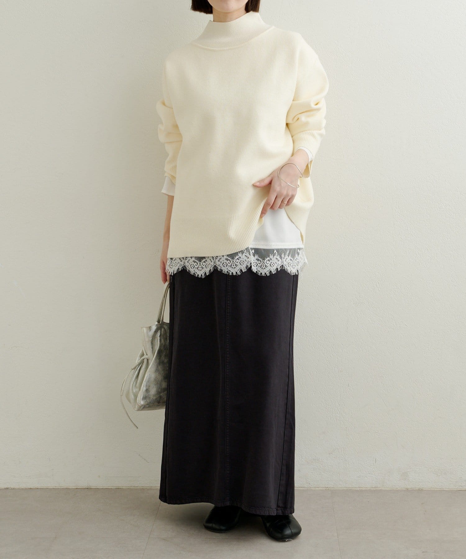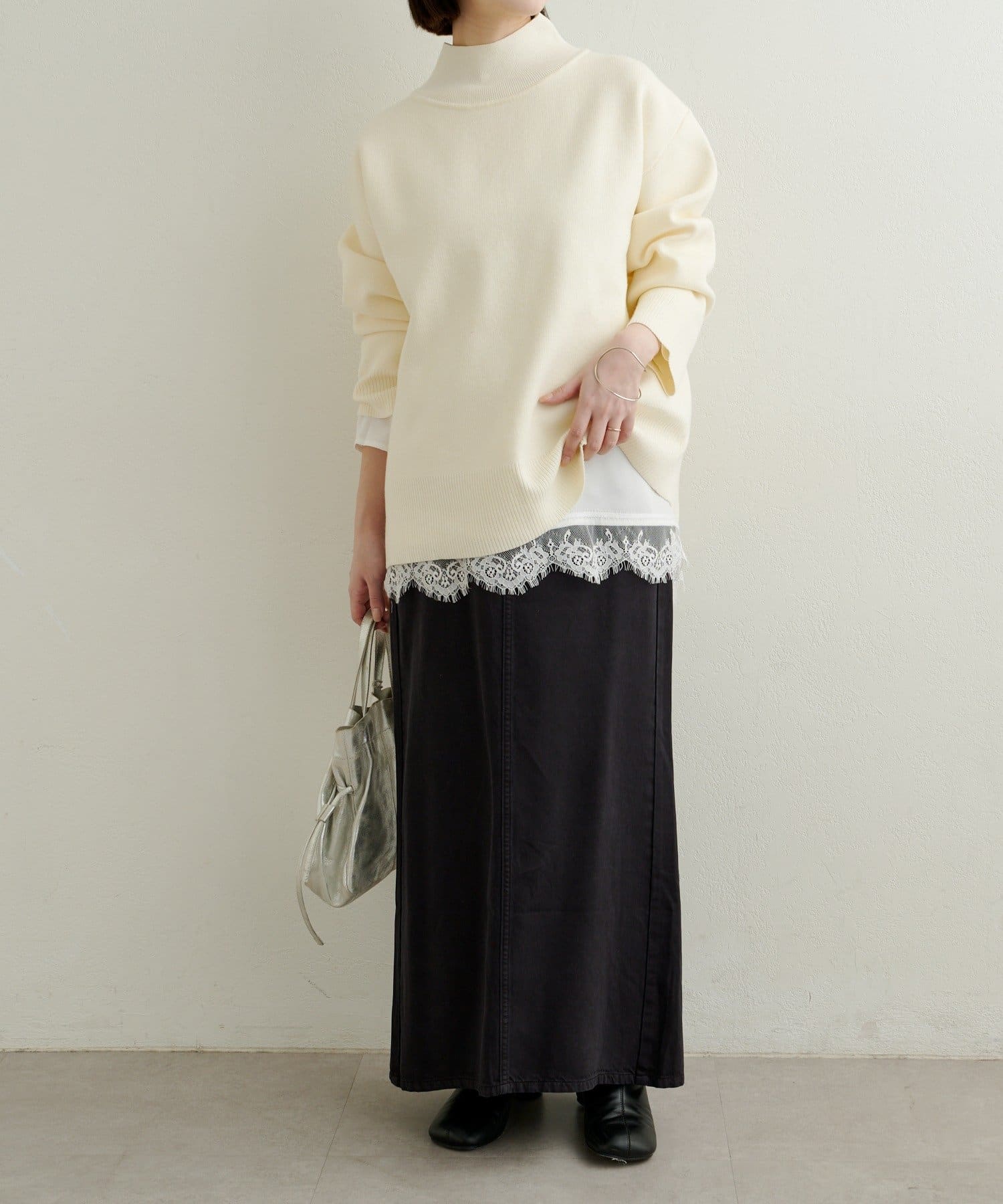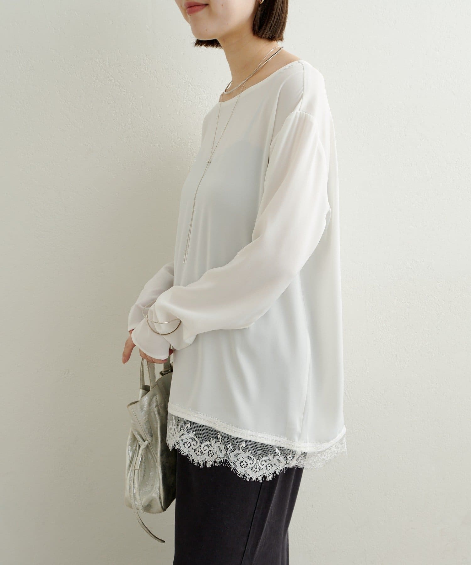 ・さりげないレースが女性らしさを演出してくれる一枚。