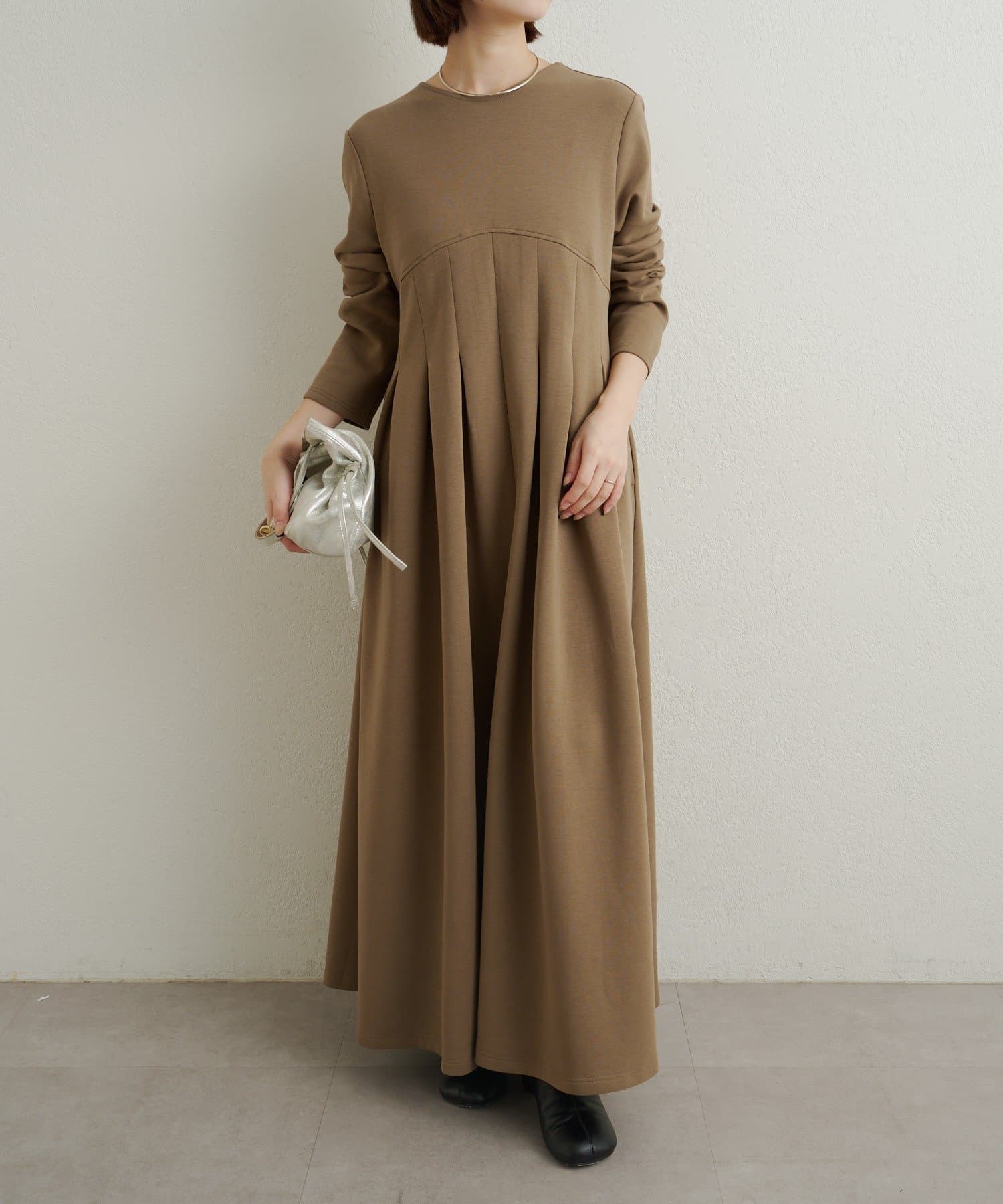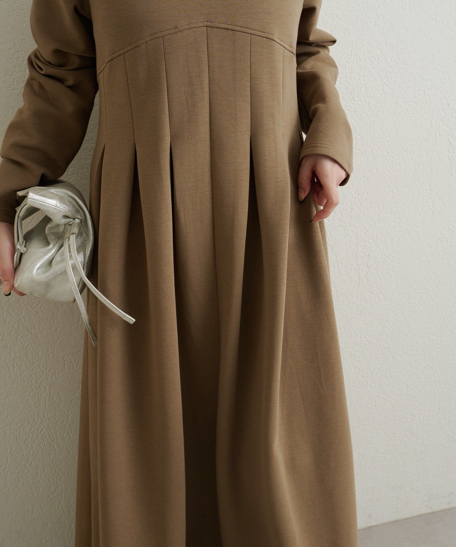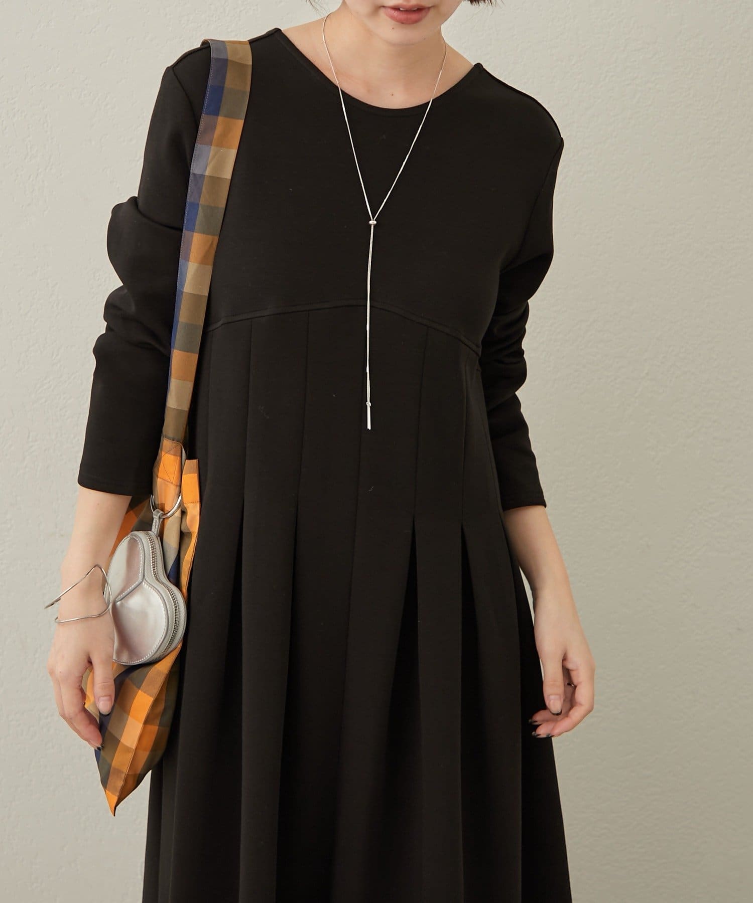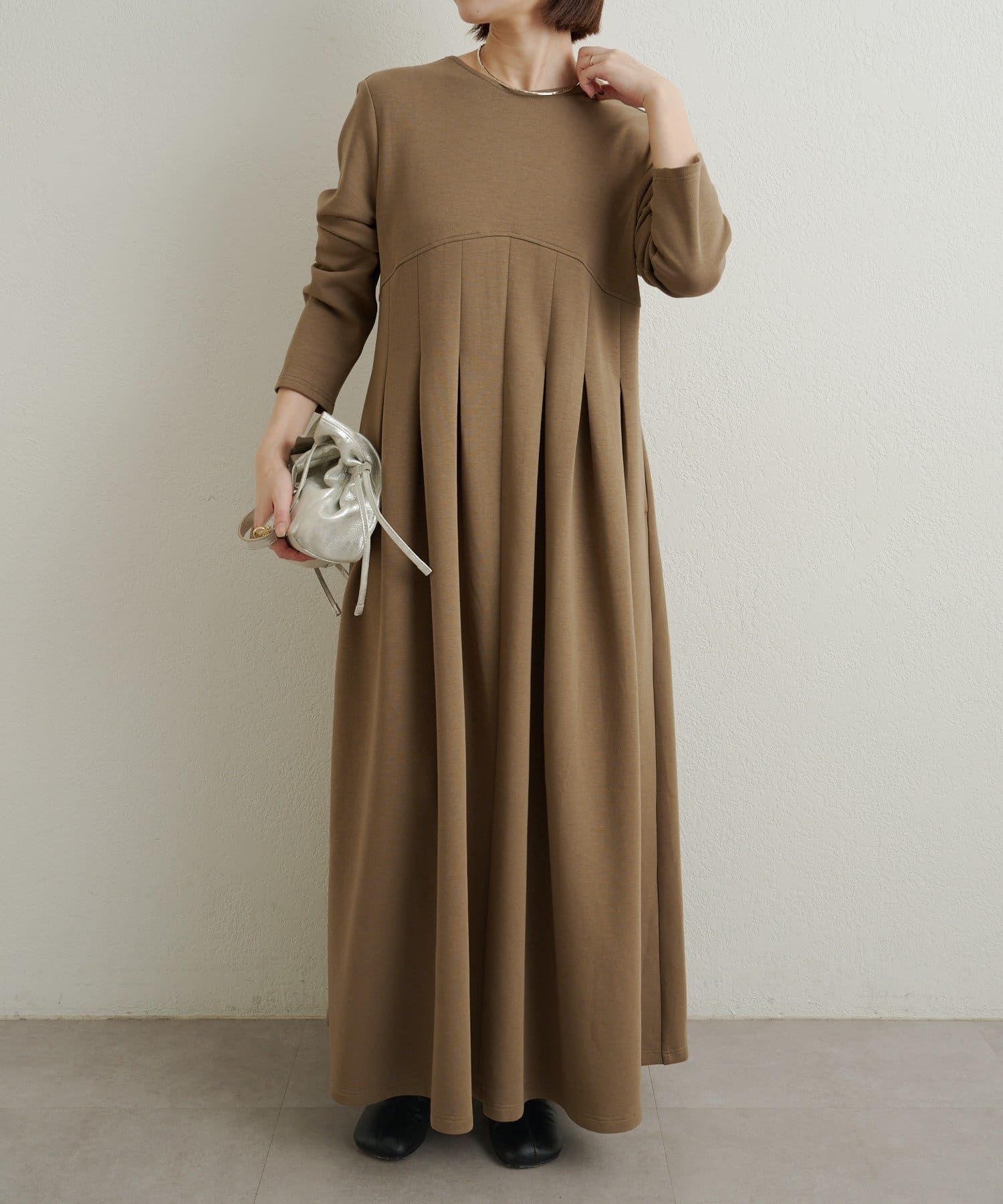 ・プリーツデザインがスタイリングのポイントになるポンチワンピース。