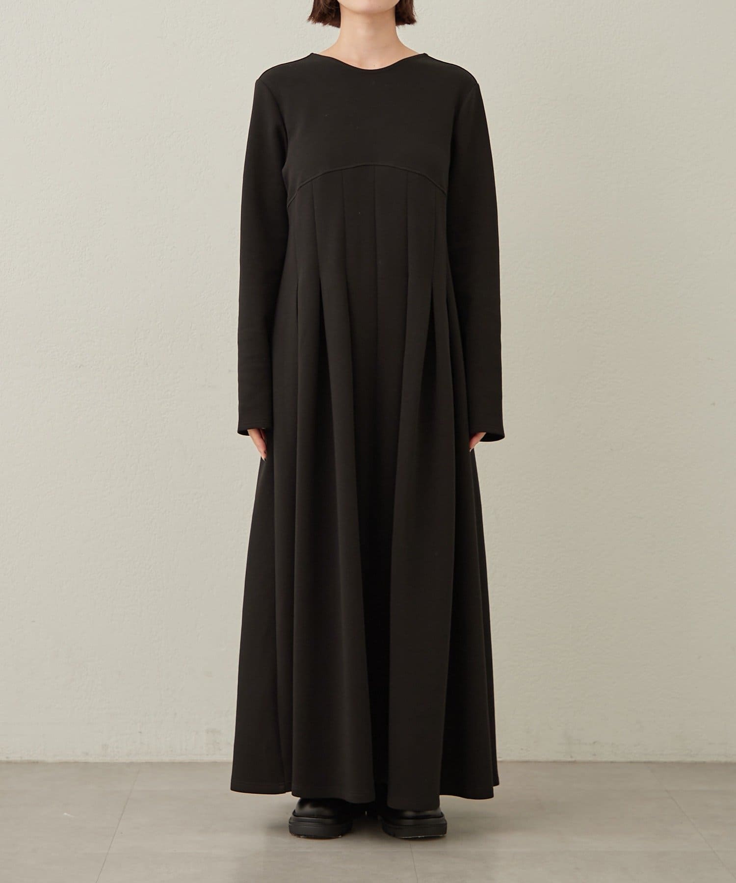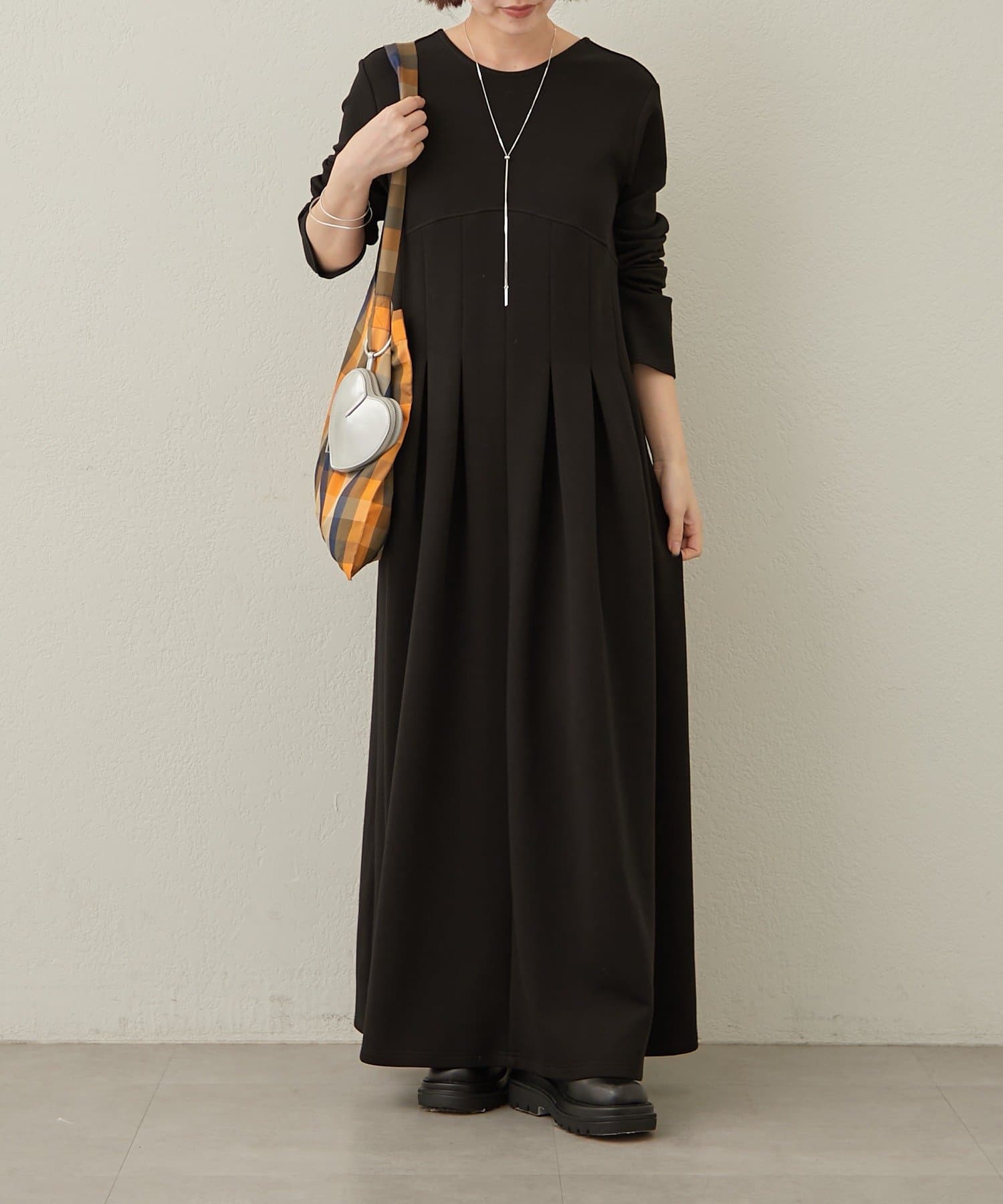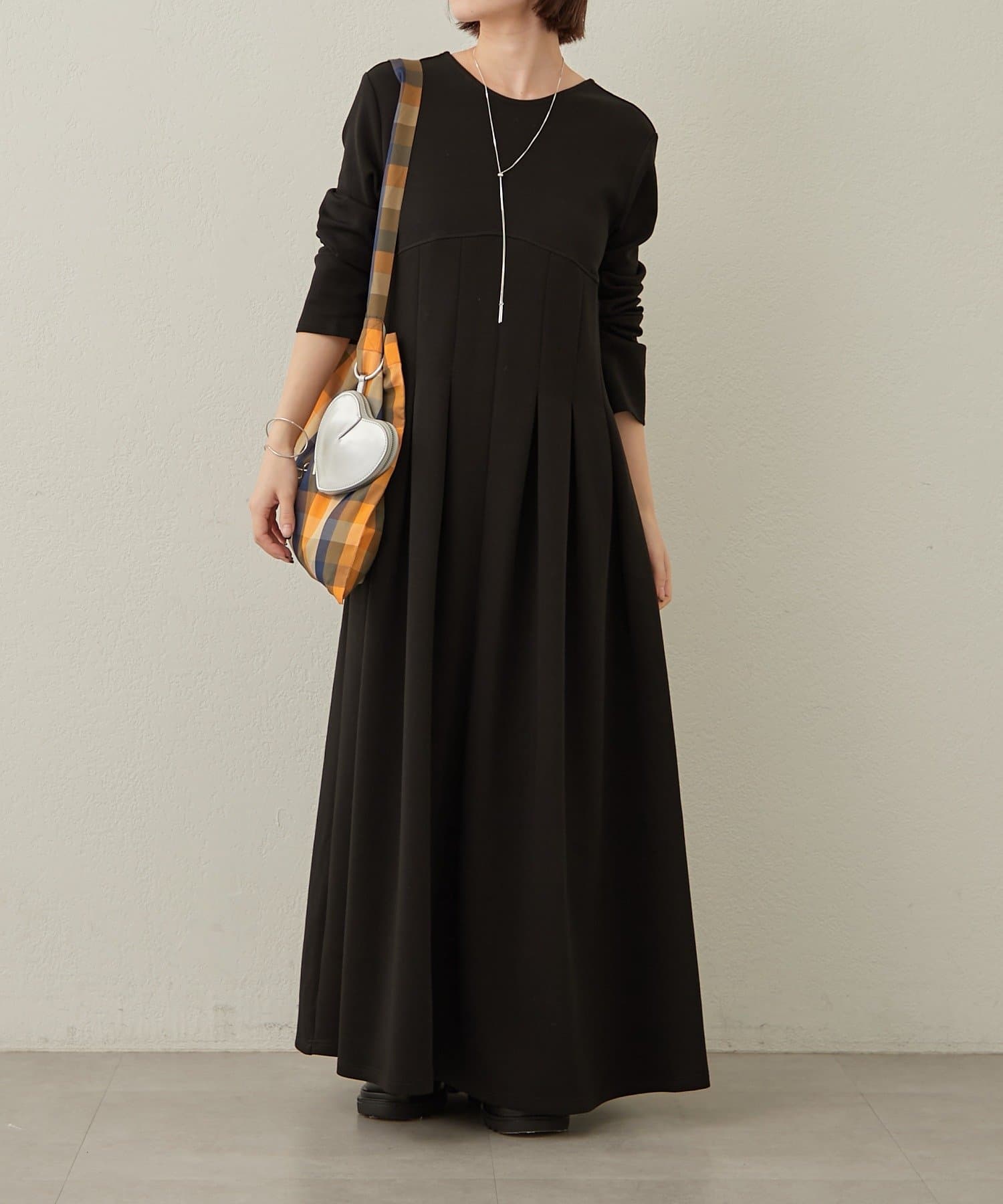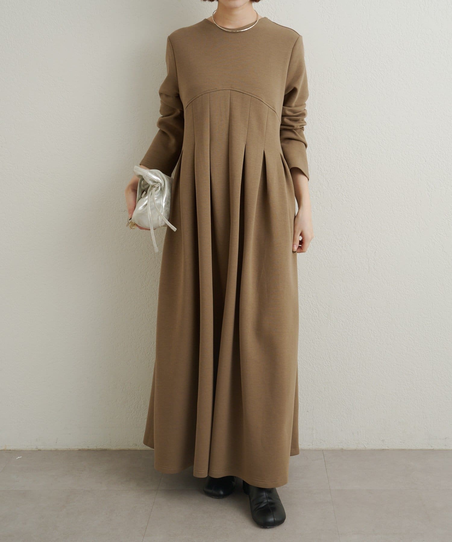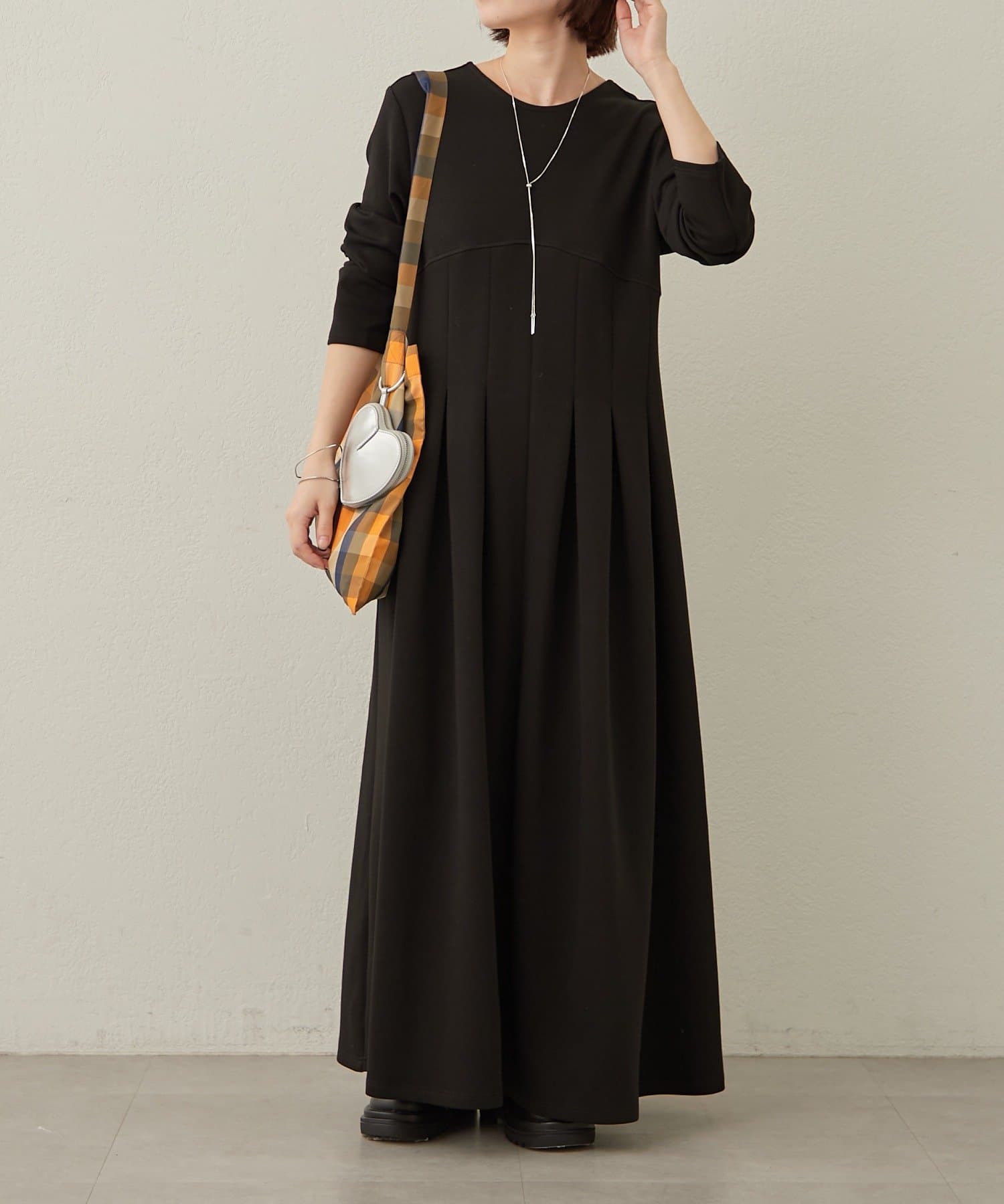 ・プリーツデザインがスタイリングのポイントになるポンチワンピース。
