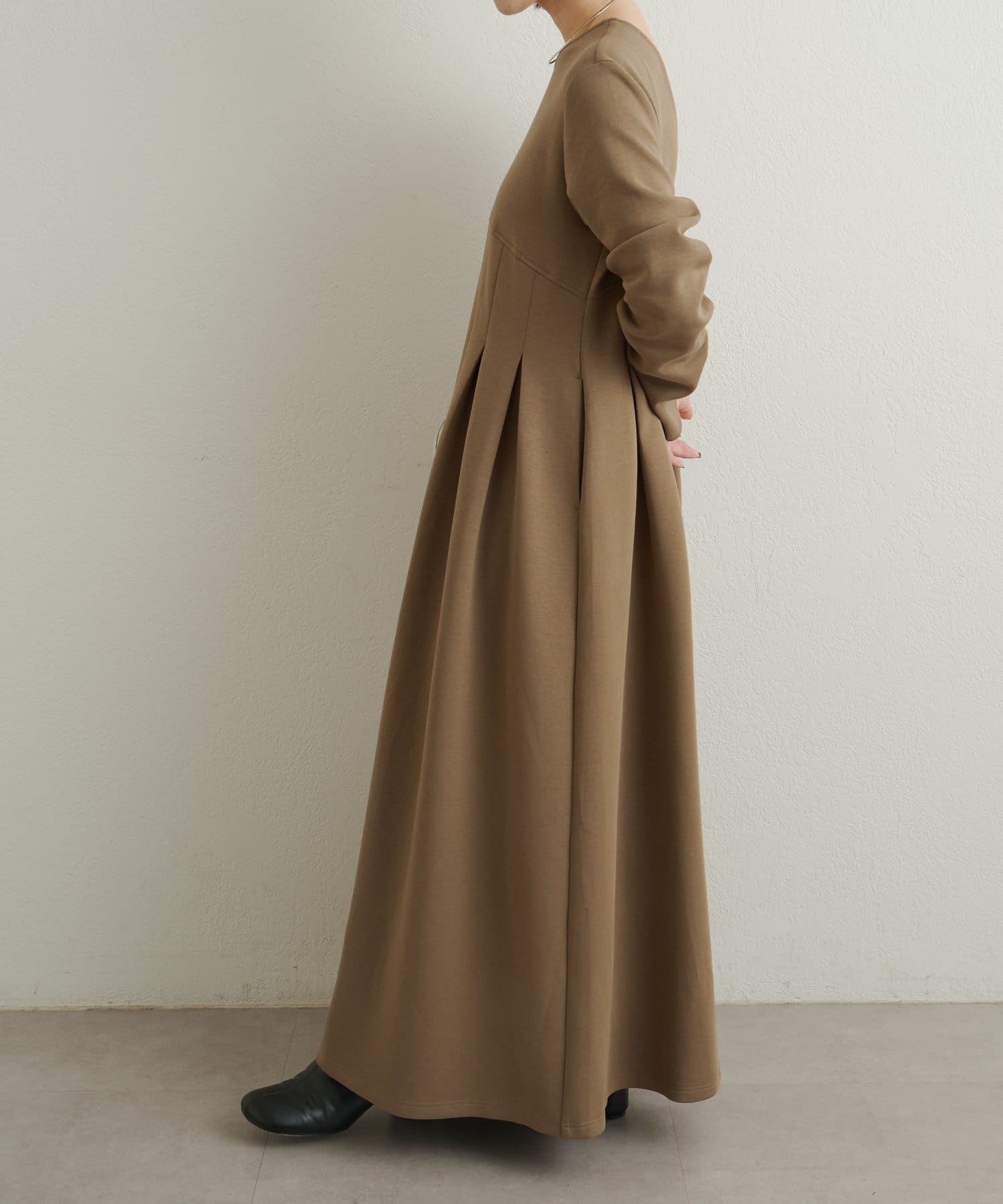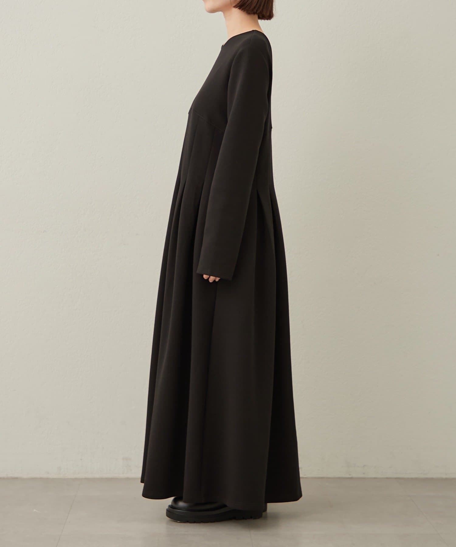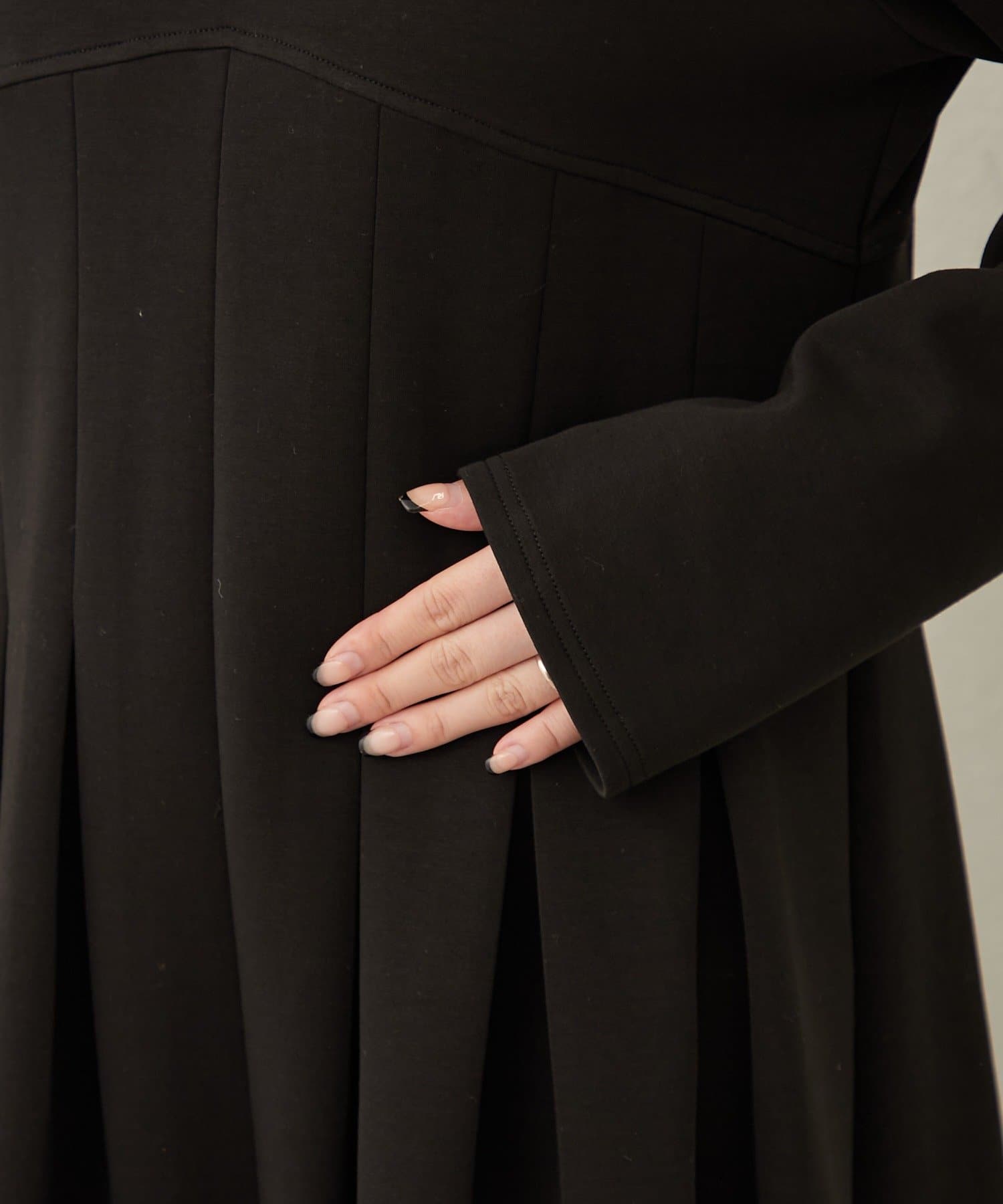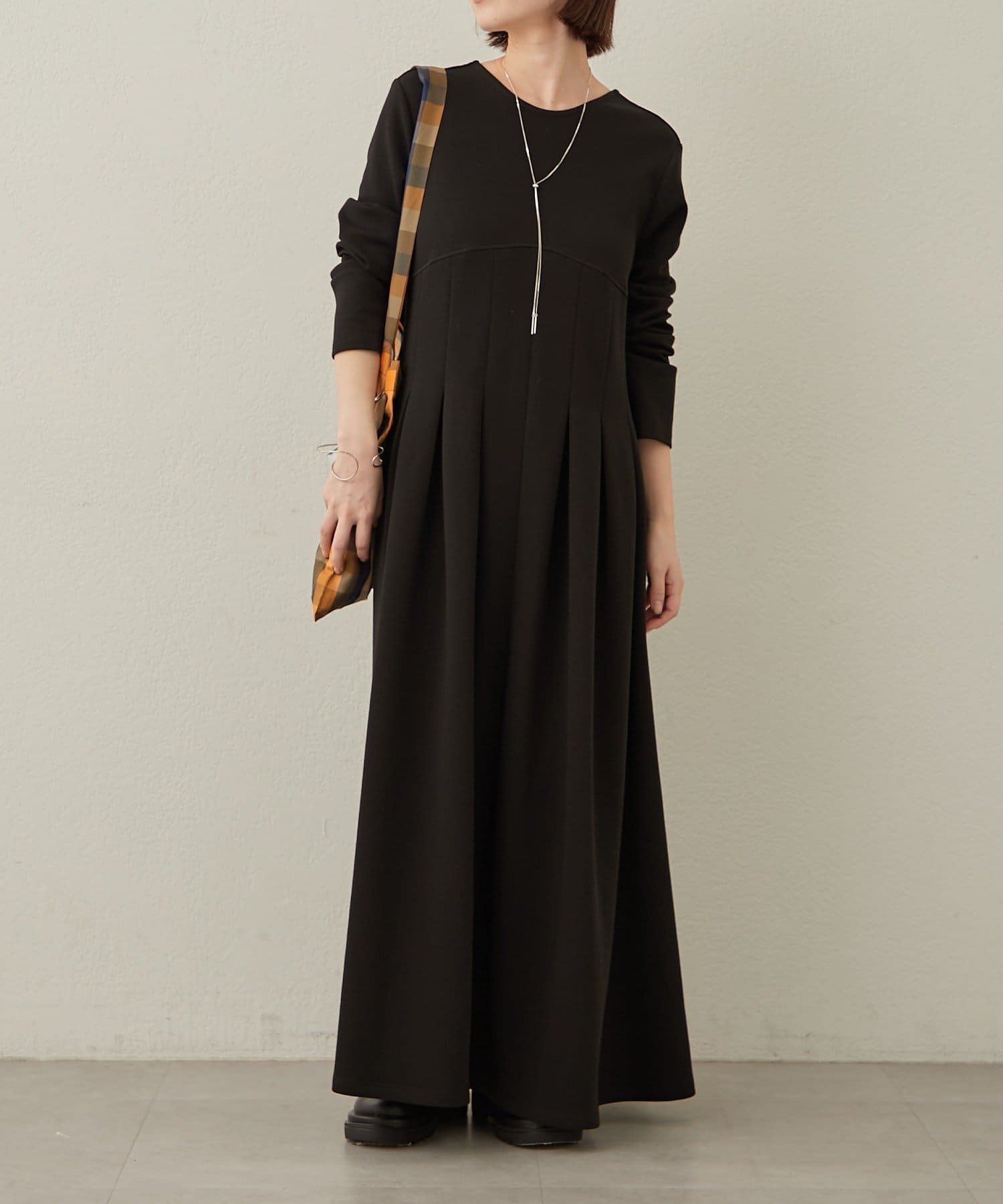 ・プリーツデザインがスタイリングのポイントになるポンチワンピース。