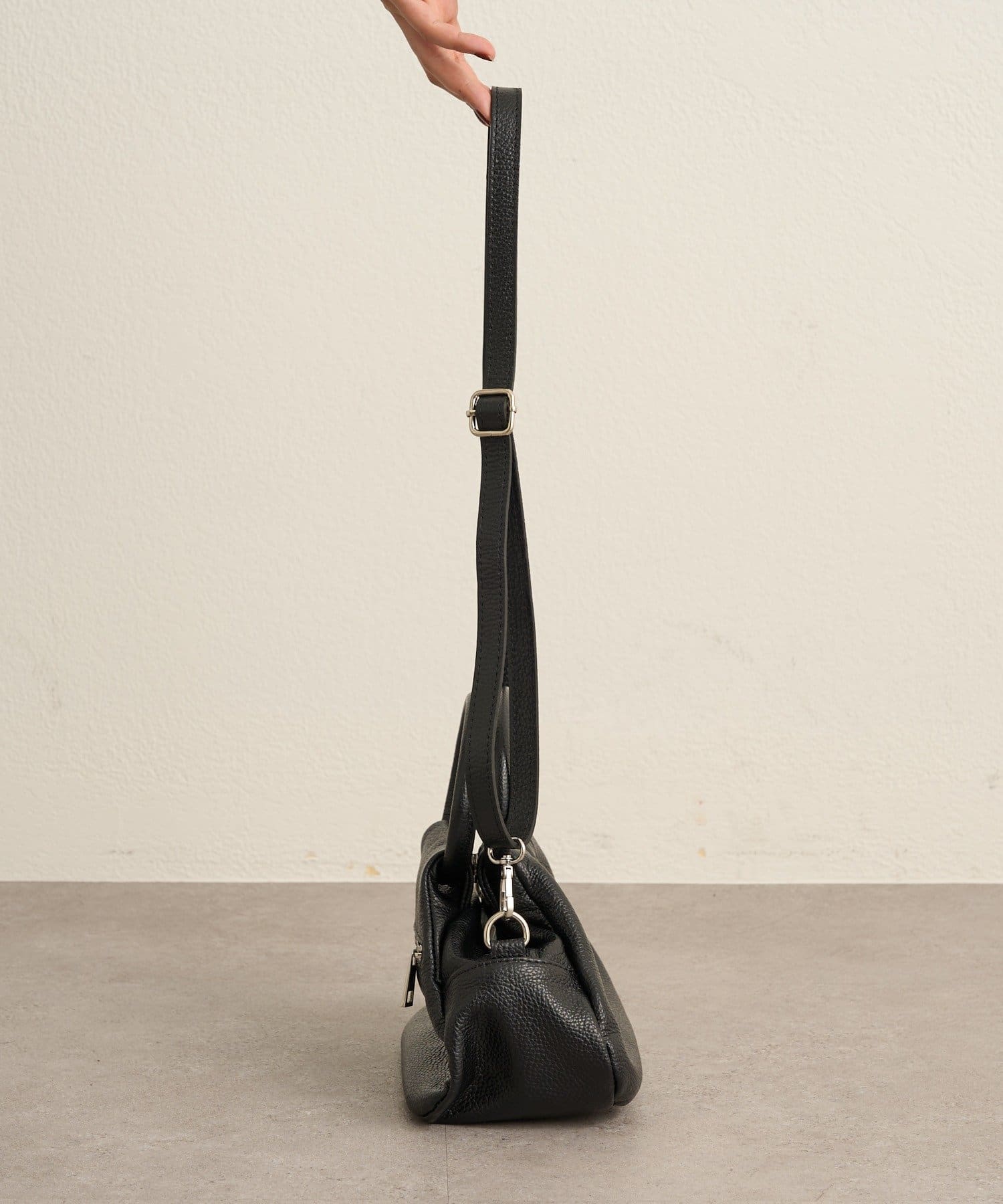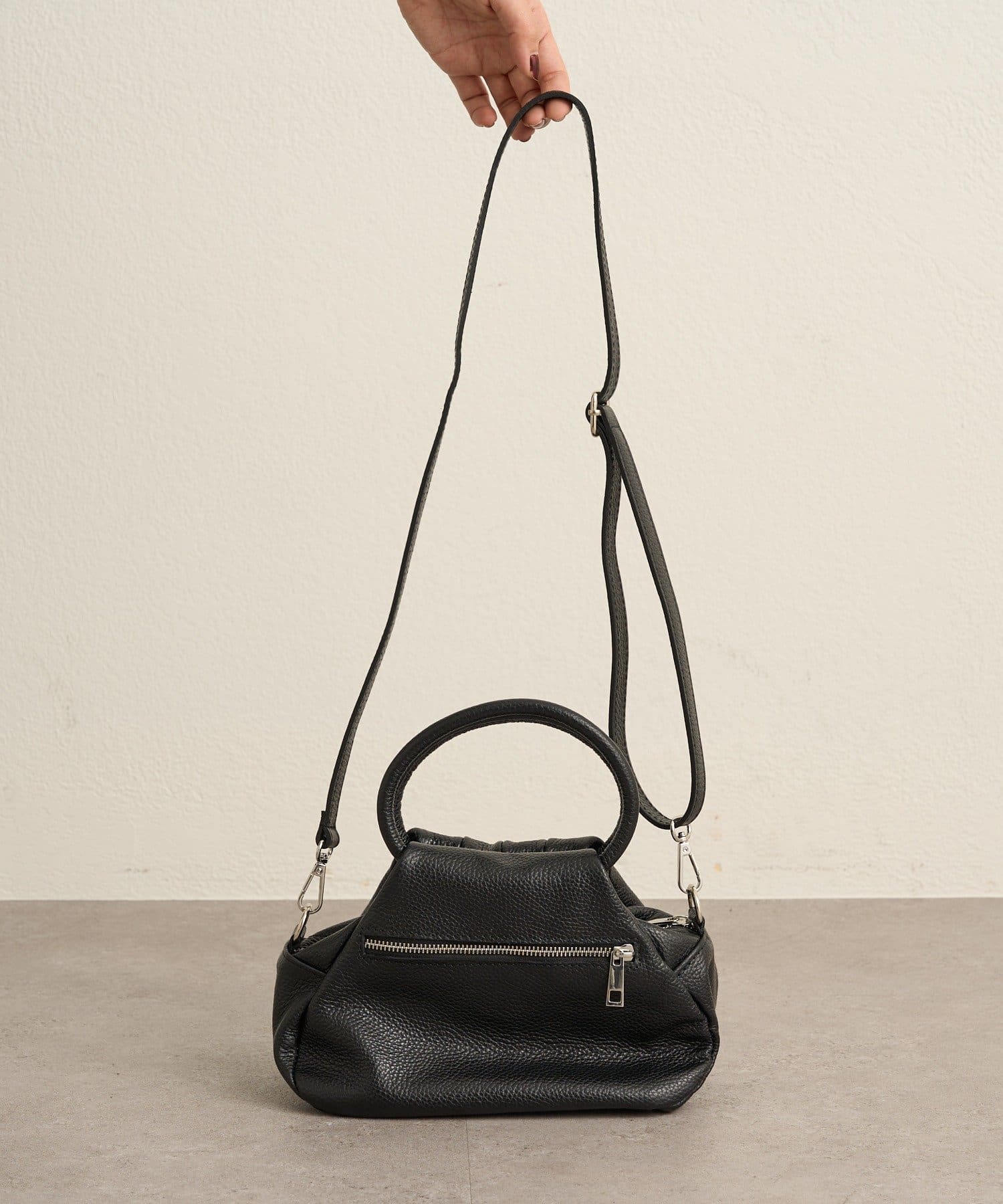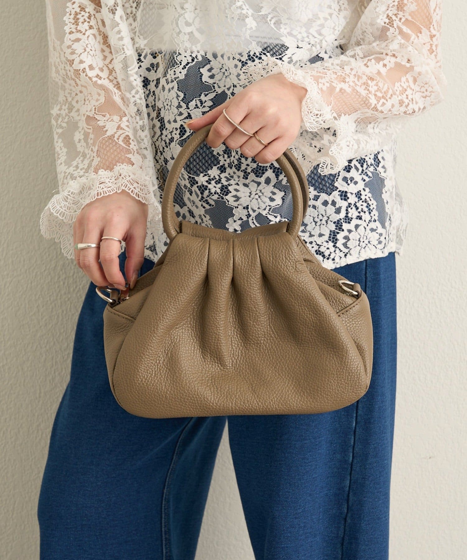 ・柔らかなフォルムと上質なレザーの掛け合わせが魅力的なギャザーハンドバッグ。