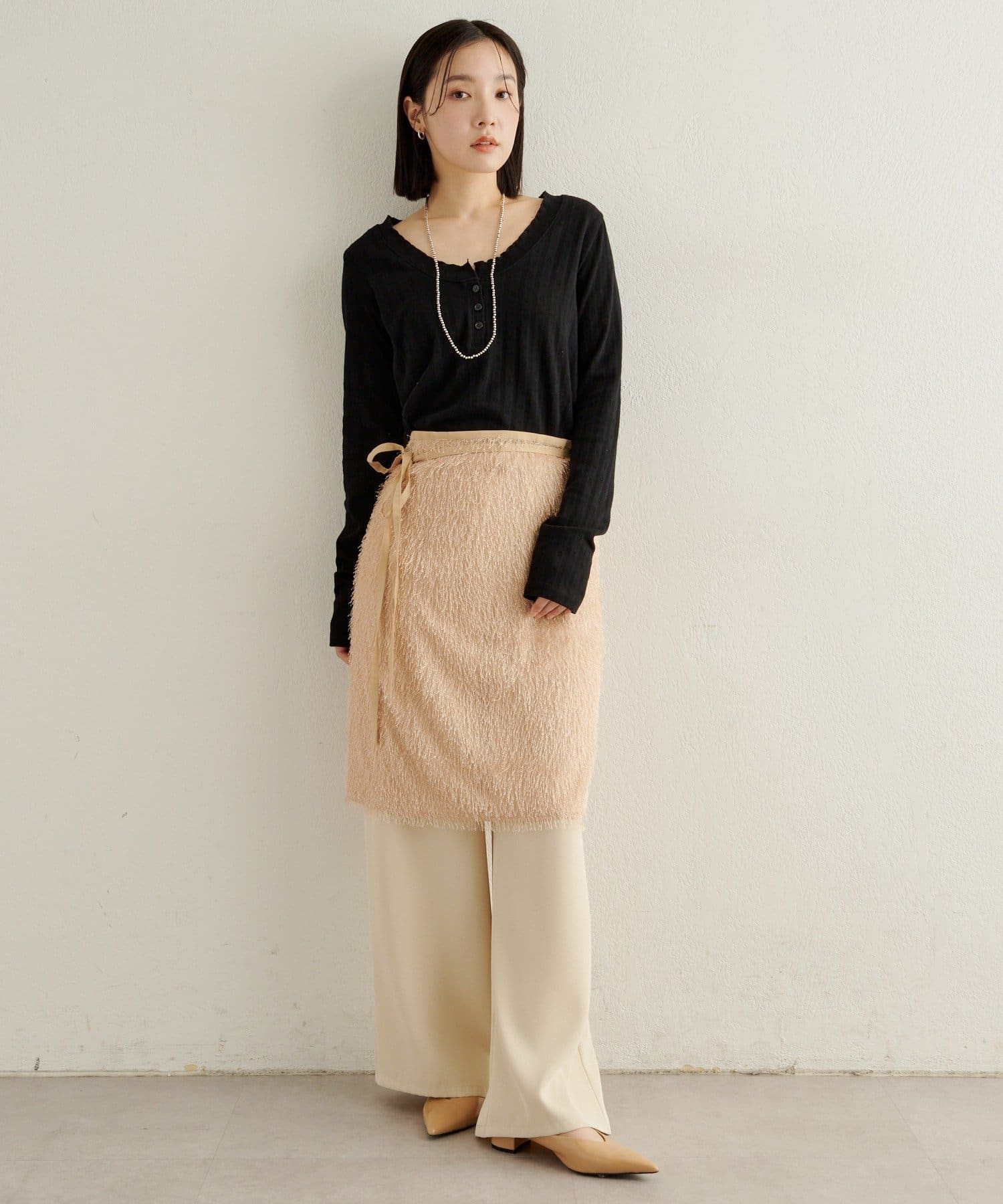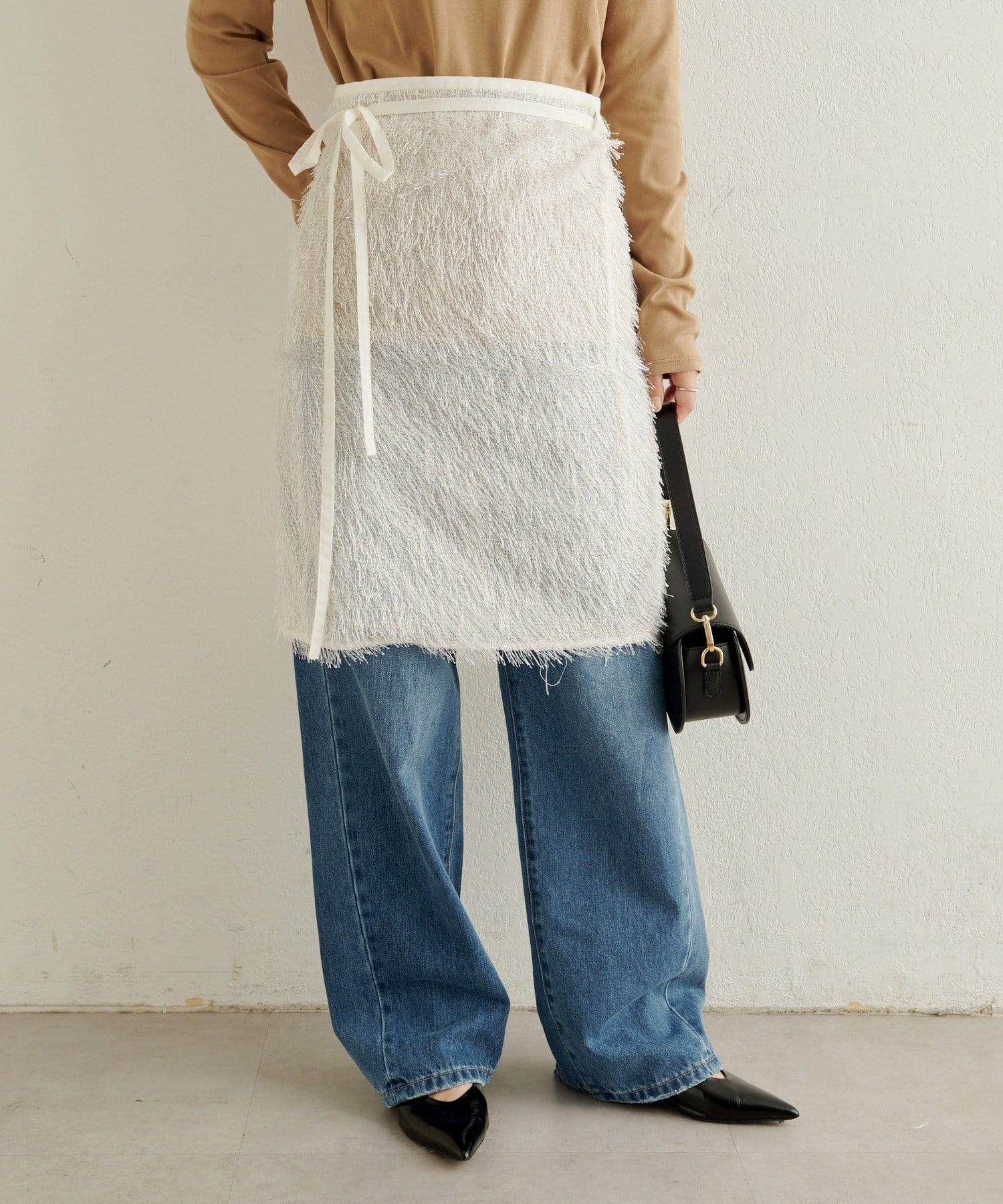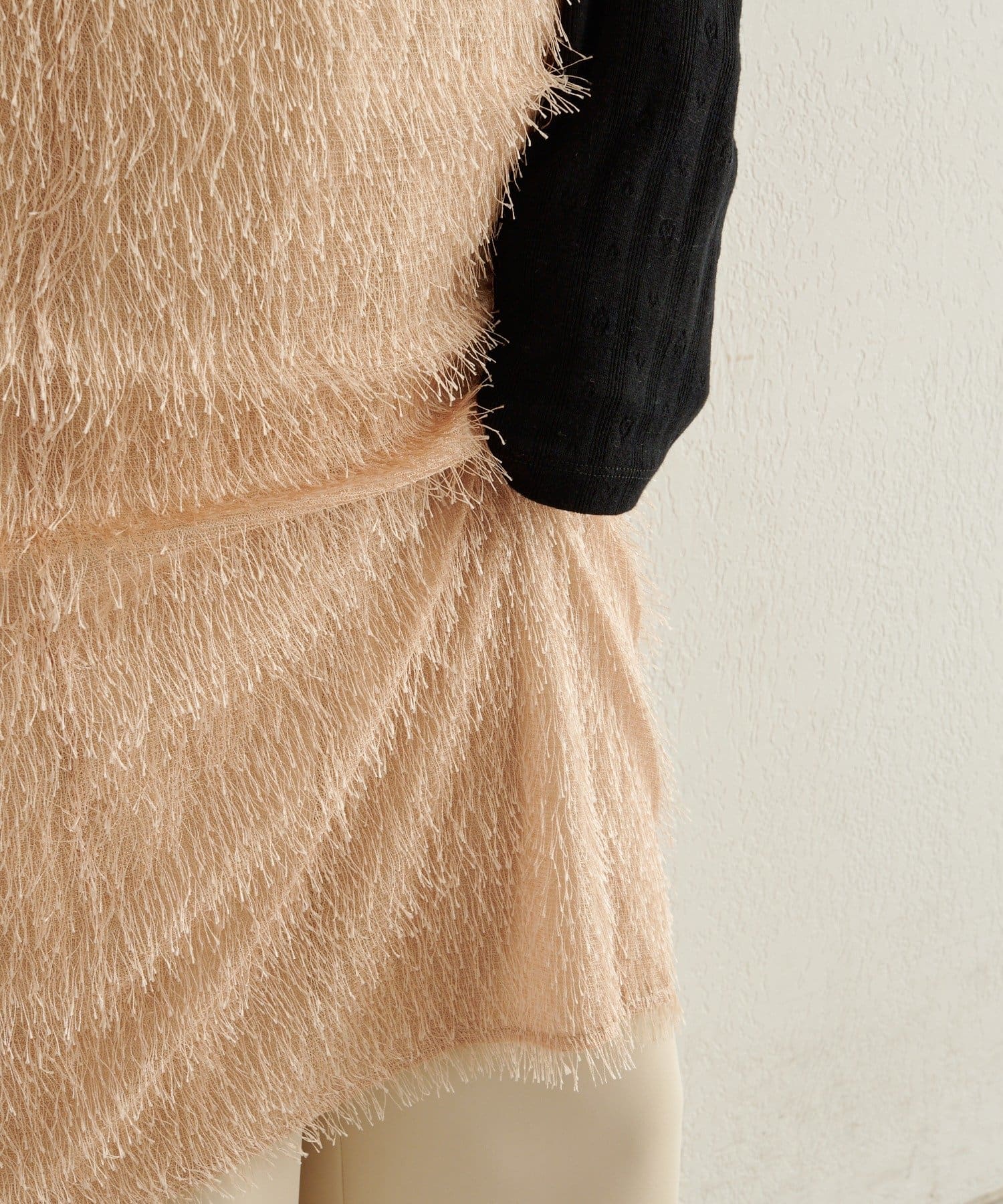 ・毛足が長いフリンジの表面感が大人可愛い一枚。