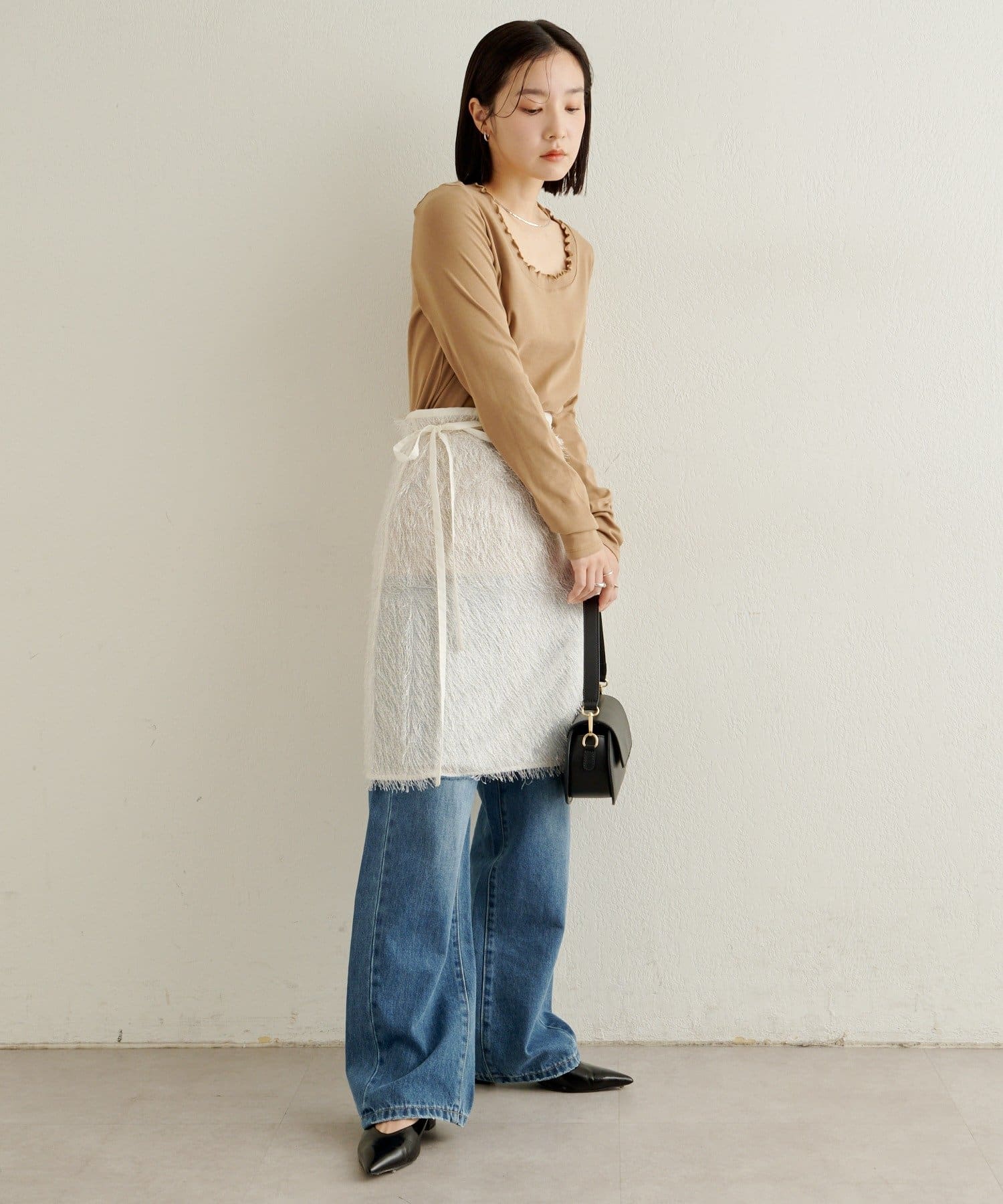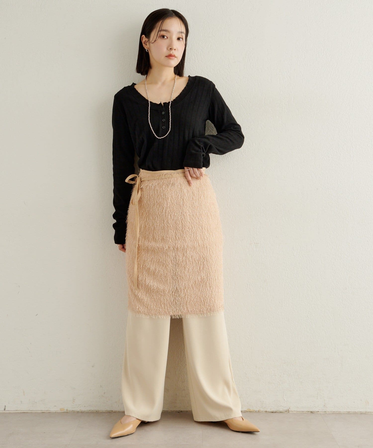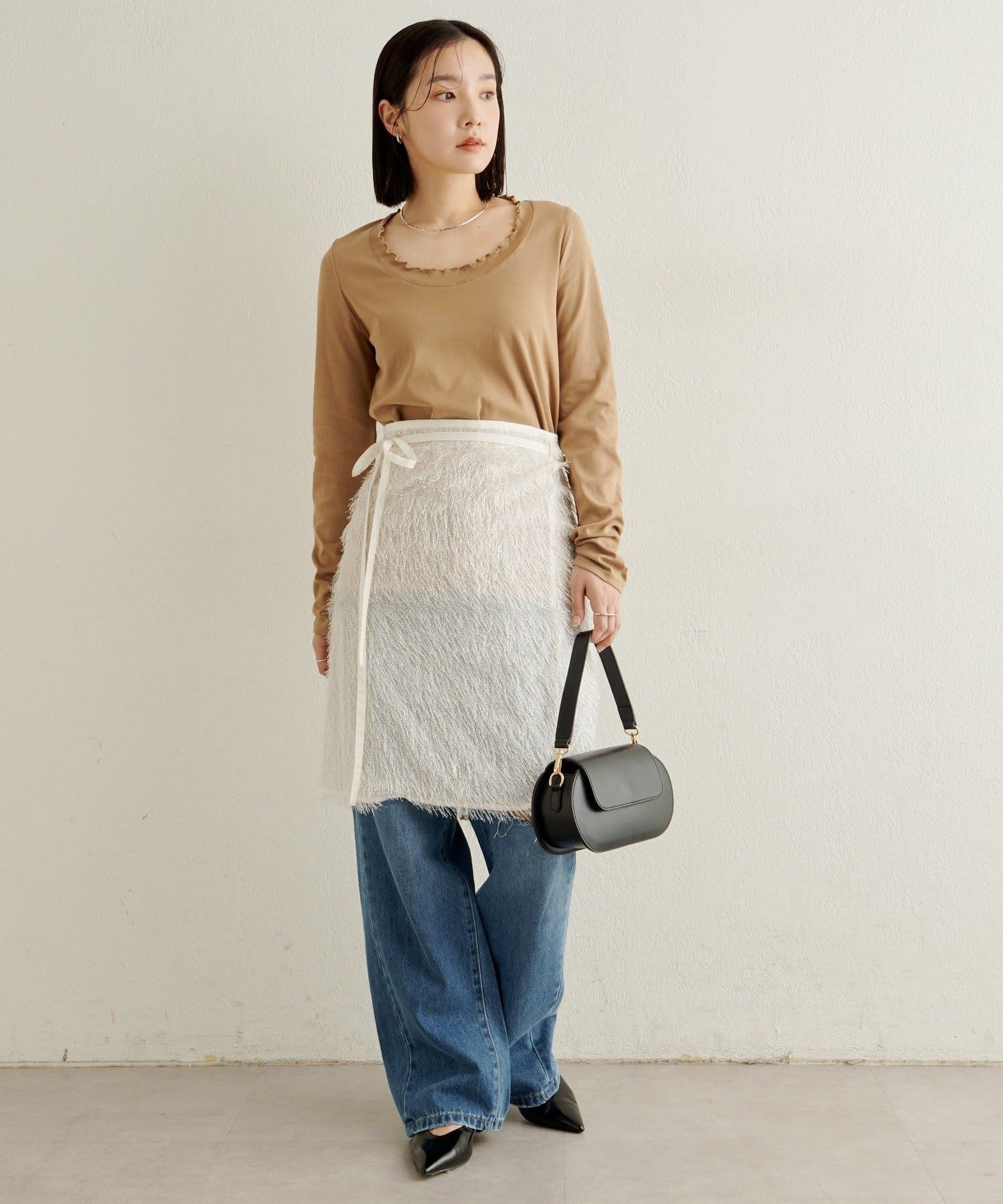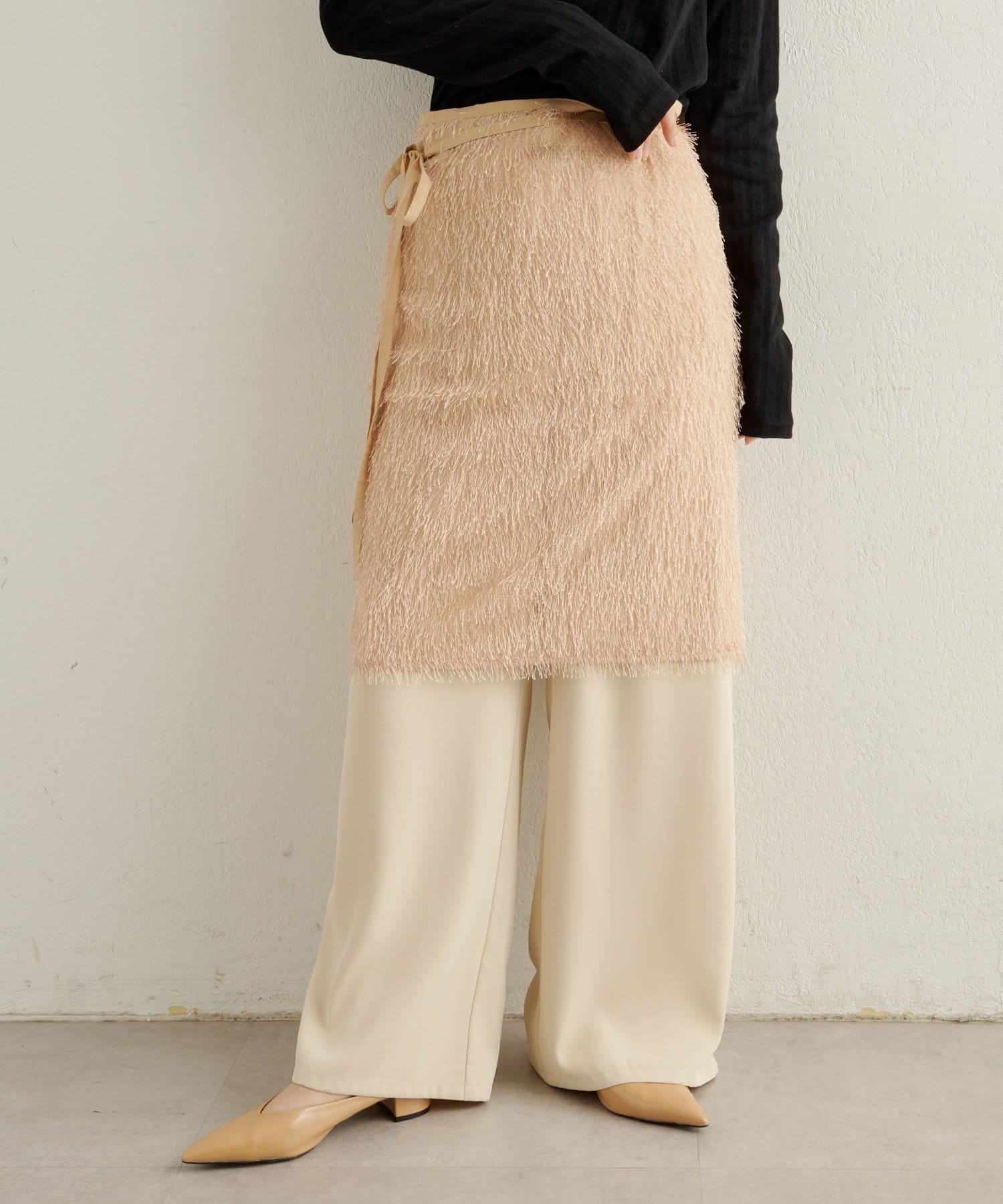 ・毛足が長いフリンジの表面感が大人可愛い一枚。