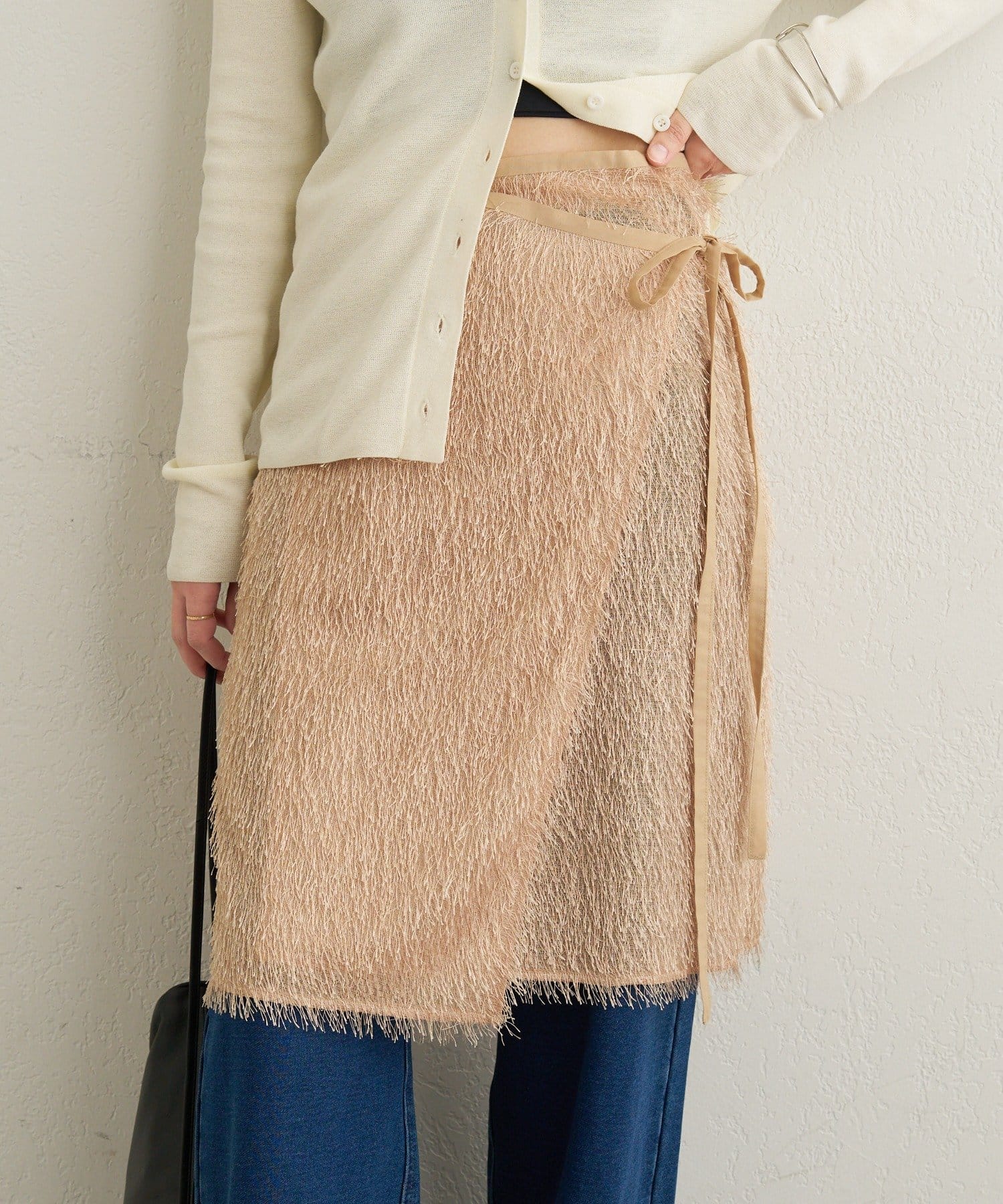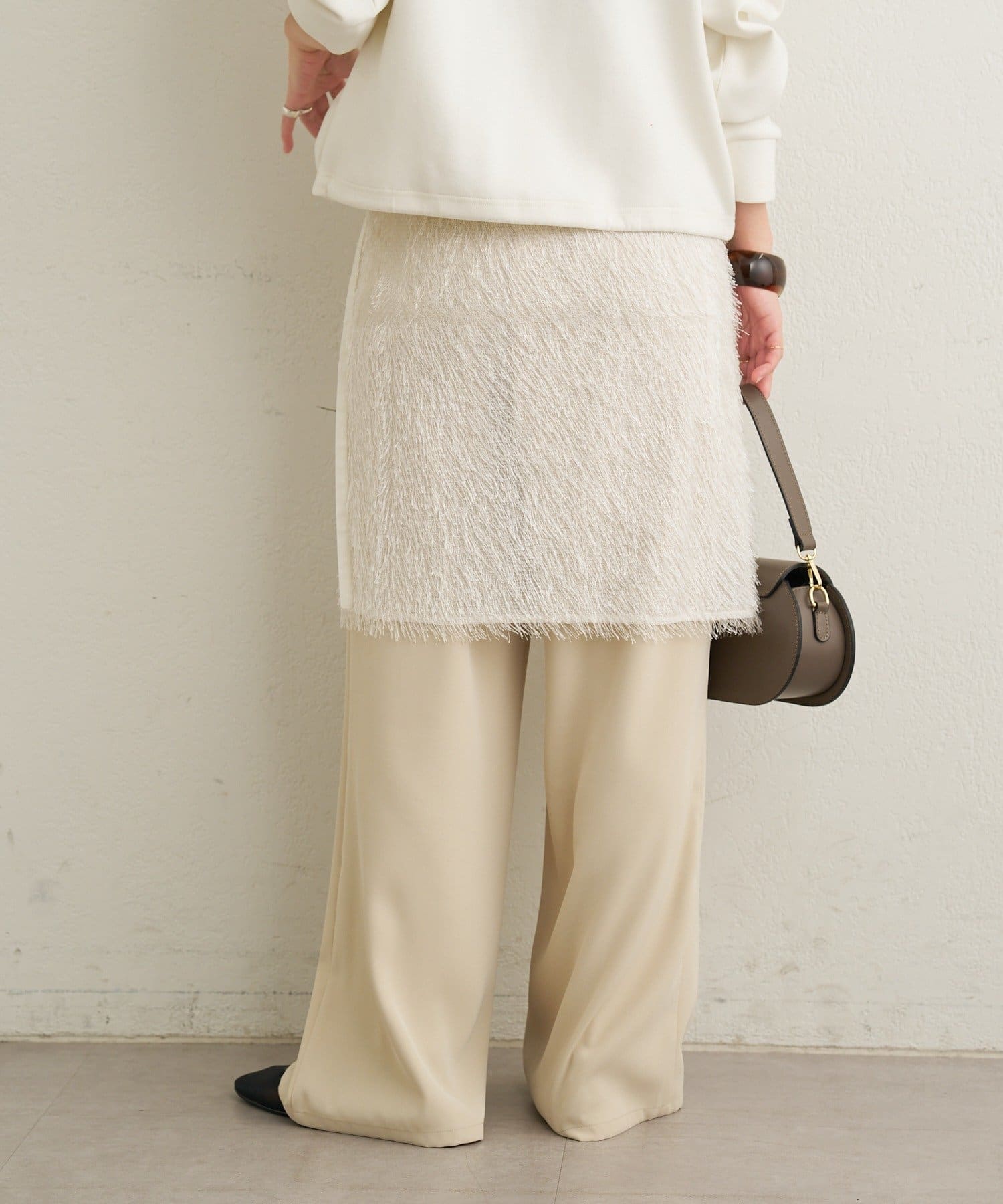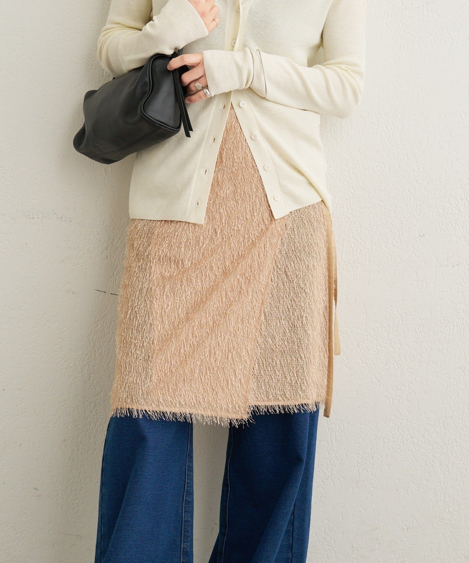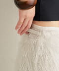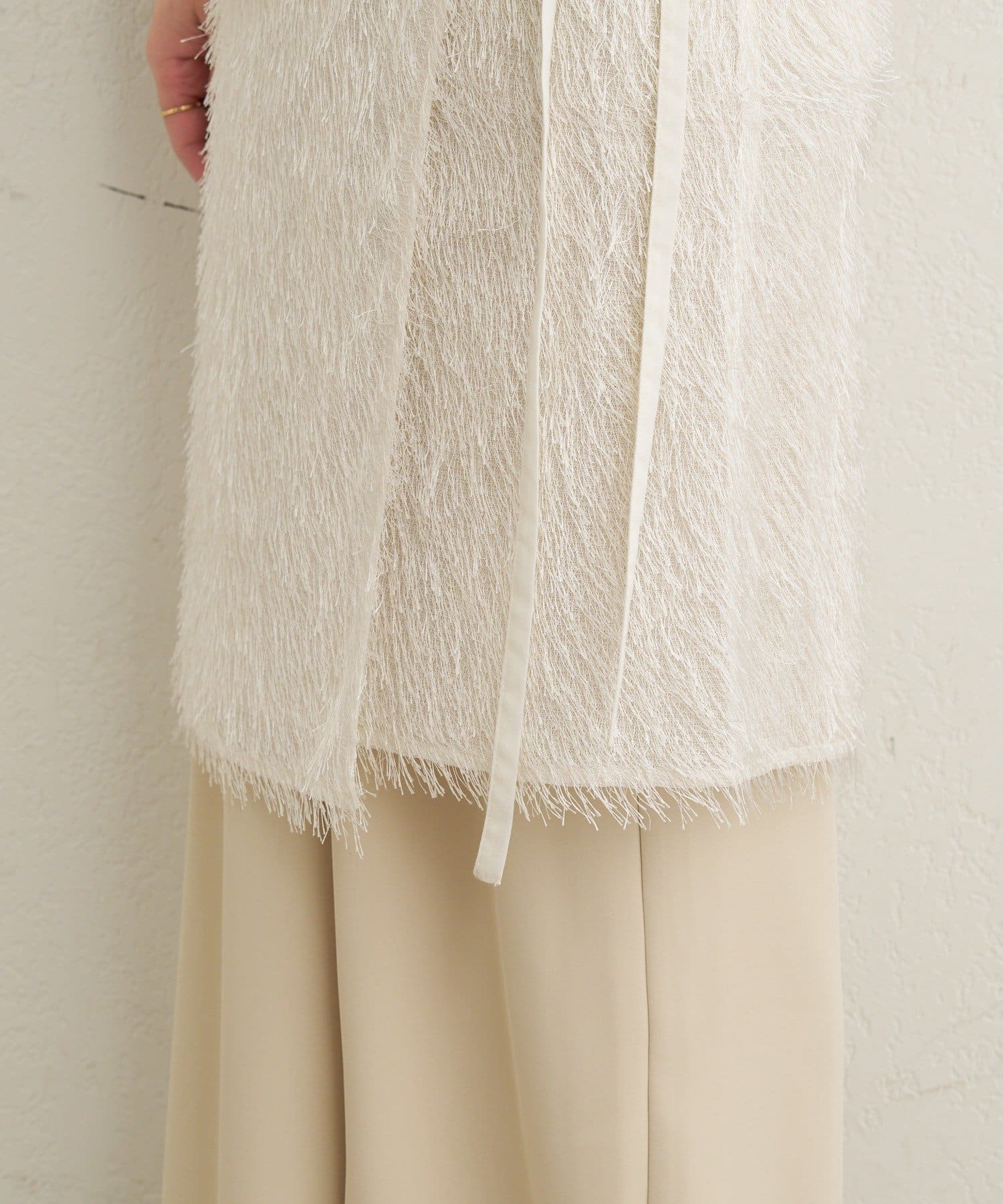 ・毛足が長いフリンジの表面感が大人可愛い一枚。