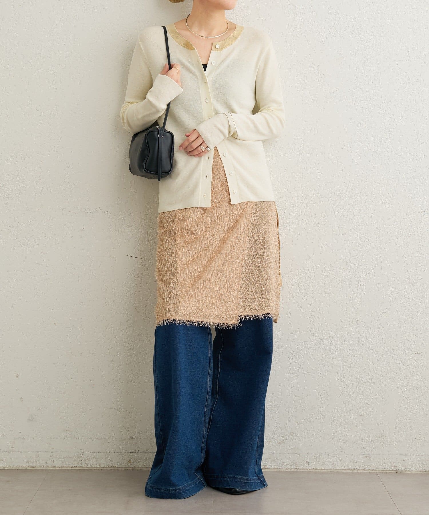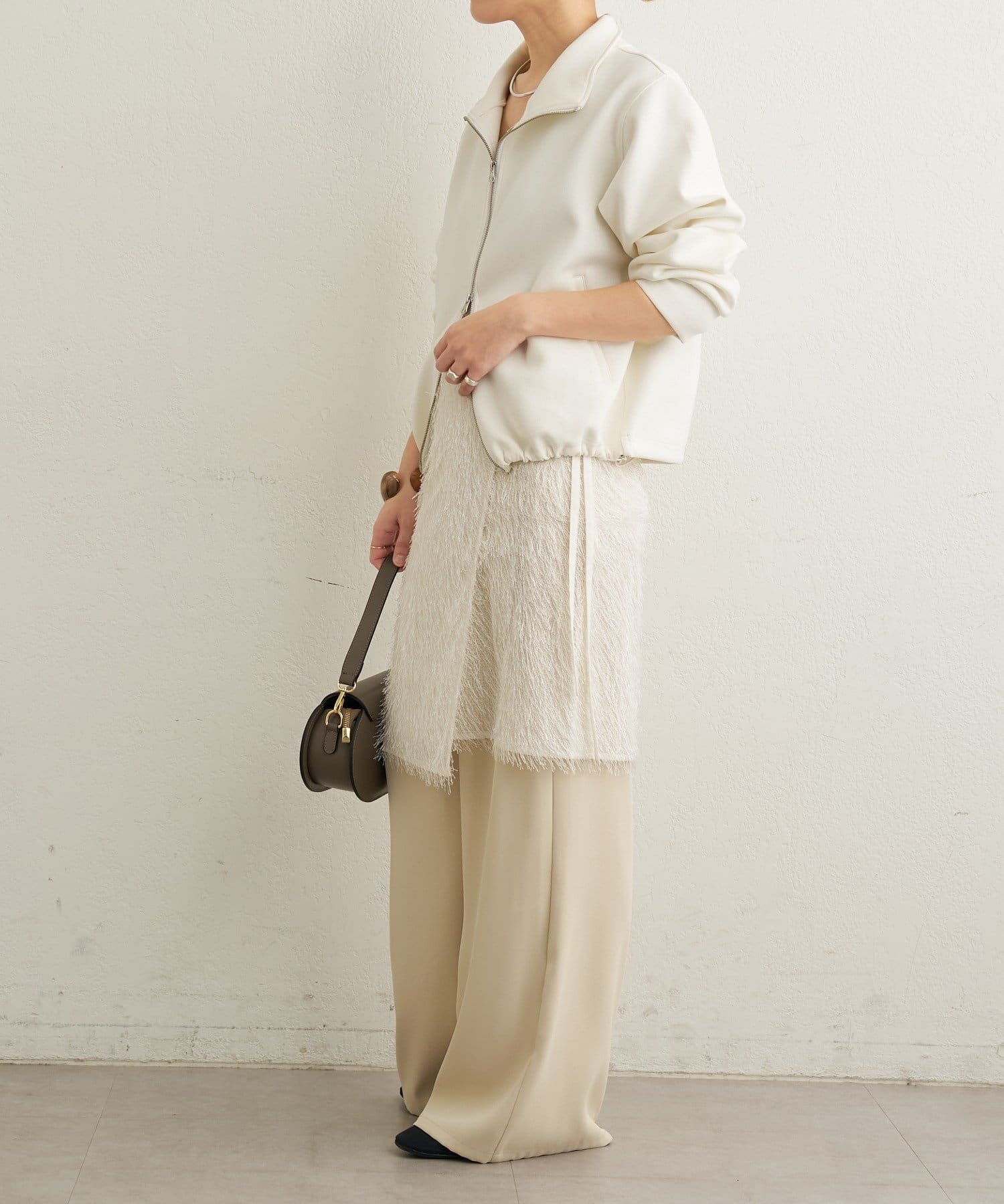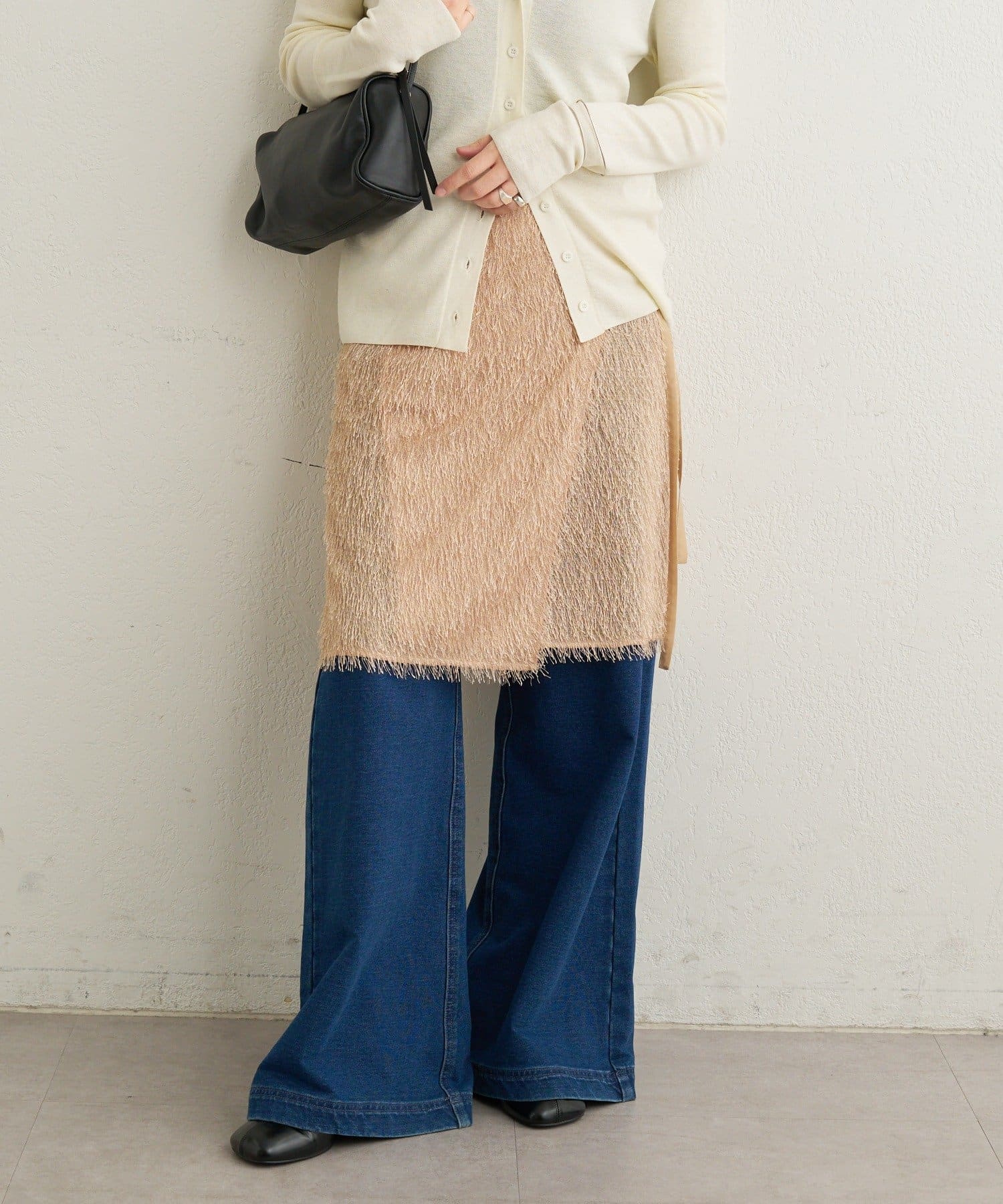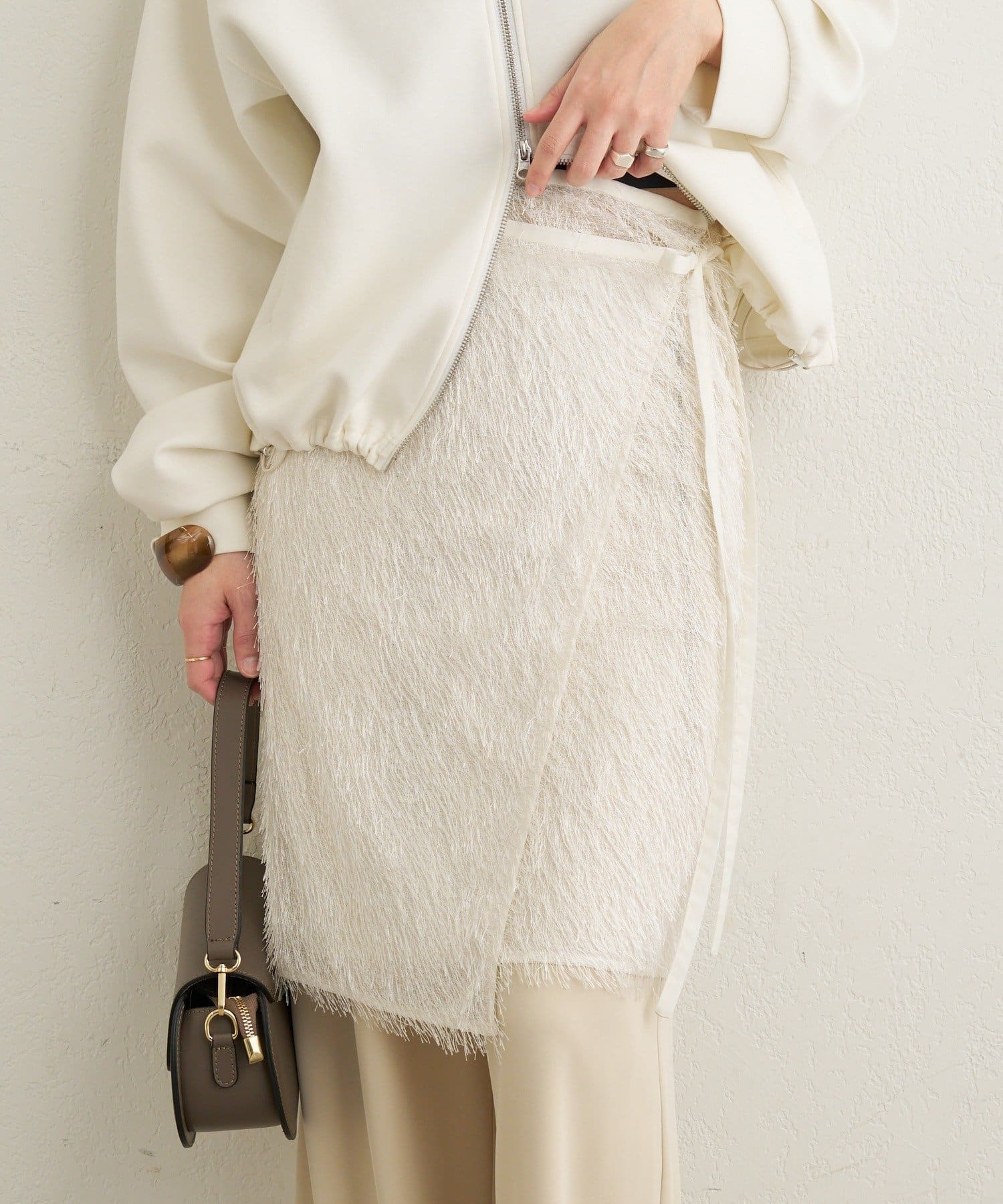 ・毛足が長いフリンジの表面感が大人可愛い一枚。