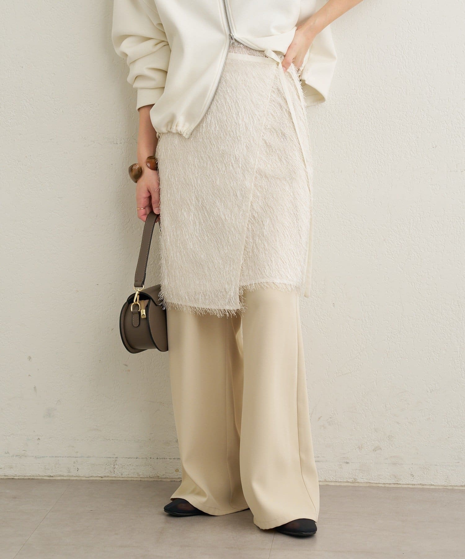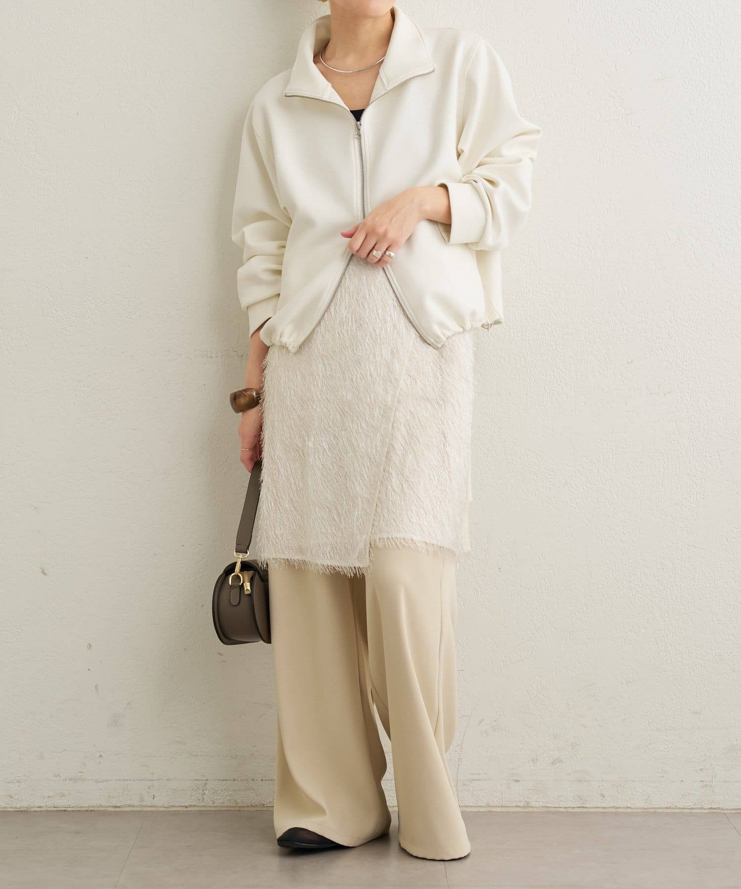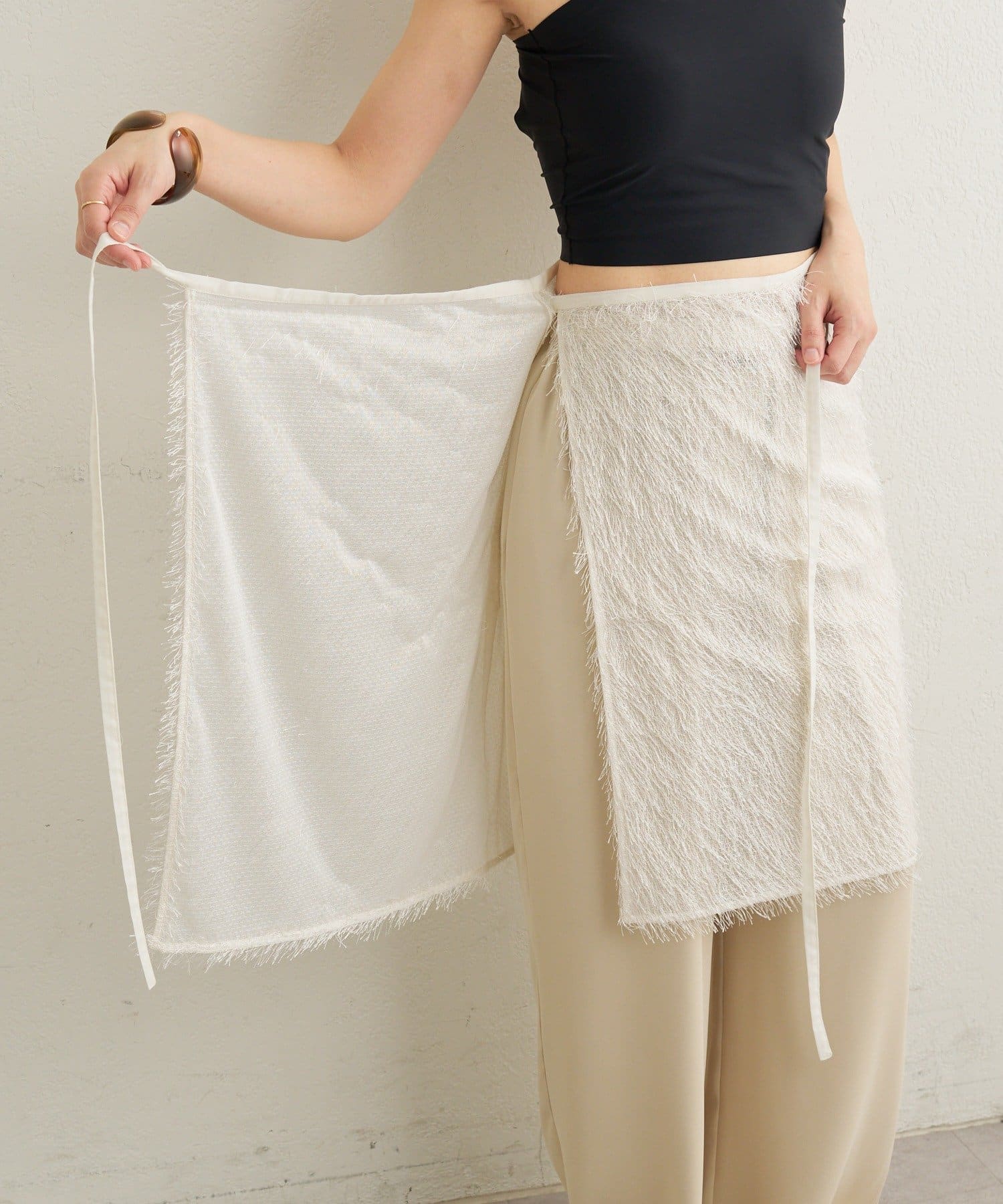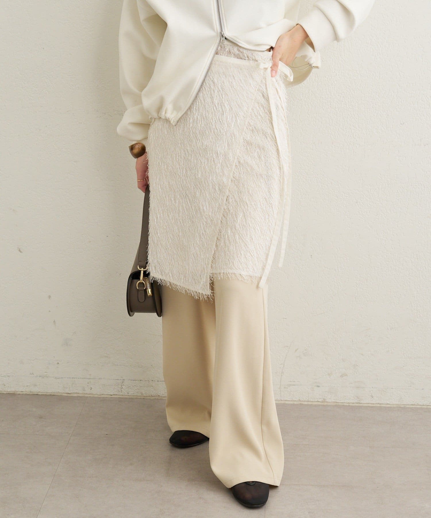 ・毛足が長いフリンジの表面感が大人可愛い一枚。