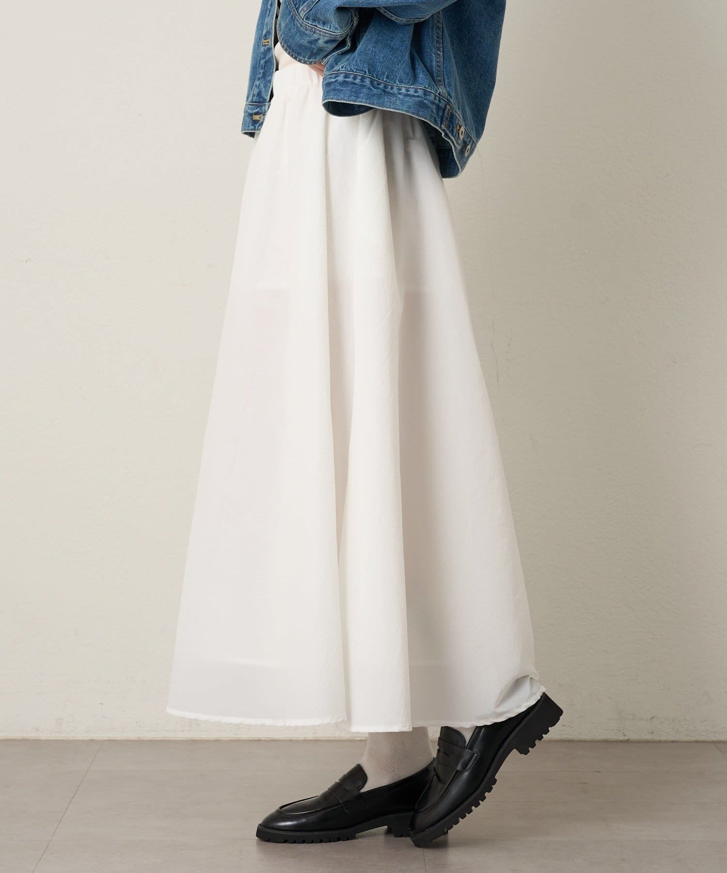 ・シンプルなトップス合わせでも簡単にコーディネートが完成する主役級スカート。