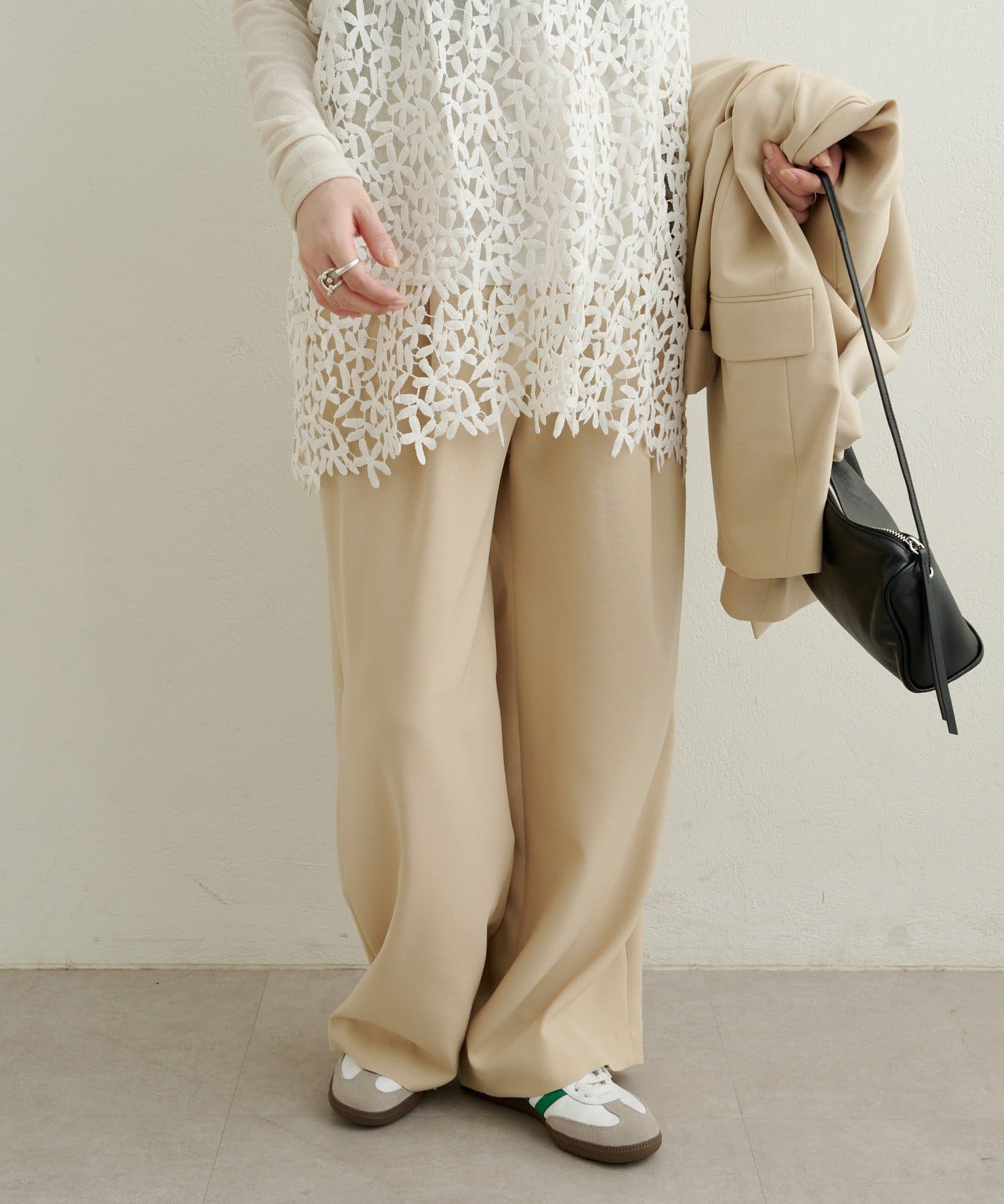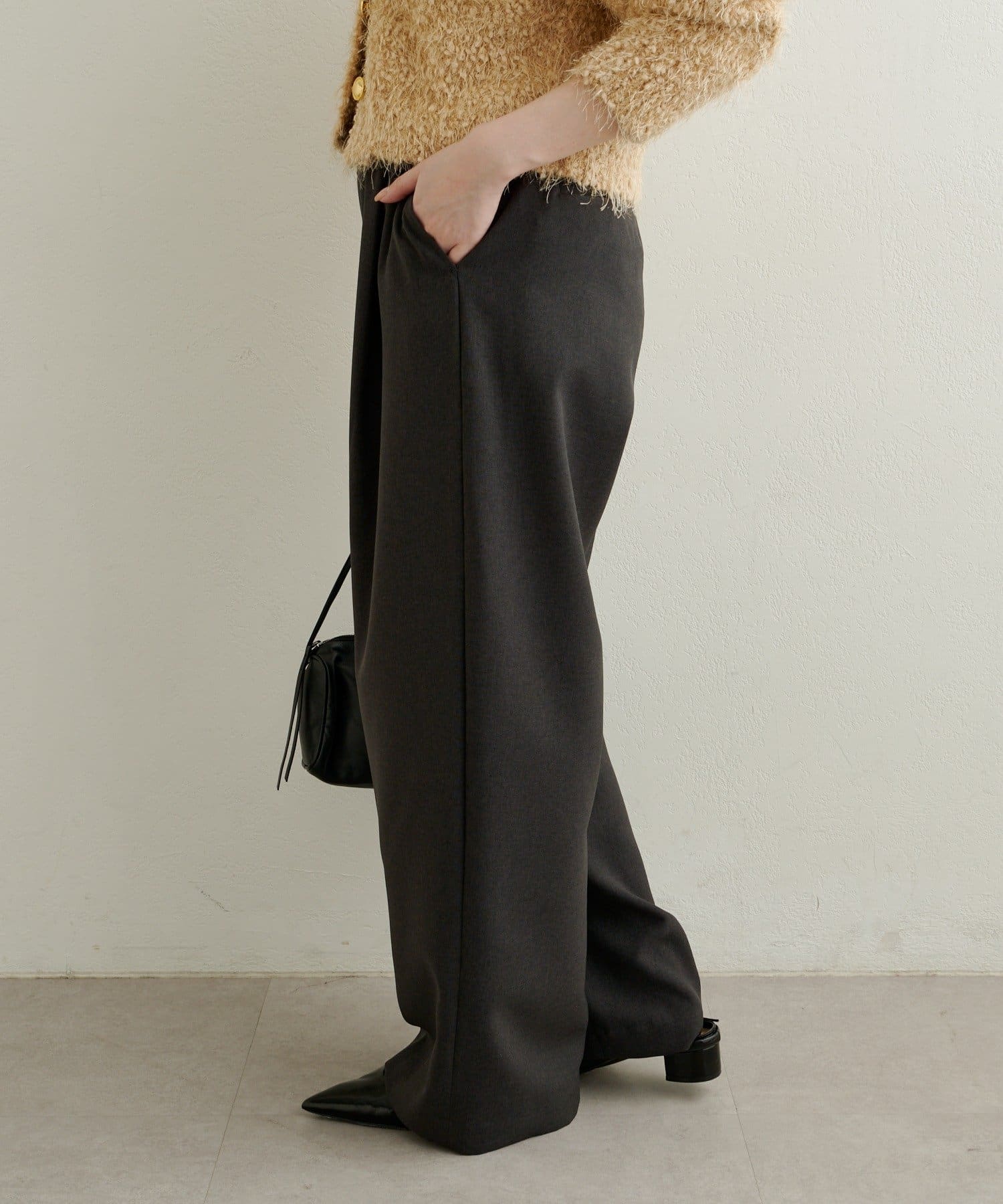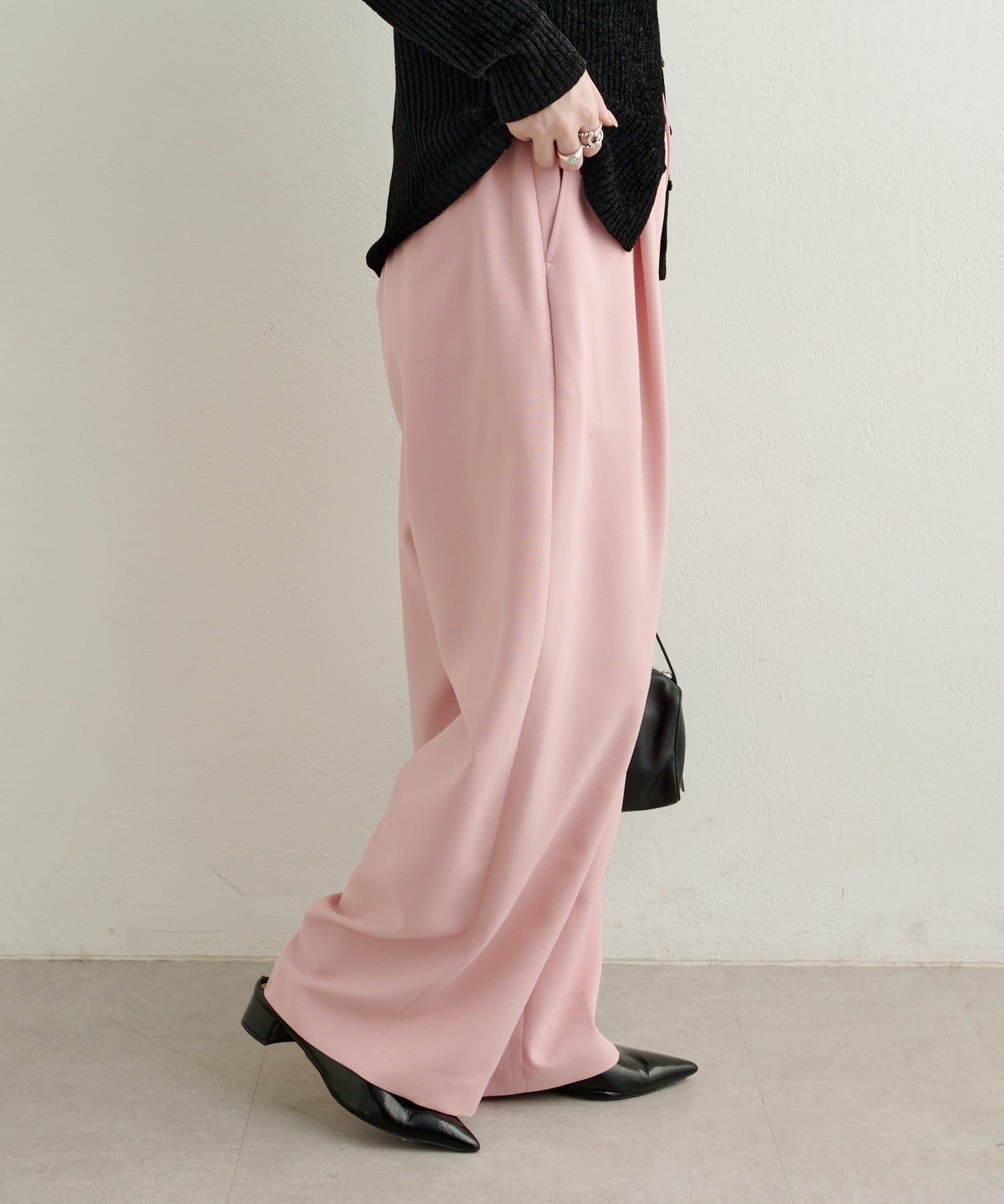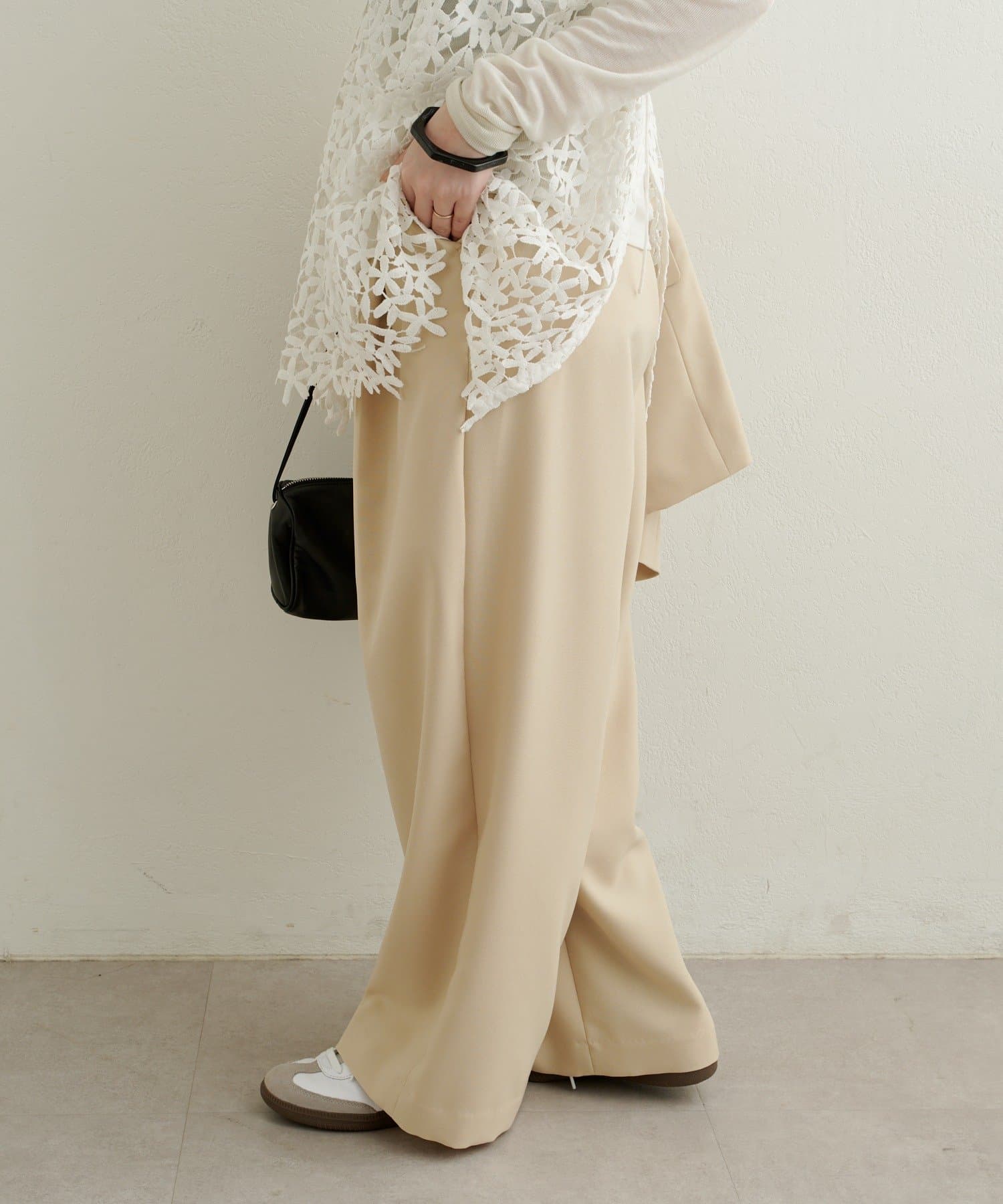 ・柔らかな落ち感のある素材で、ワイドシルエットでもすっきりと着用いただけます。