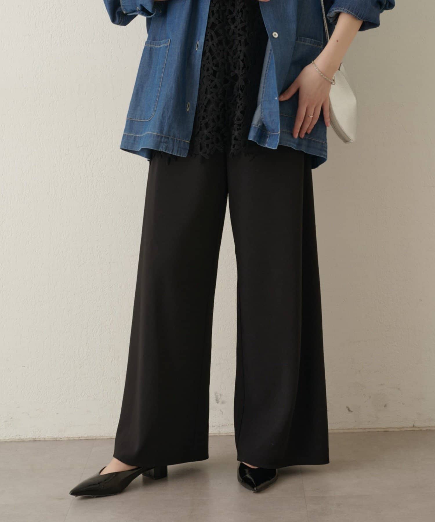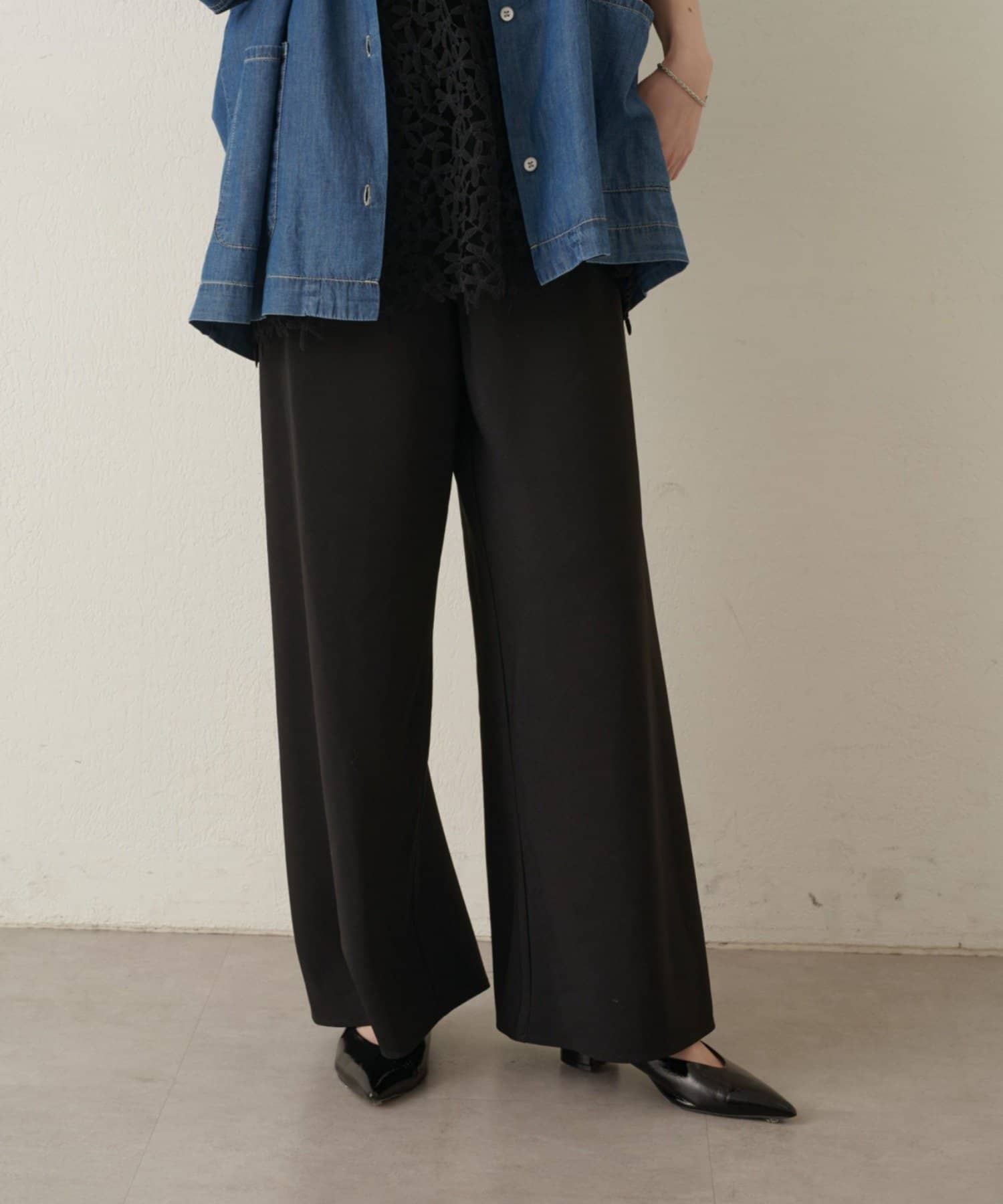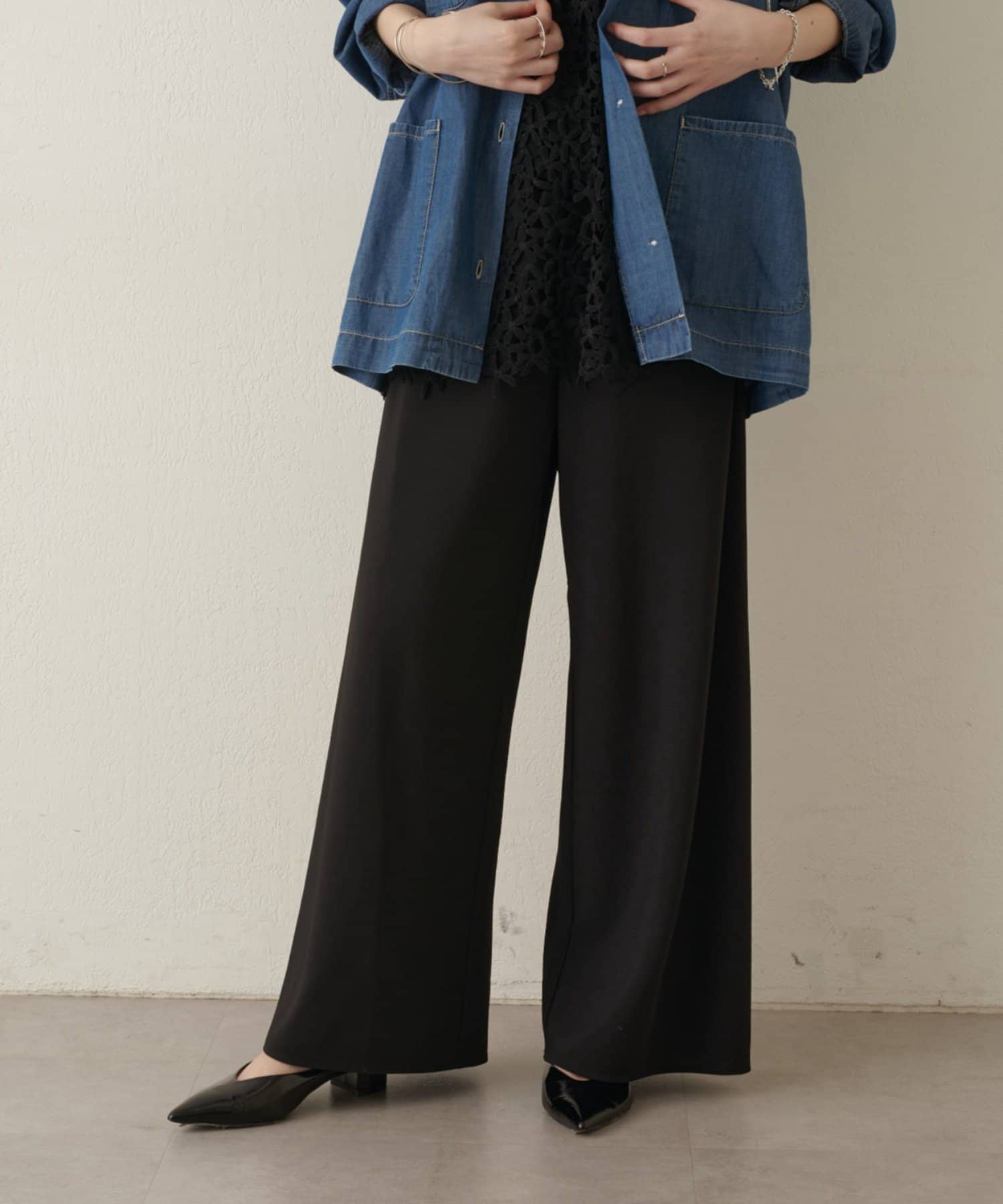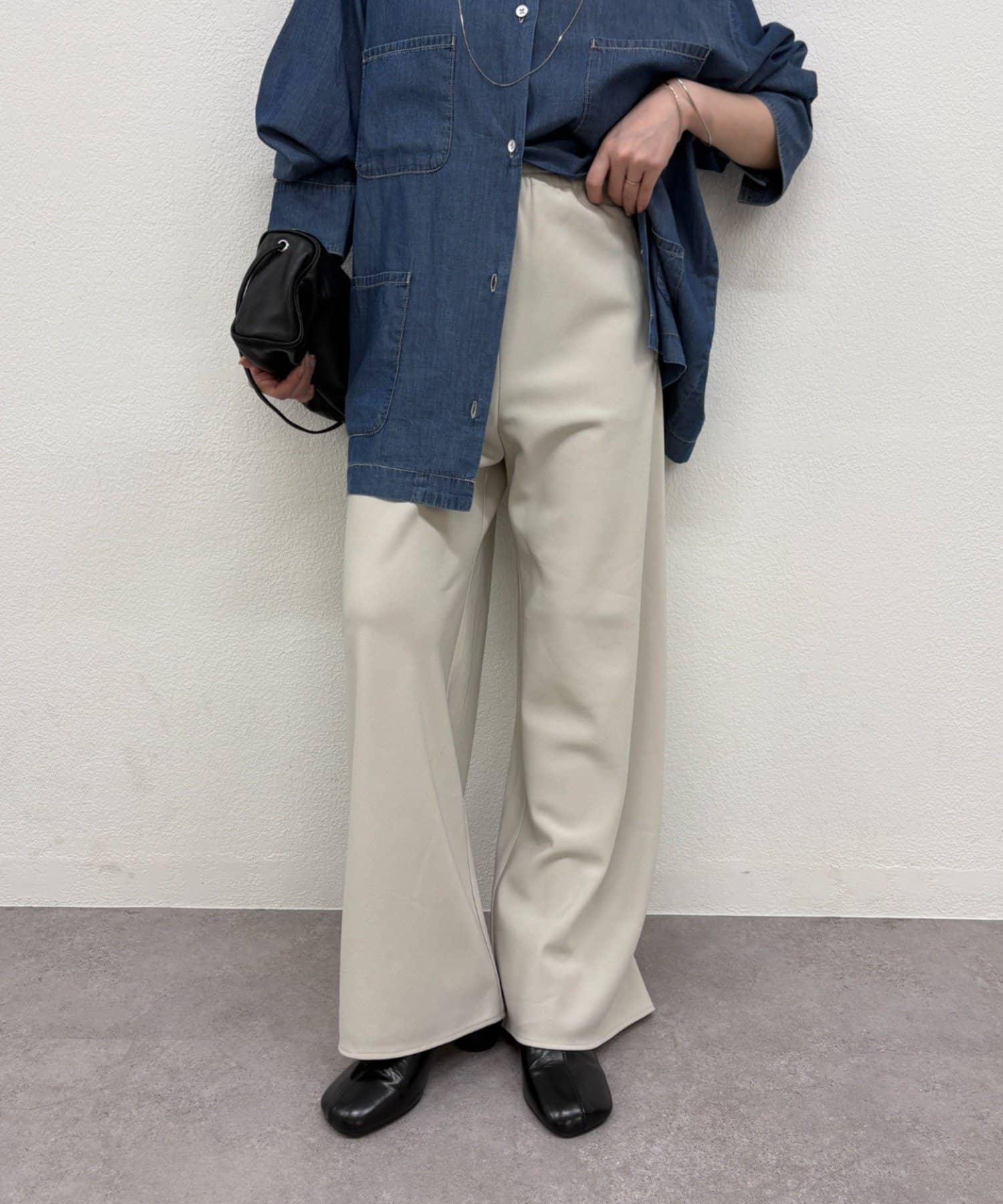 ・イージーパンツながら脚のラインを拾いづらいややワイドなシルエットで美脚見えが叶います。