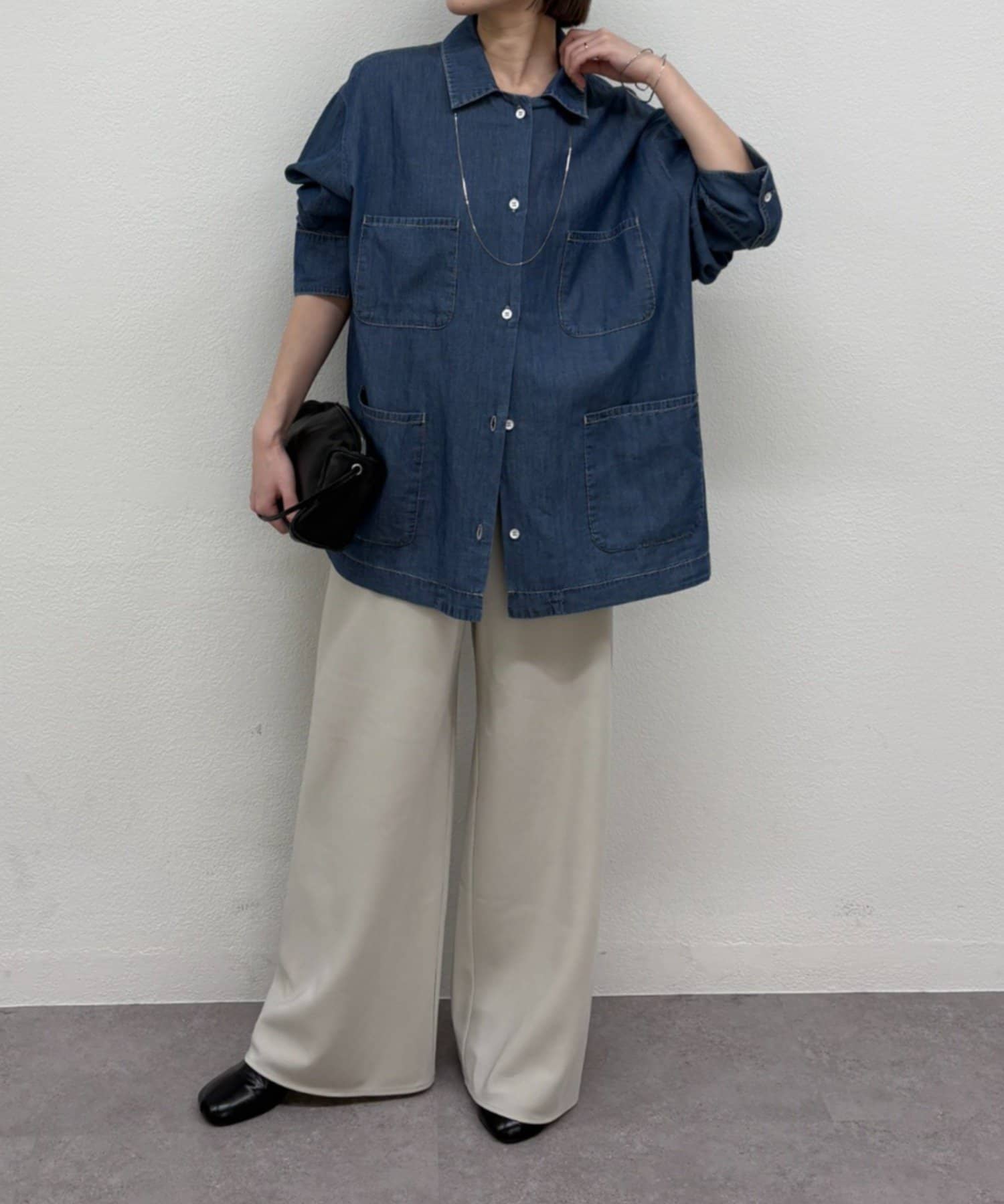 ・カジュアルにも綺麗めにも合わせやすく、オンオフで活躍する1枚。