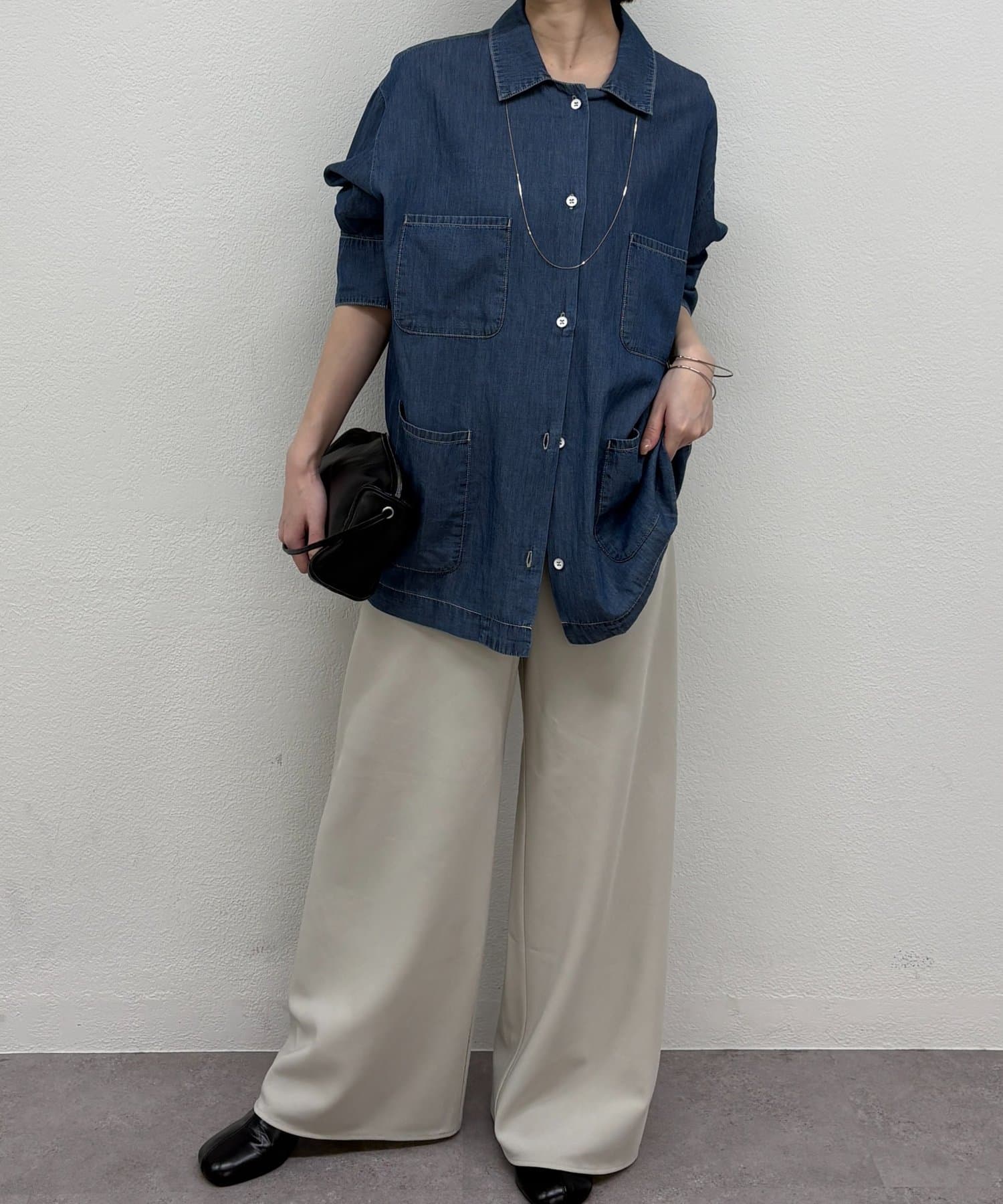 ・カジュアルにも綺麗めにも合わせやすく、オンオフで活躍する1枚。