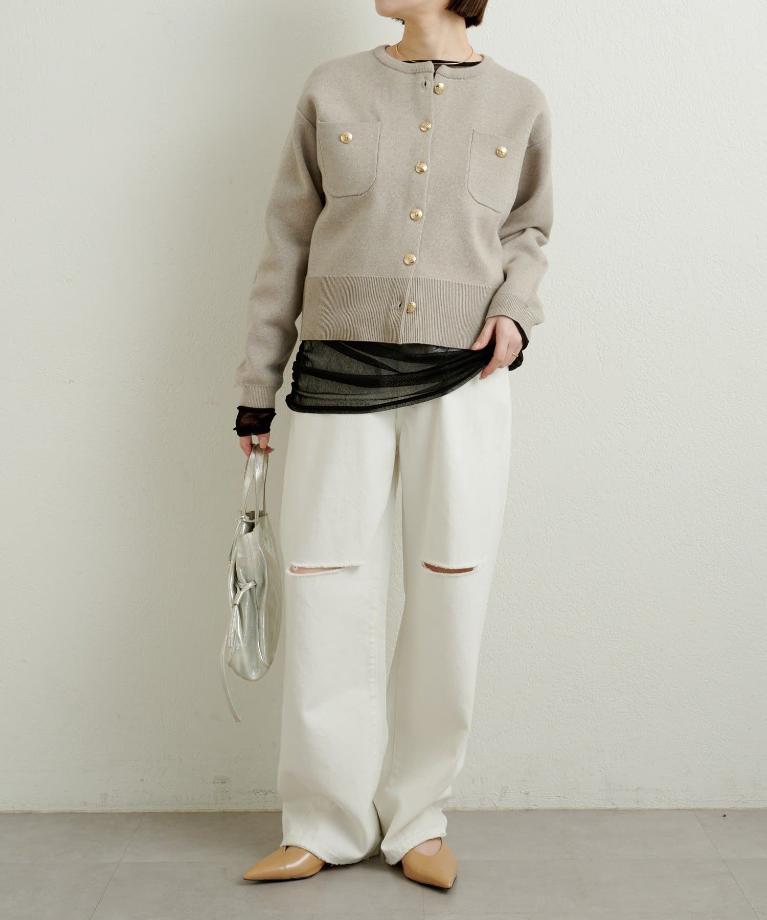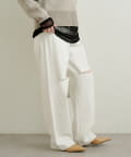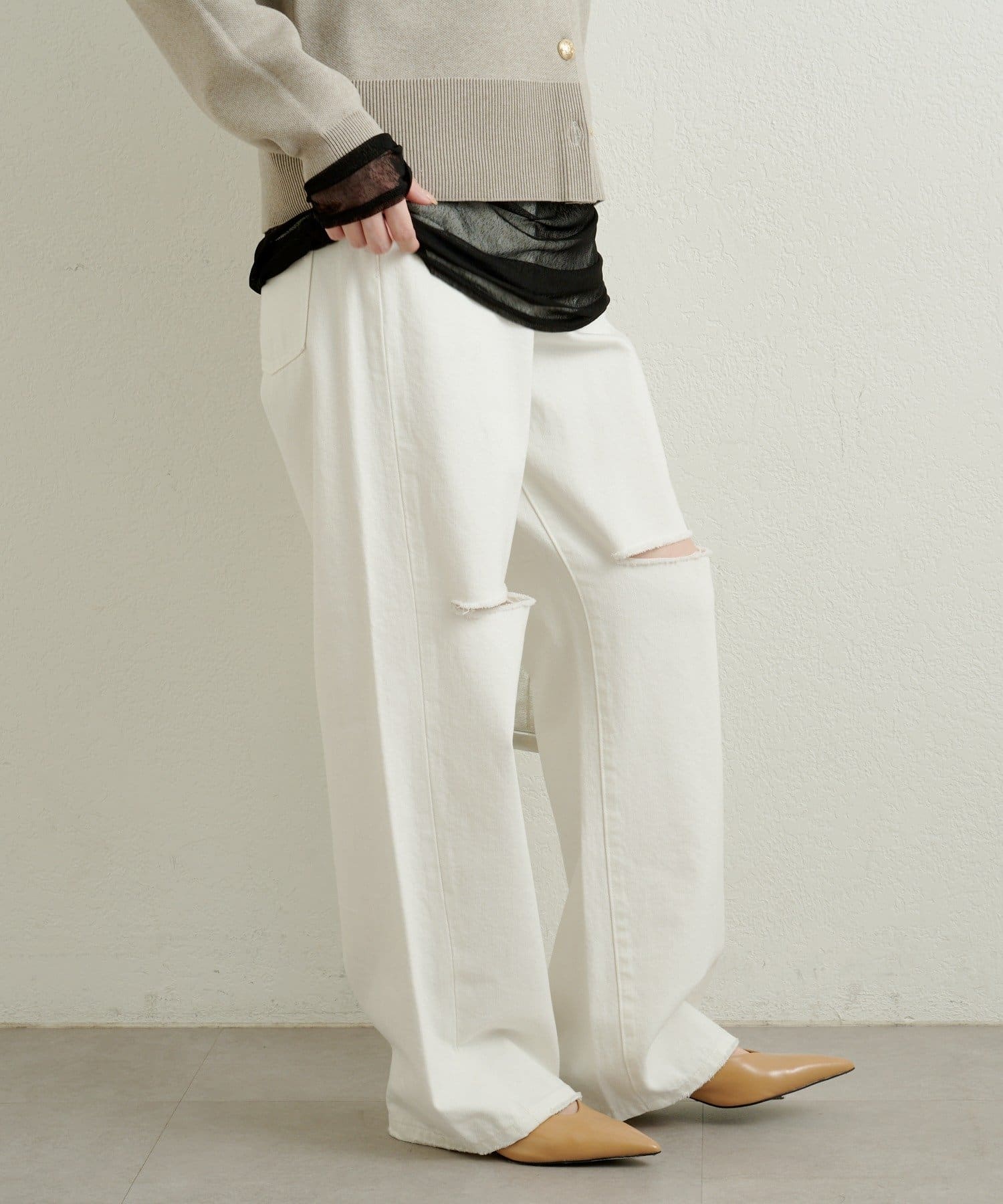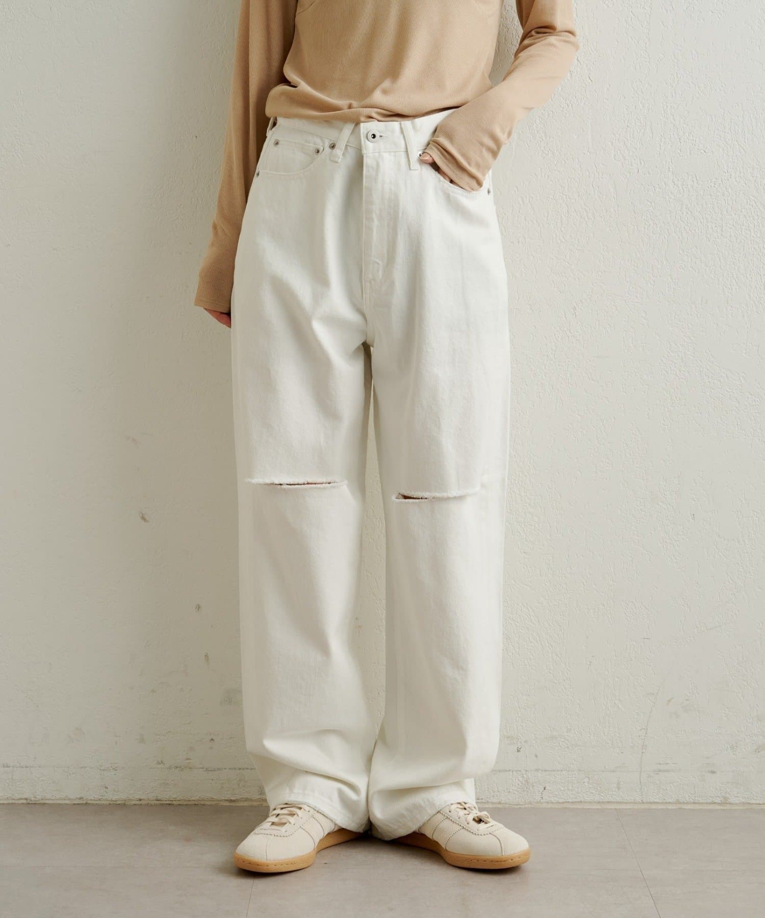 ・膝や裾周りなど各所に施されたダメージ加工が大人なカジュアルスタイルに遊び心をプラスしてくれるデニムパンツ。