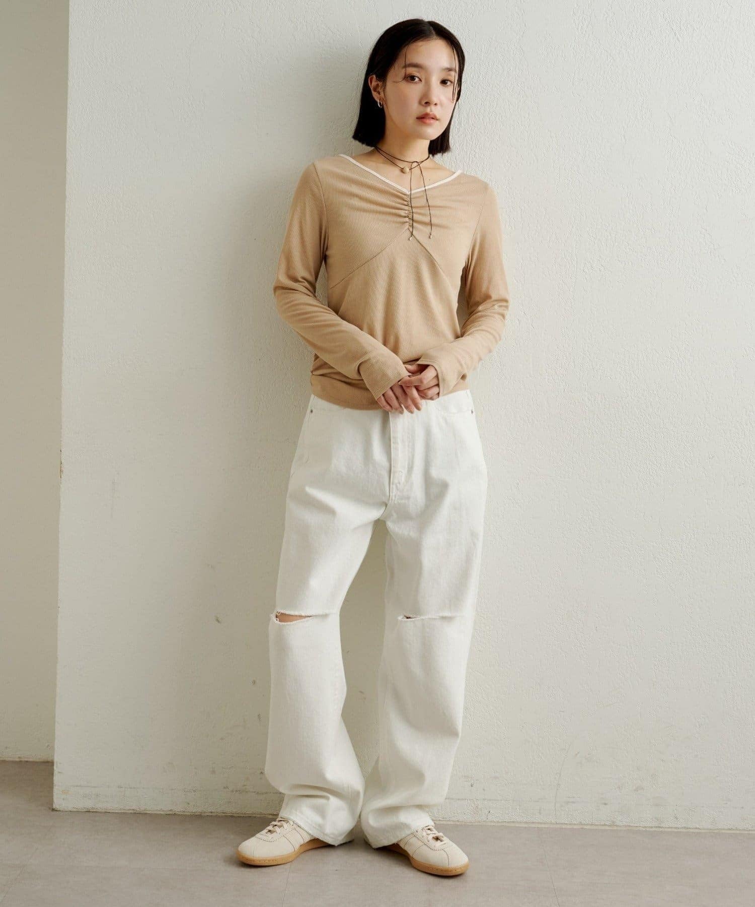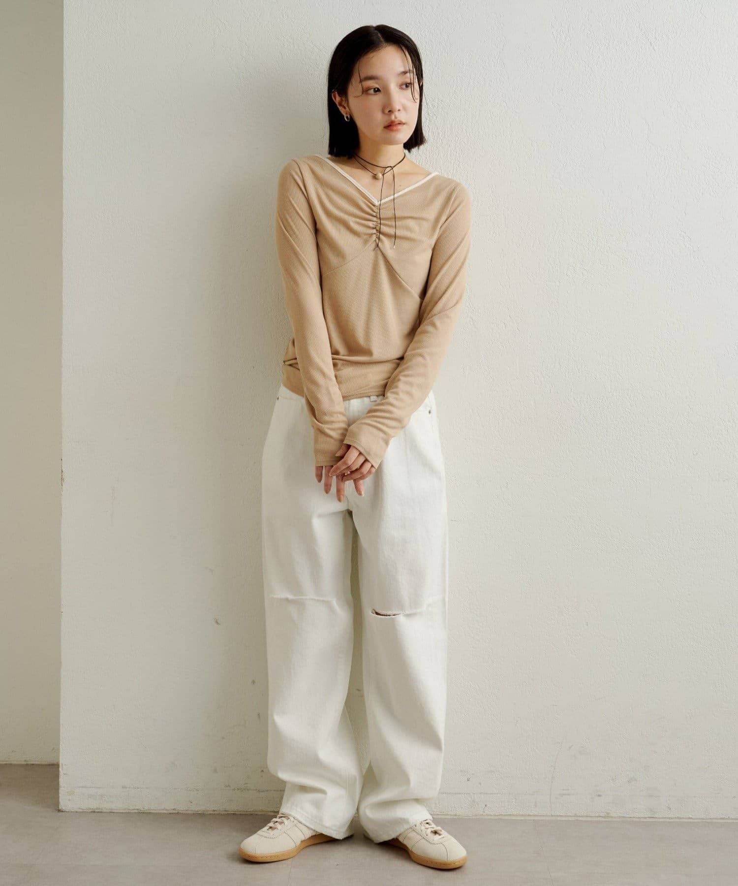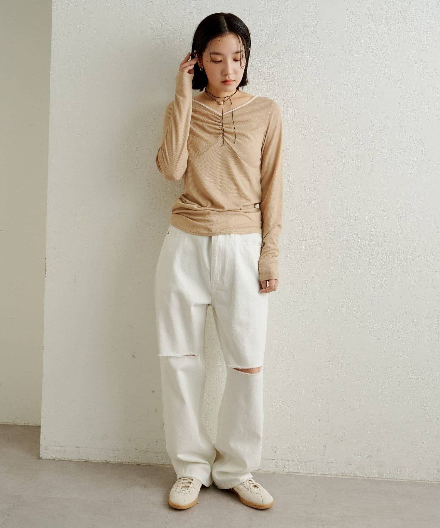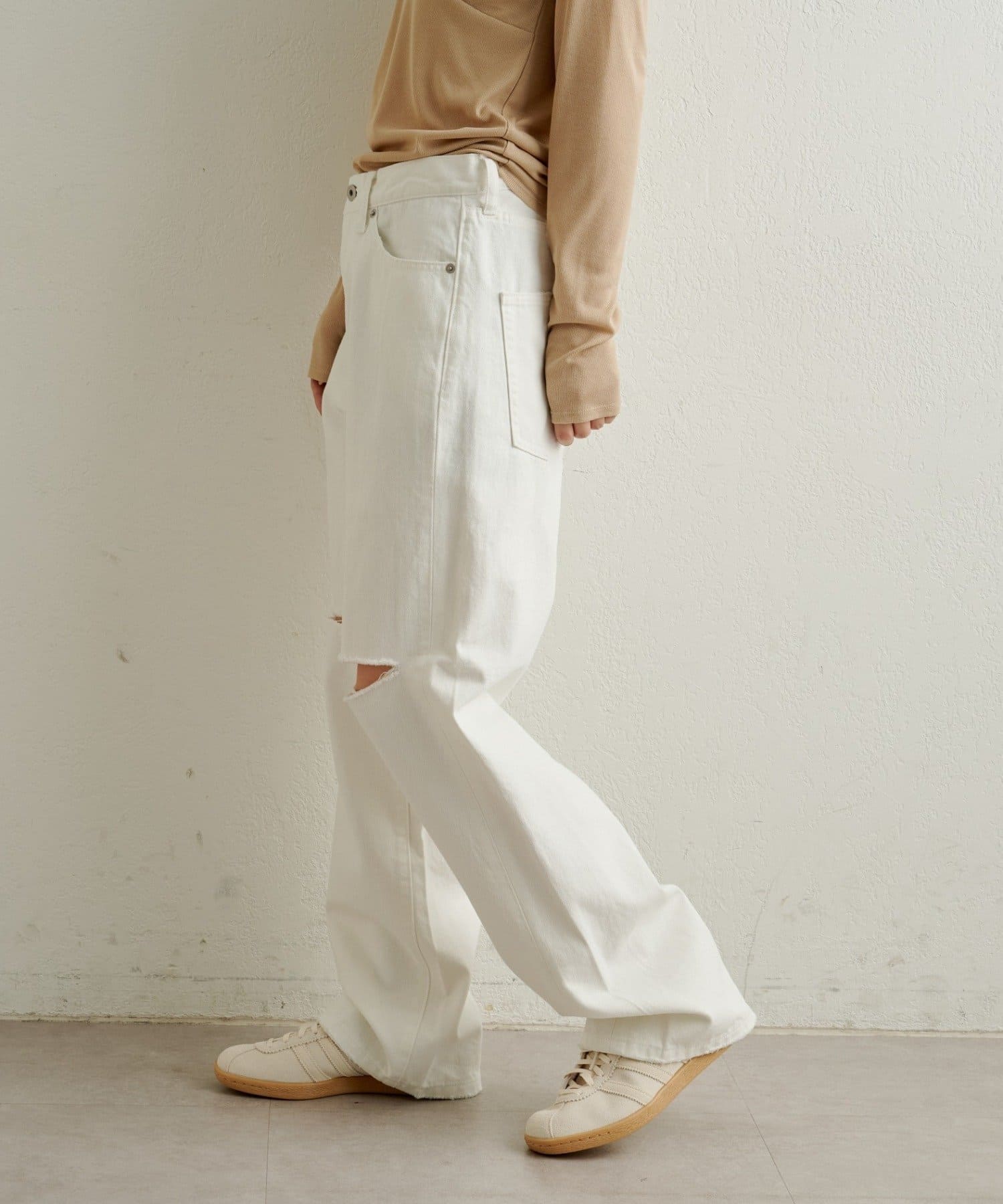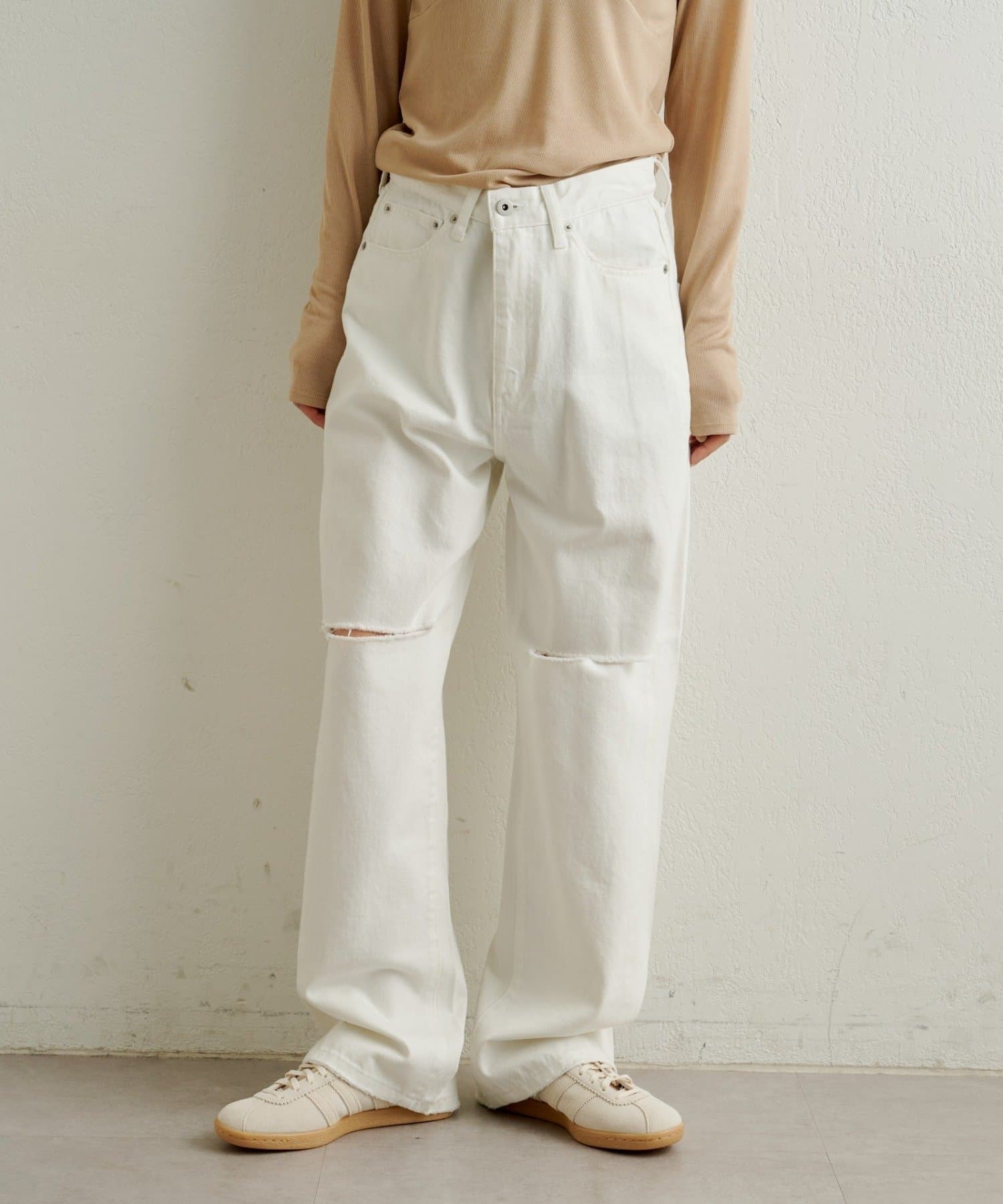 ・穿き続けることで、ダメージ部分がさらにほつれたり、自然に広がる様子も経年変化として楽しめる一本です。