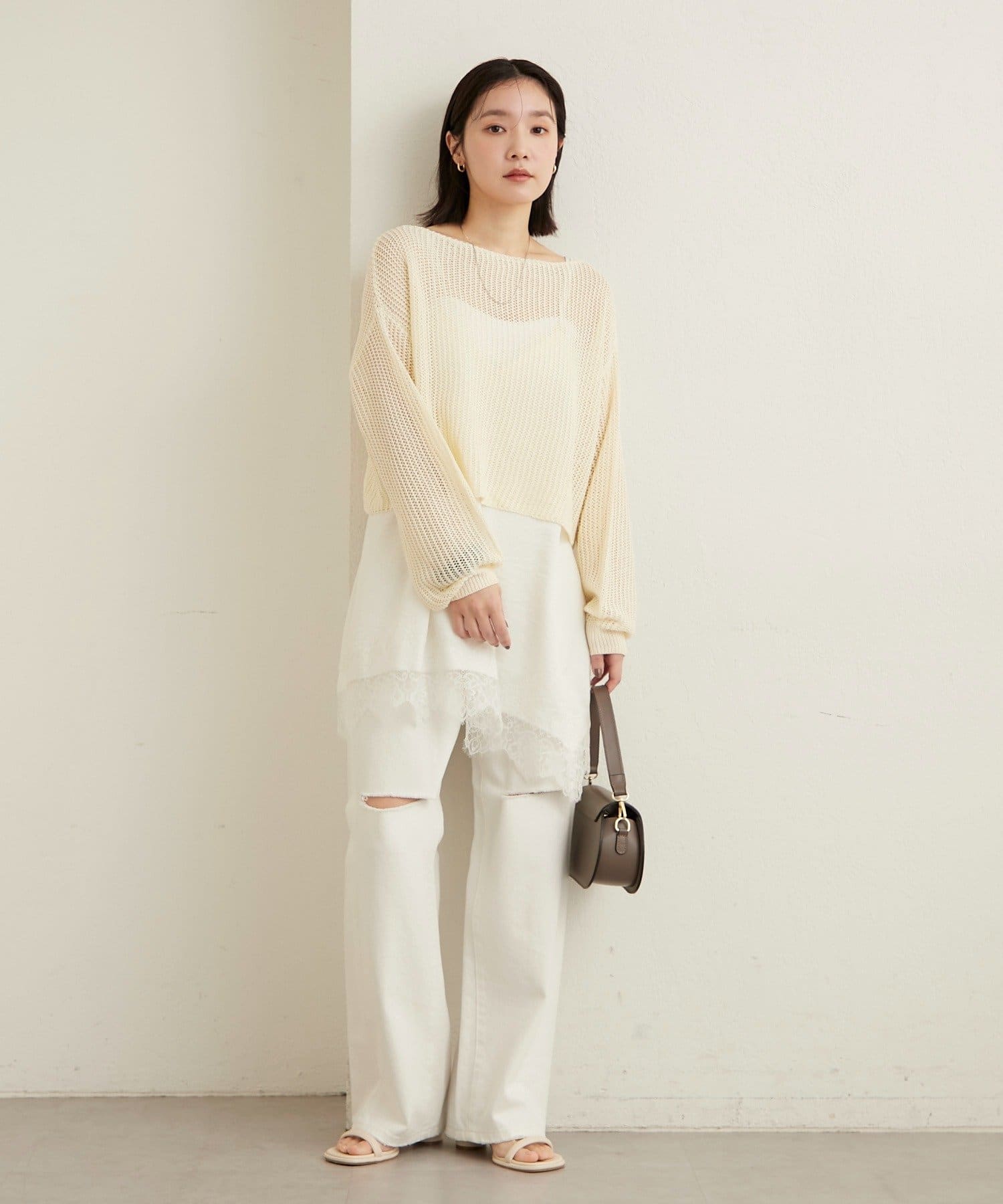 TOP > OUTLET > レディース > パンツ > デニムパンツ > 【Omekashi】ダメージデニムパンツ