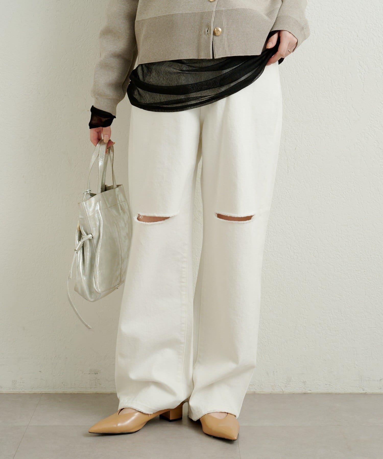 OUTLET(アウトレット) 【Omekashi】ダメージデニムパンツ
