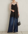 ・胸元と裾に施されたレースが女性らしいキャミチュニック。