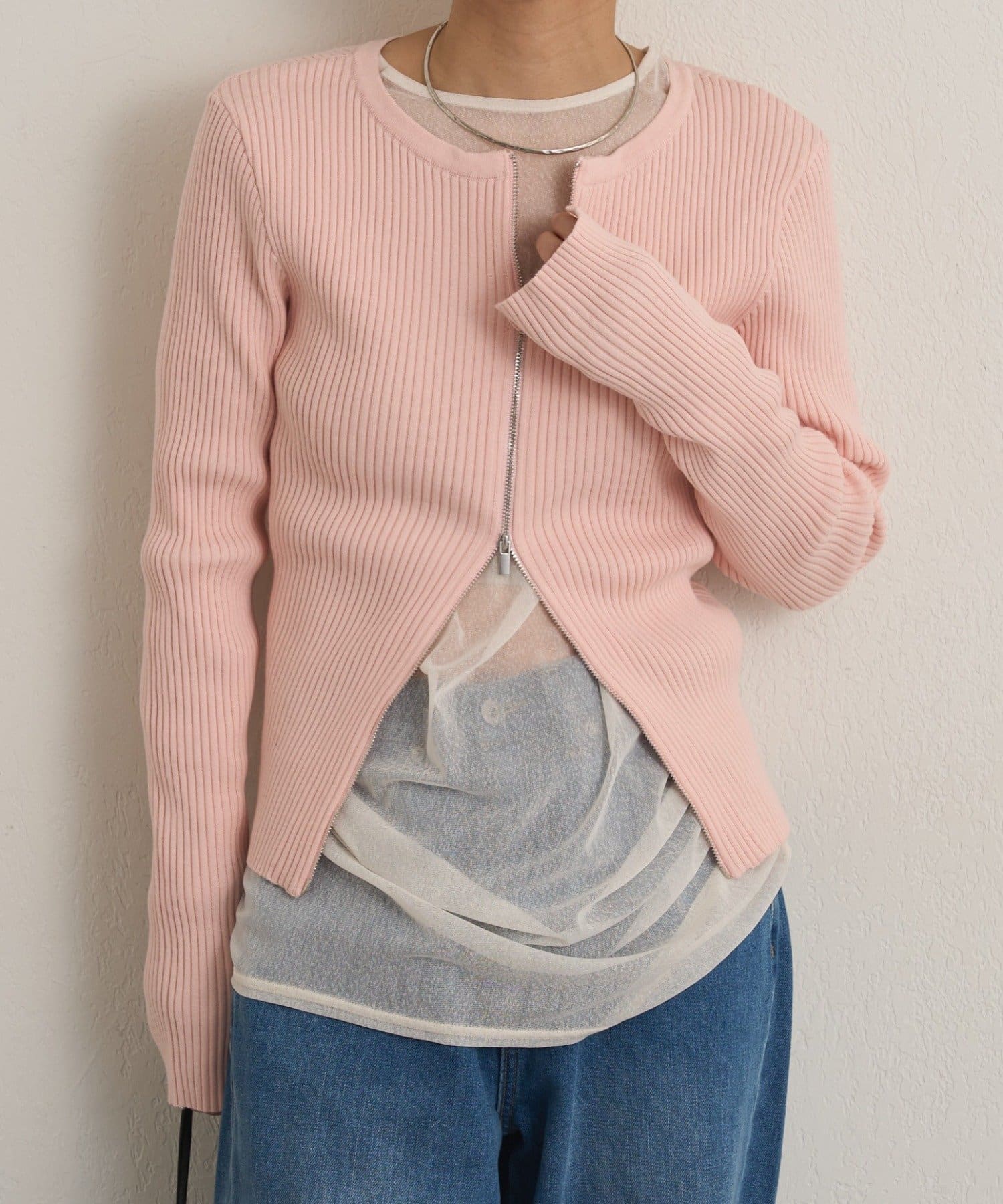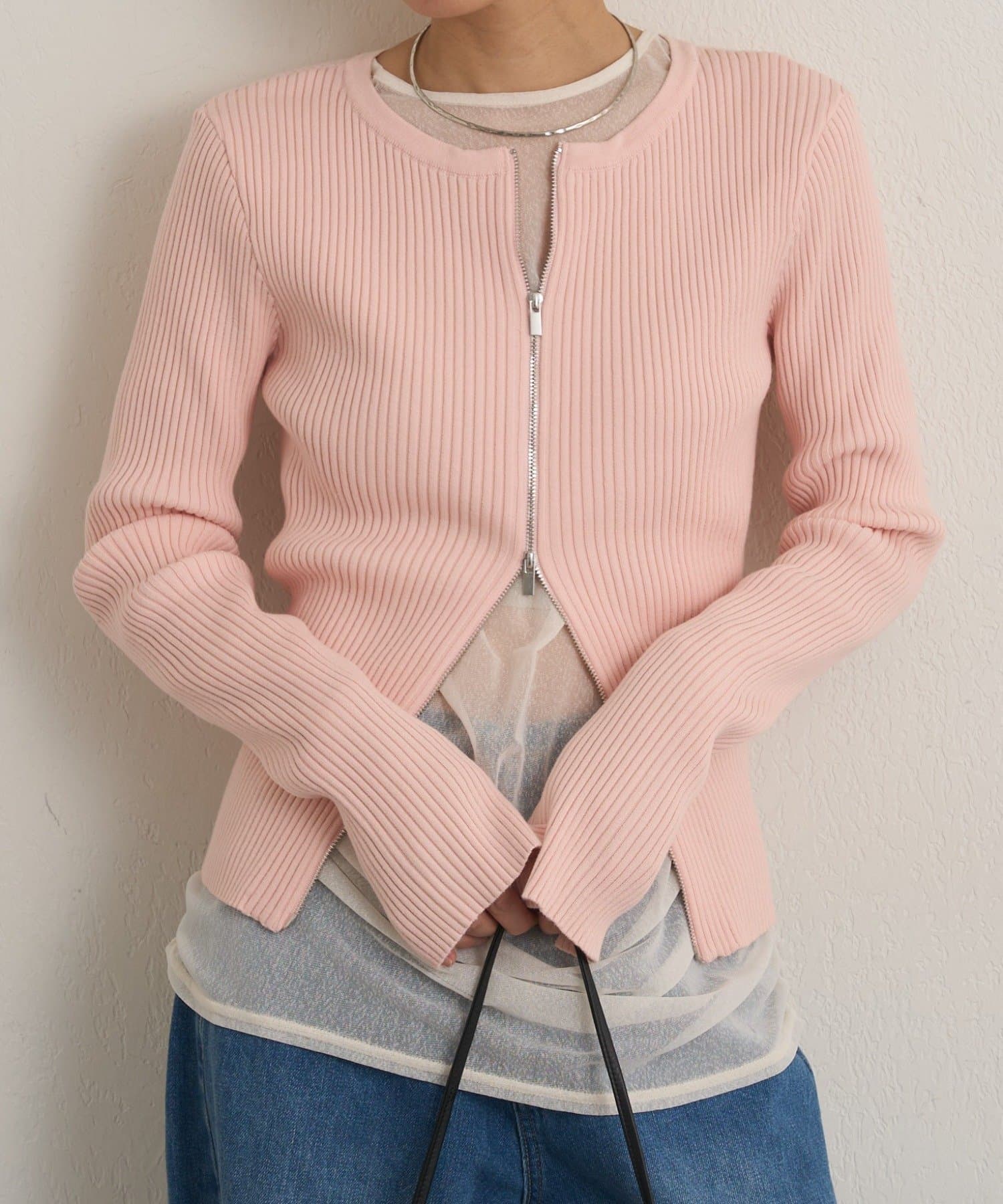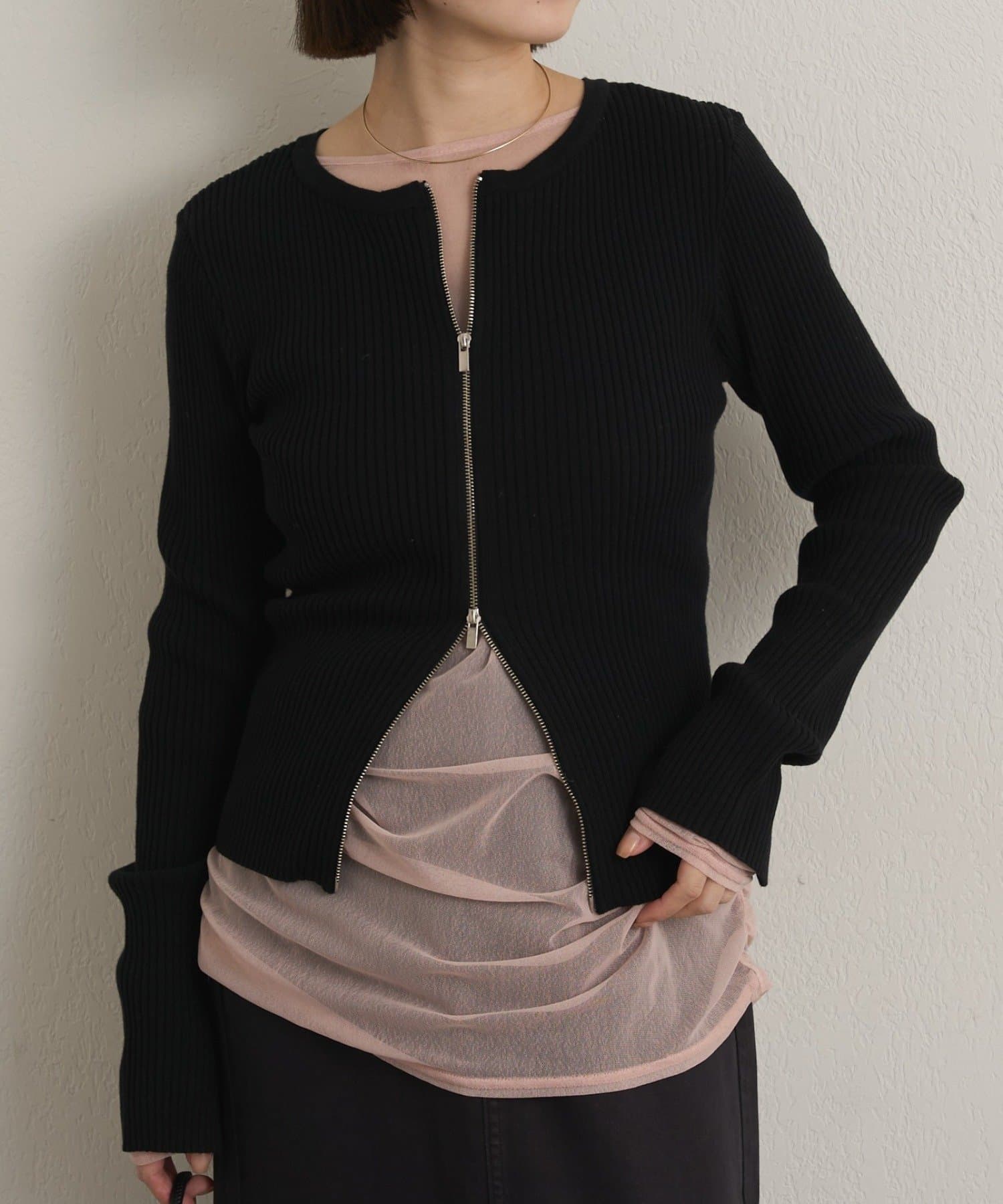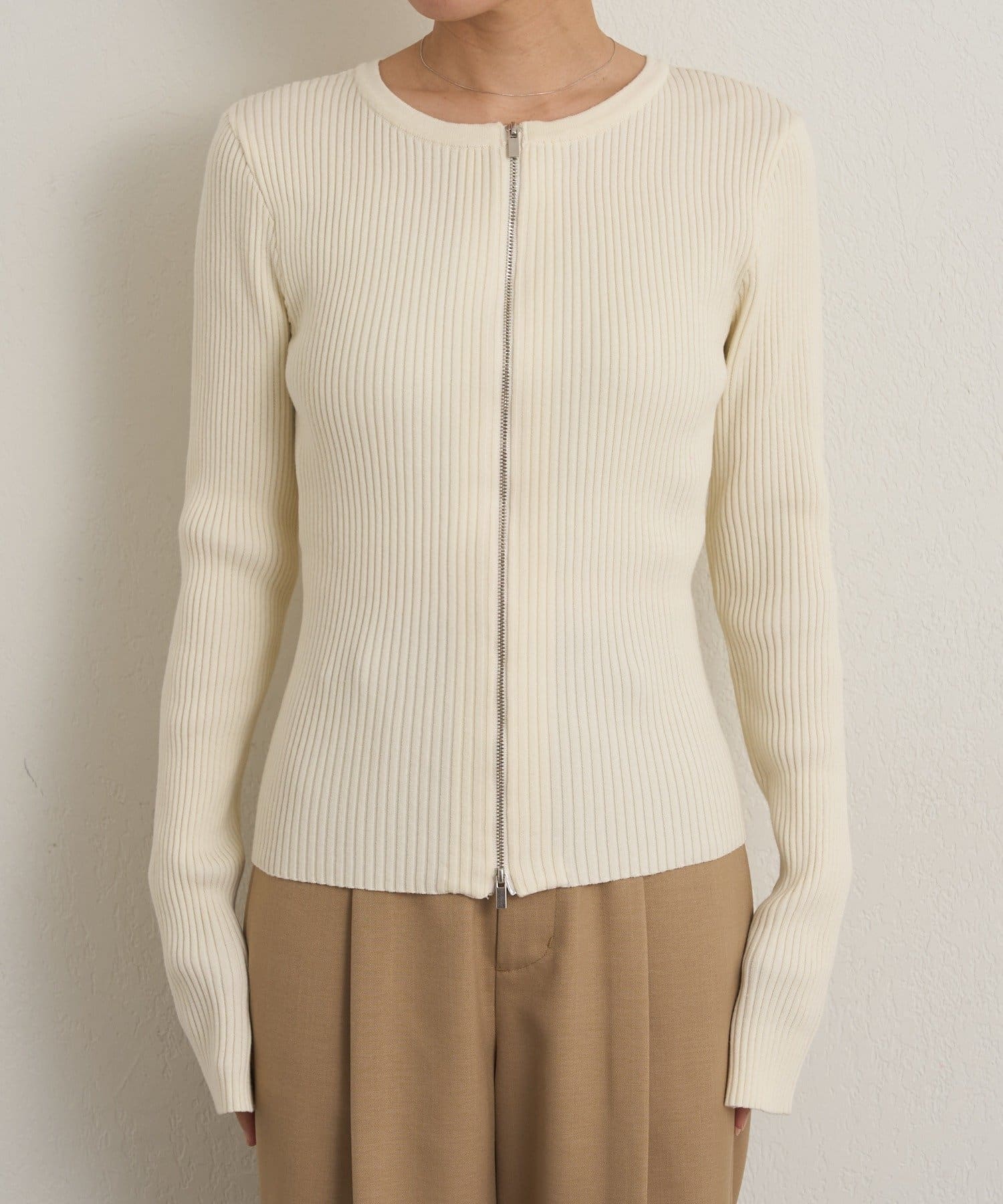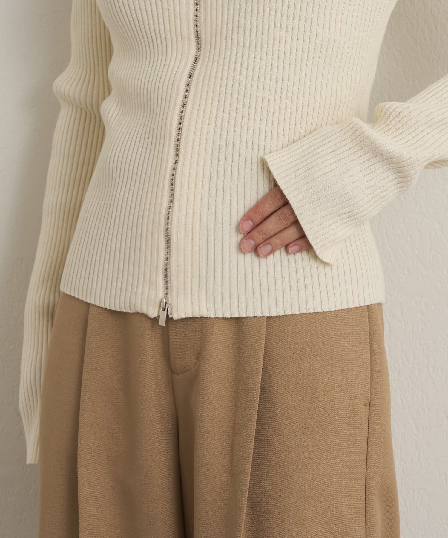 ・程よいフィット感のリブ素材が、身体のラインをすっきり見せてくれるダブルジップリブカーディガン。