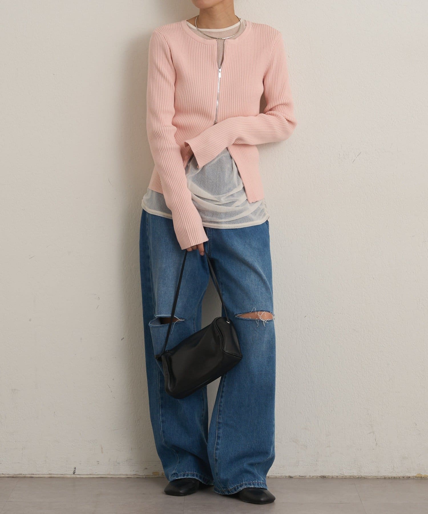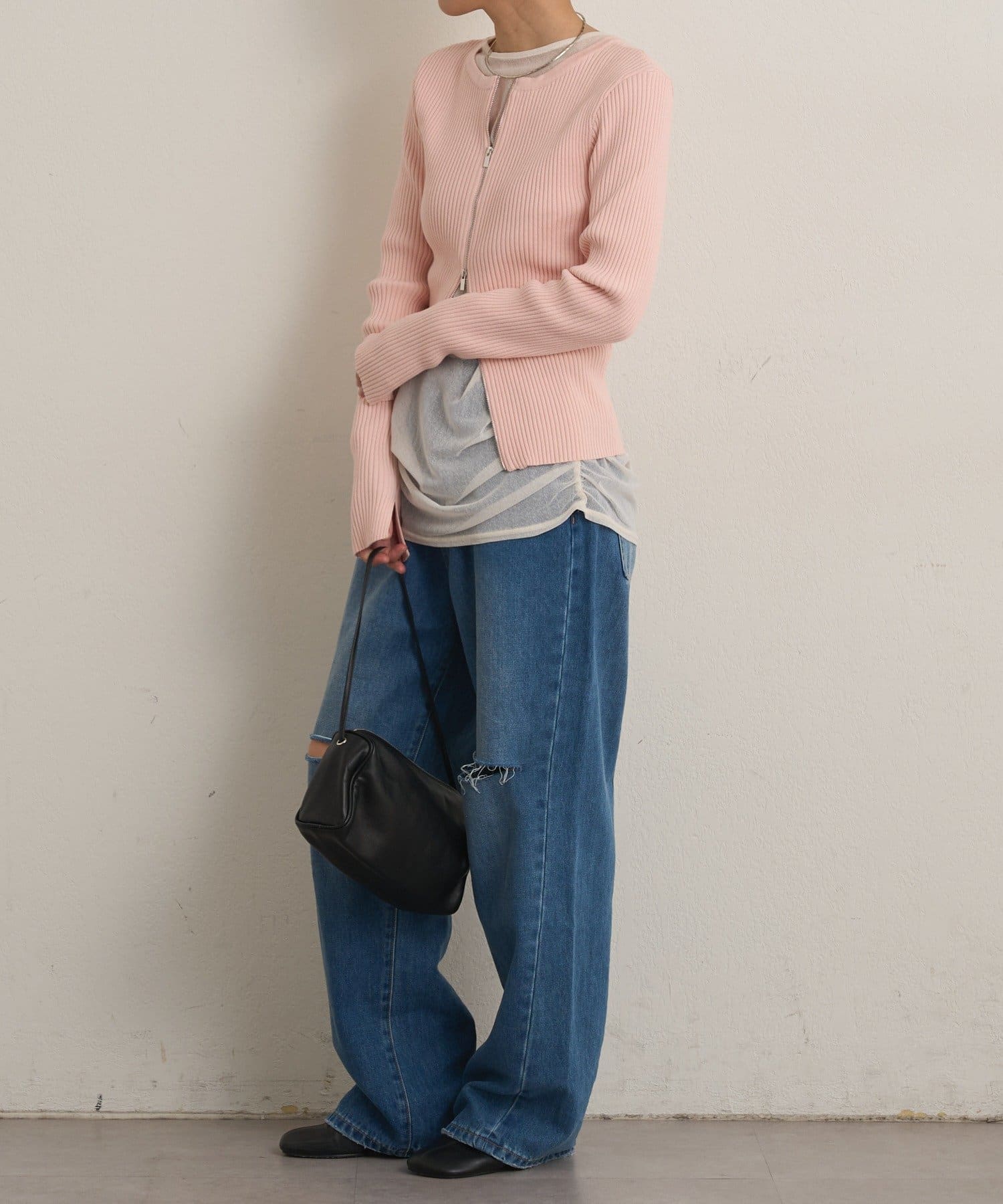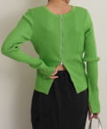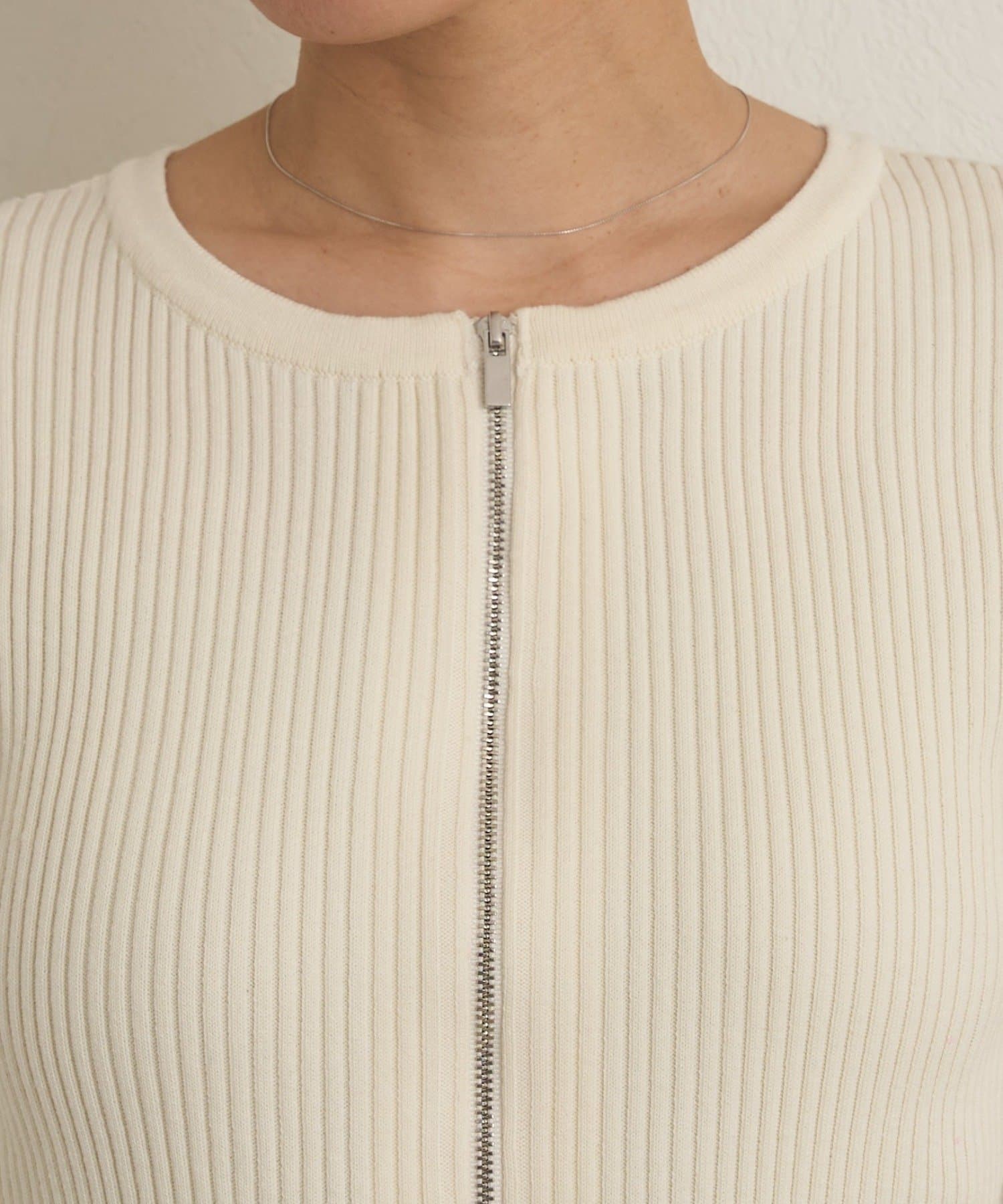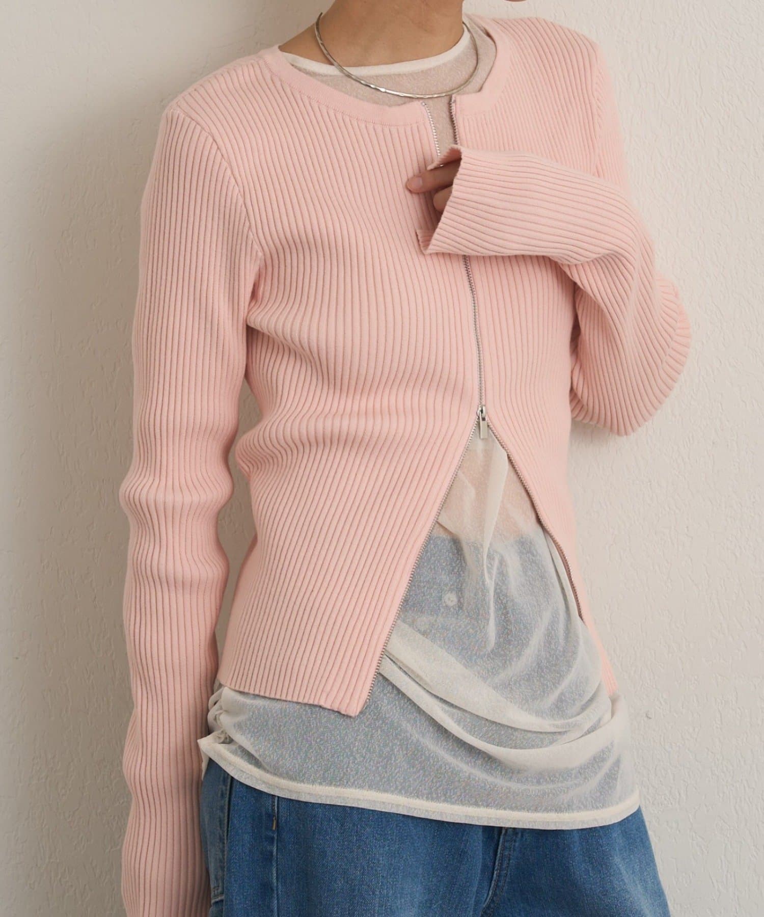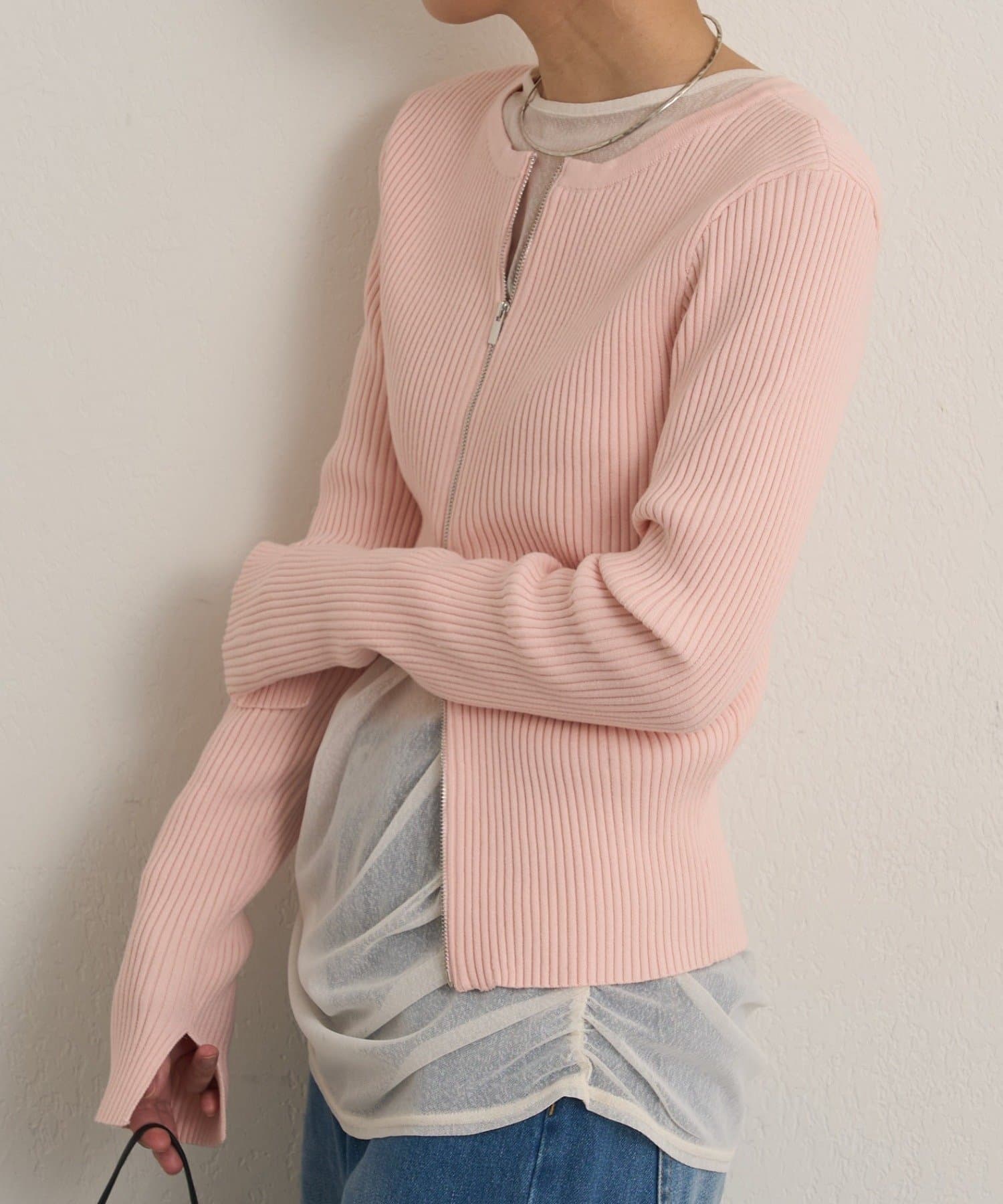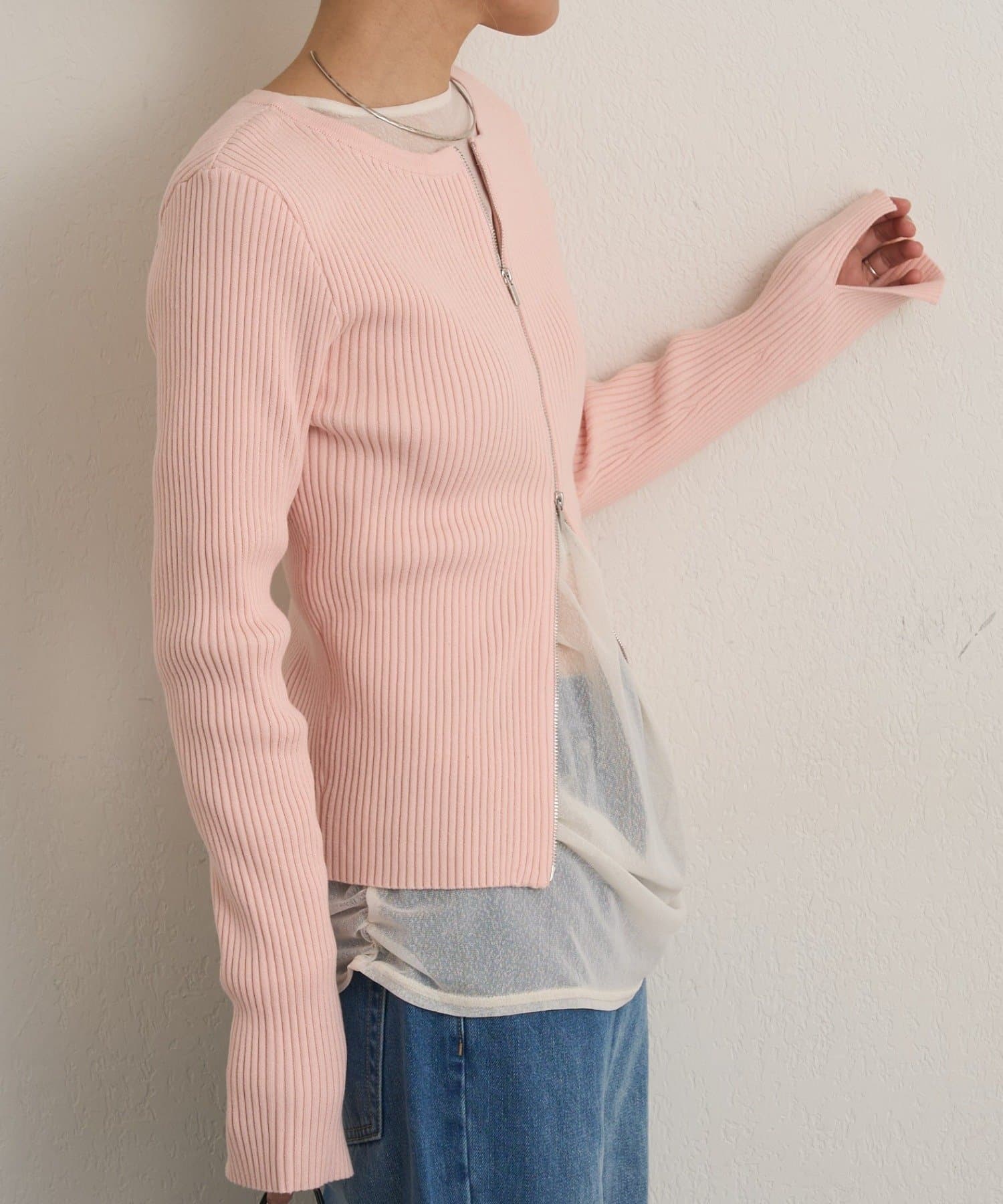 ・程よいフィット感のリブ素材が、身体のラインをすっきり見せてくれるダブルジップリブカーディガン。