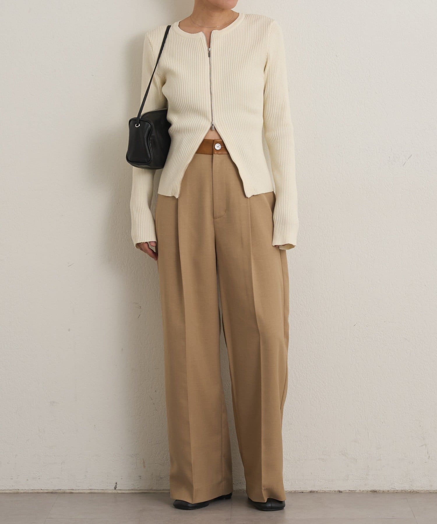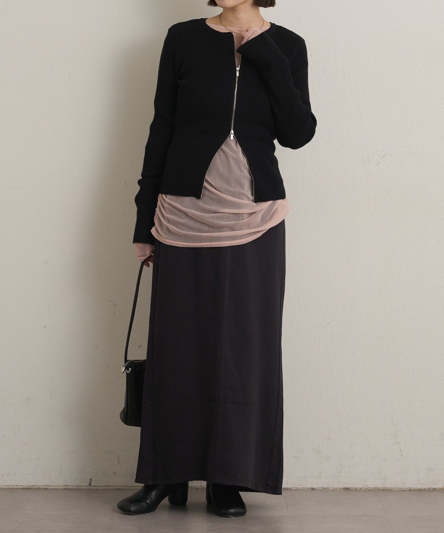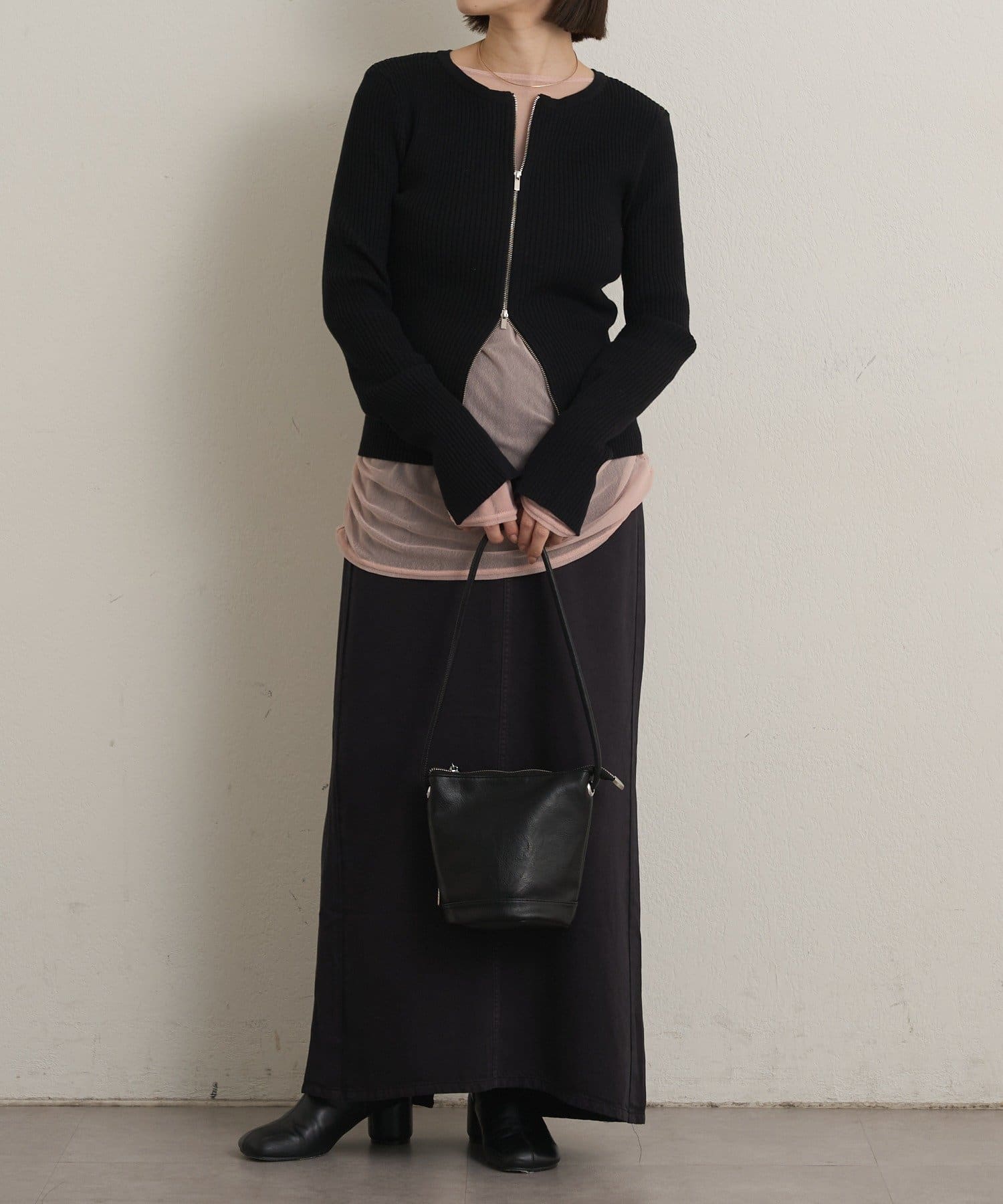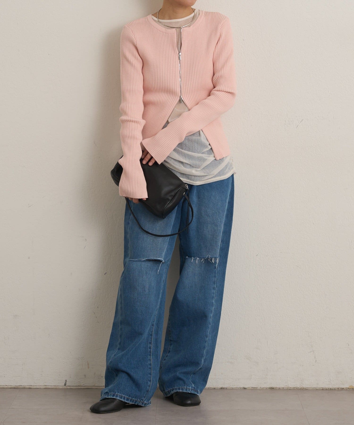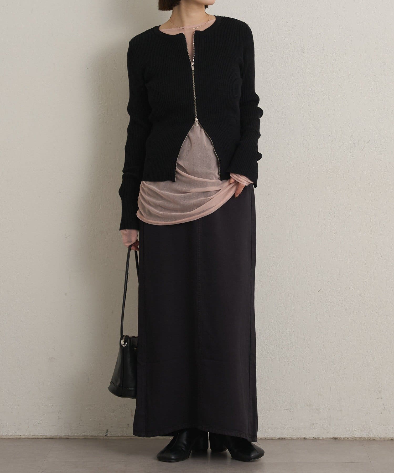 ・程よいフィット感のリブ素材が、身体のラインをすっきり見せてくれるダブルジップリブカーディガン。