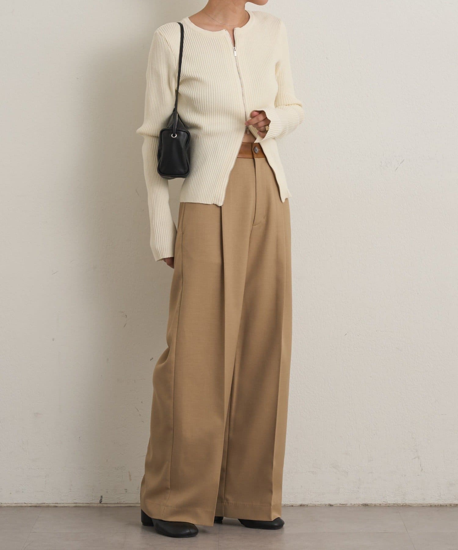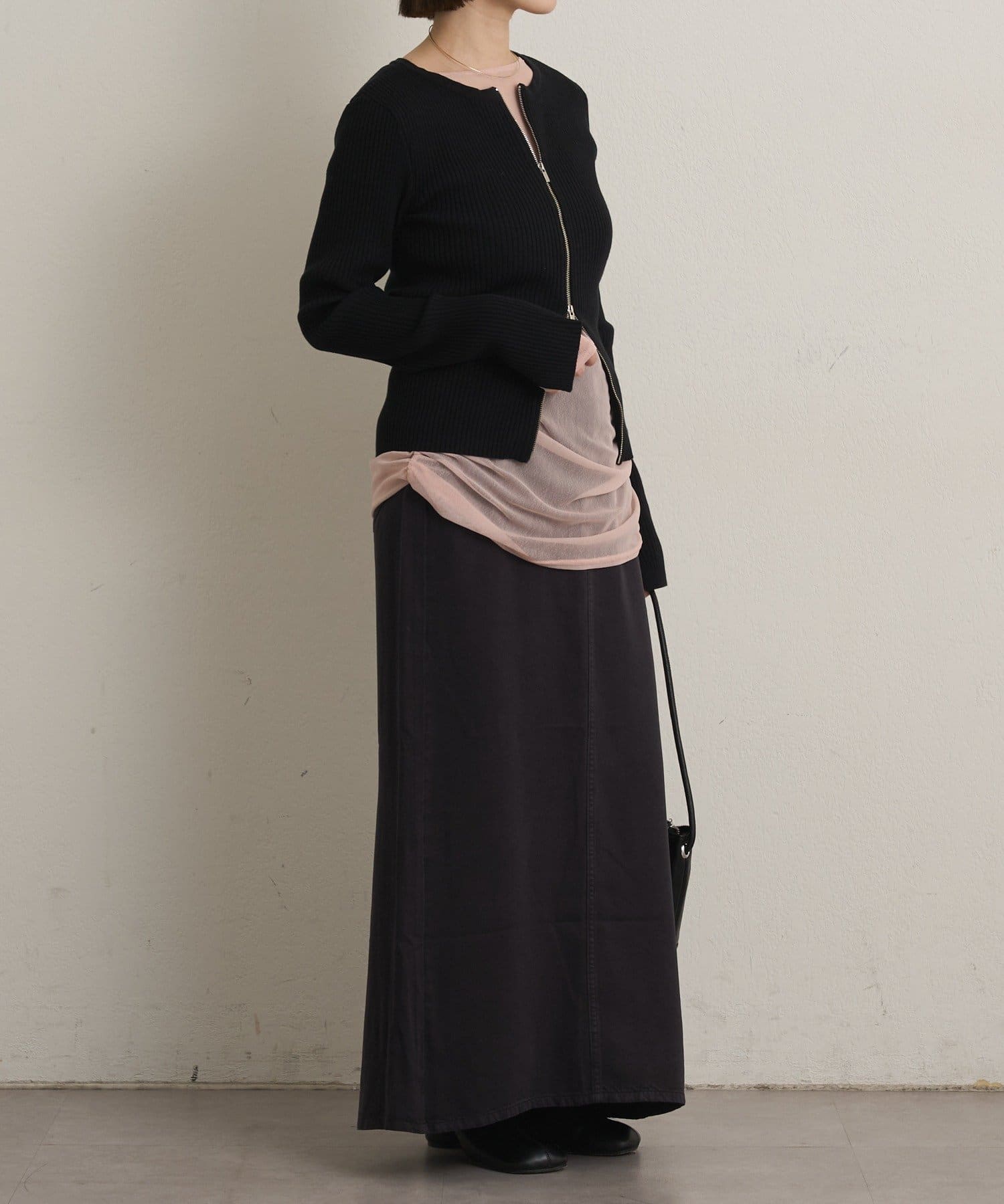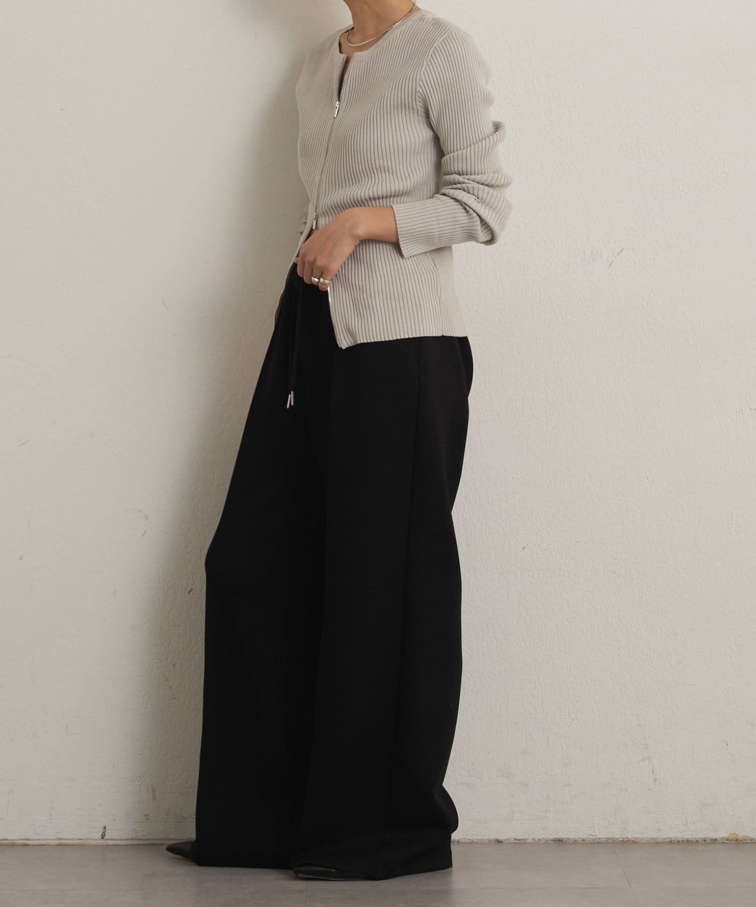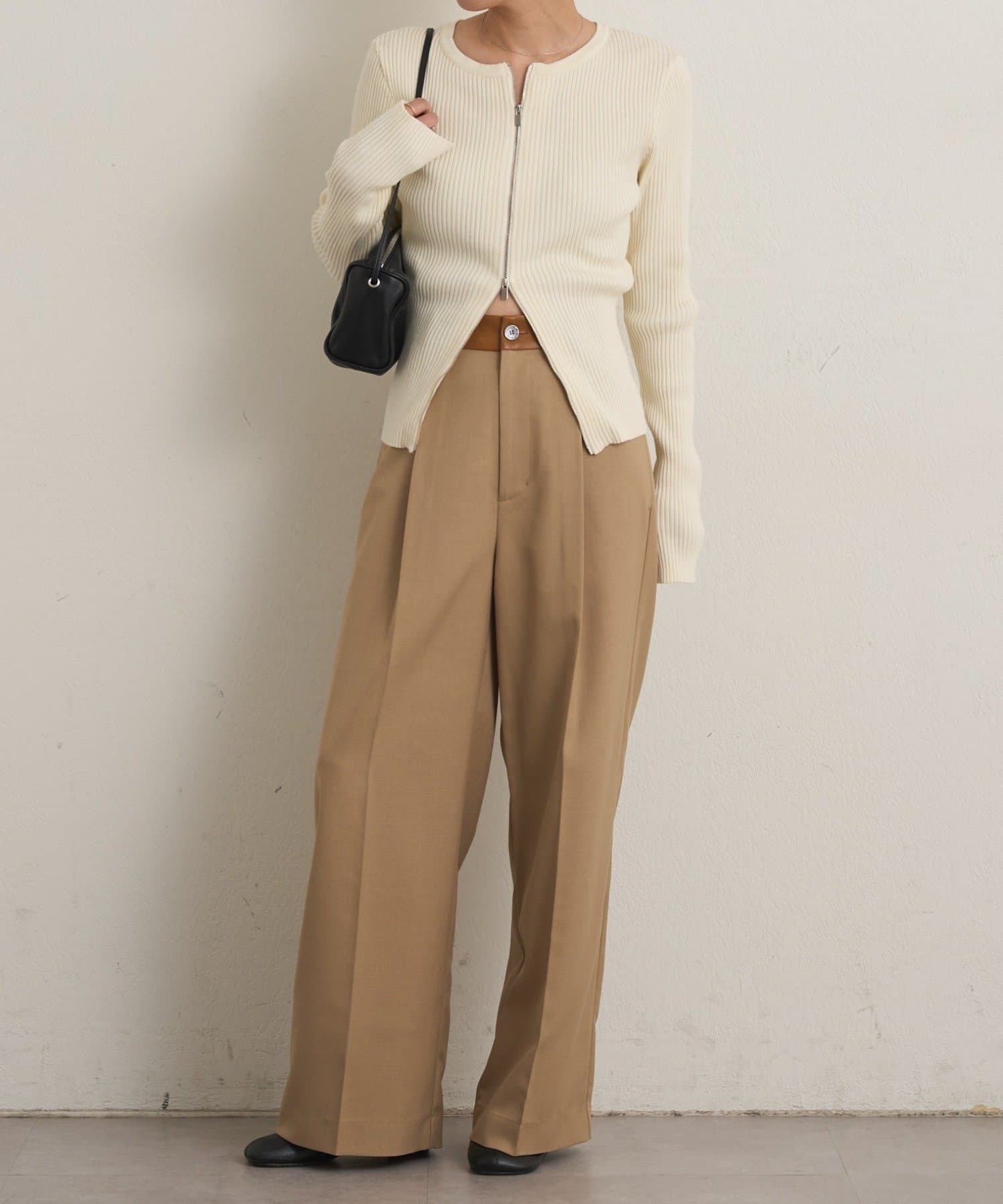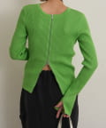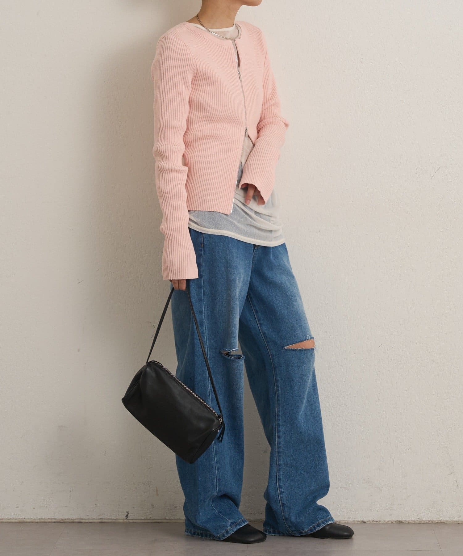 ・程よいフィット感のリブ素材が、身体のラインをすっきり見せてくれるダブルジップリブカーディガン。