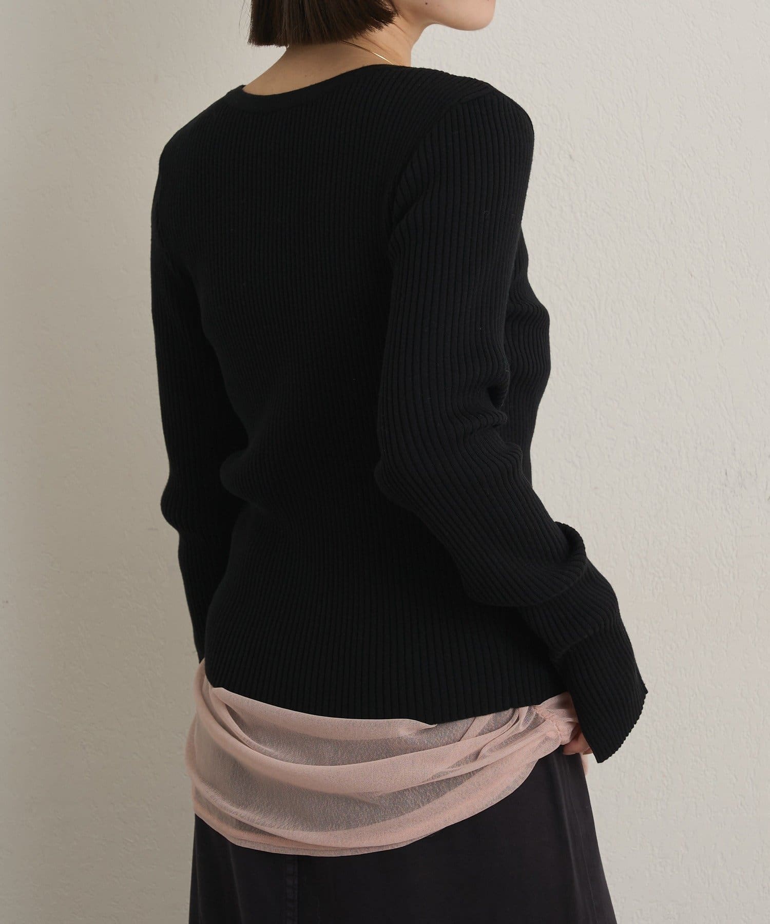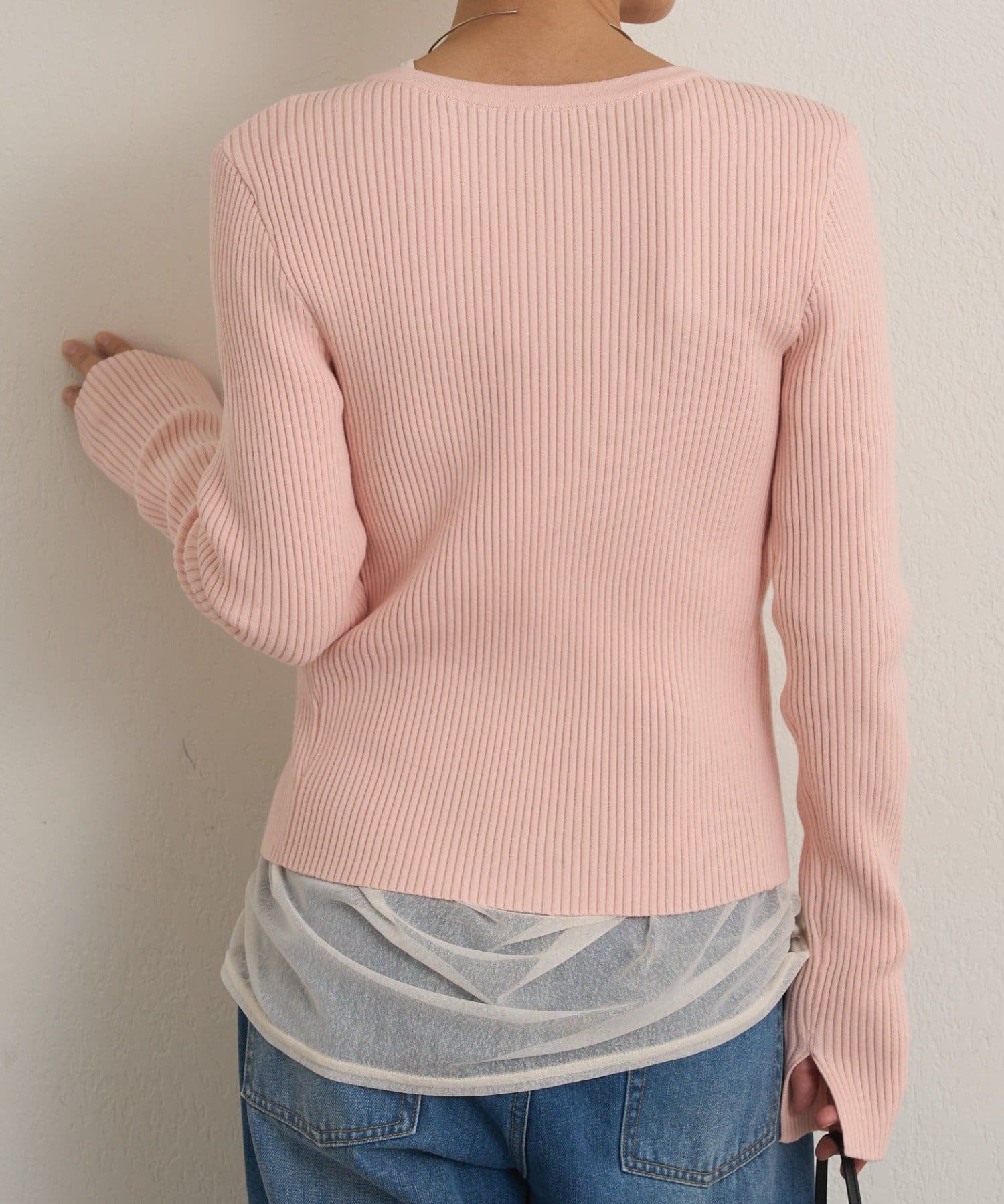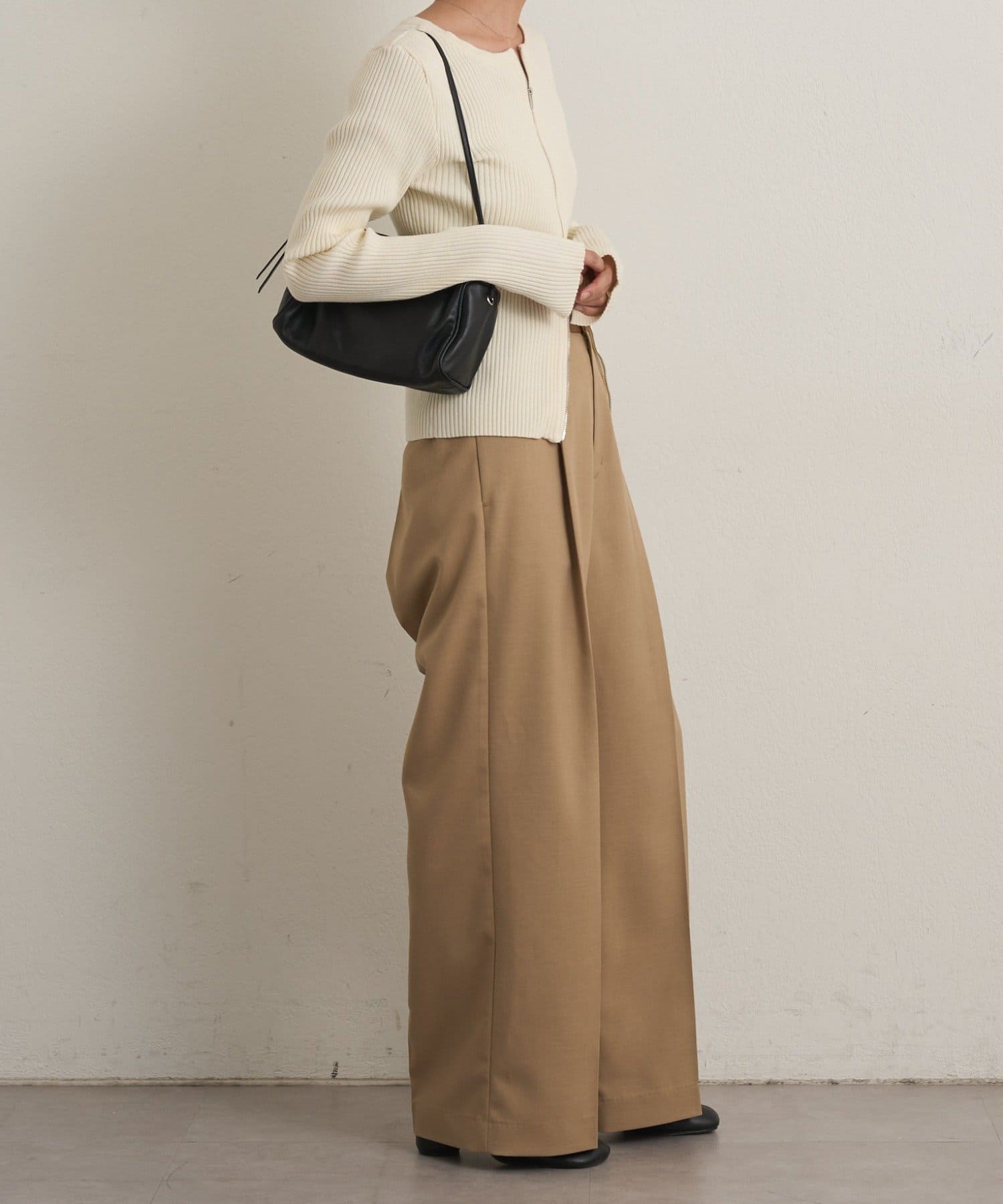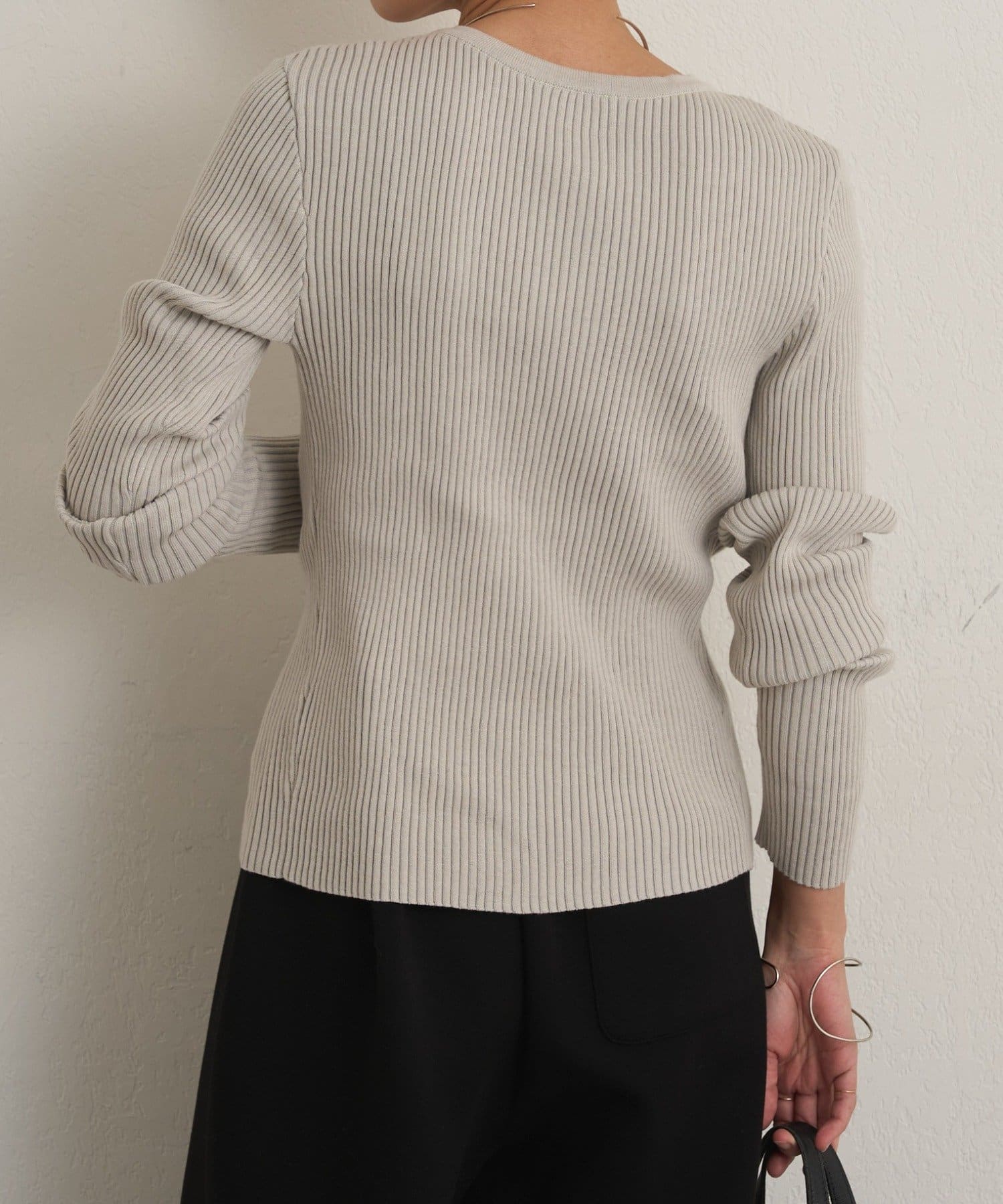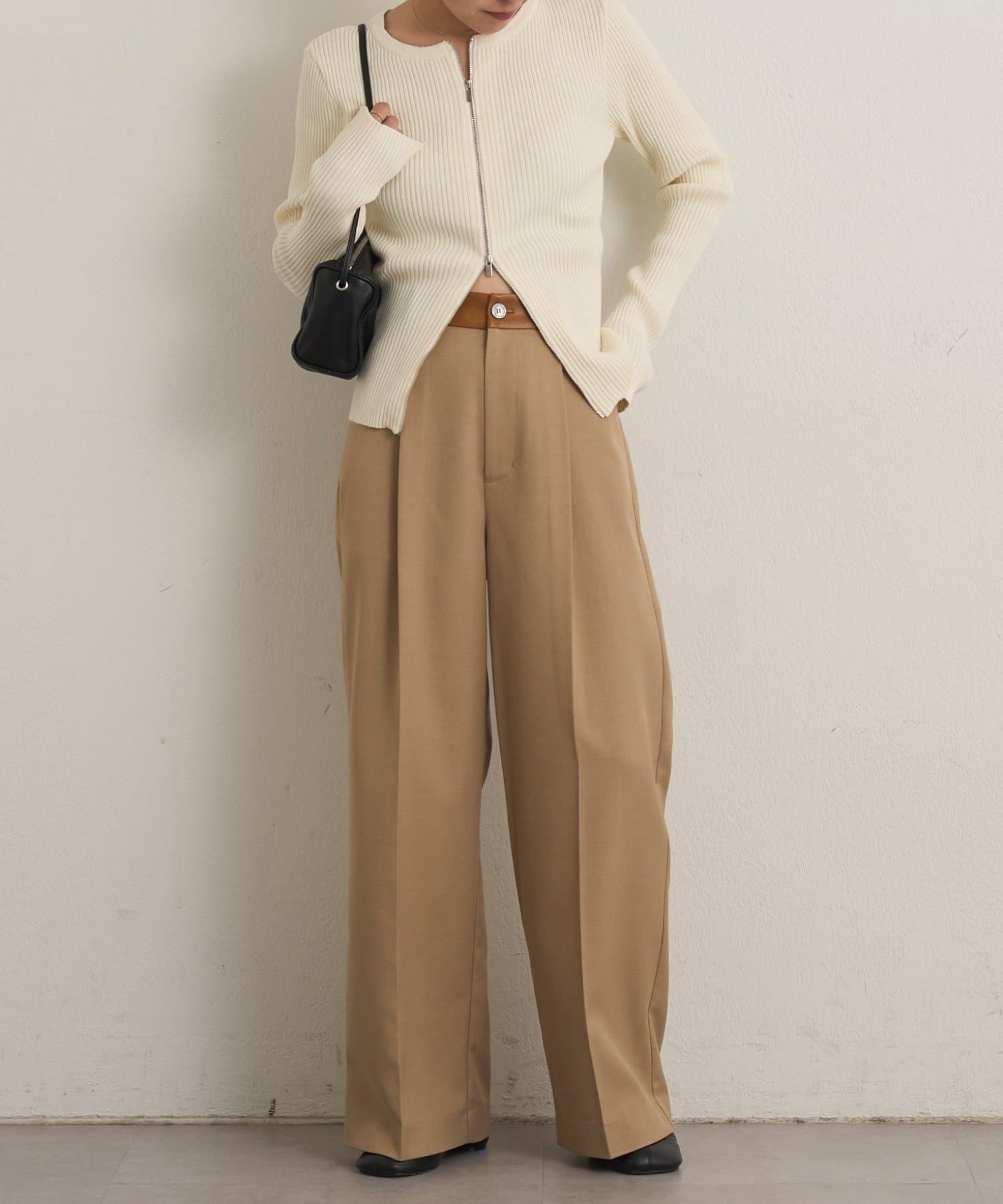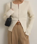 ・程よいフィット感のリブ素材が、身体のラインをすっきり見せてくれるダブルジップリブカーディガン。