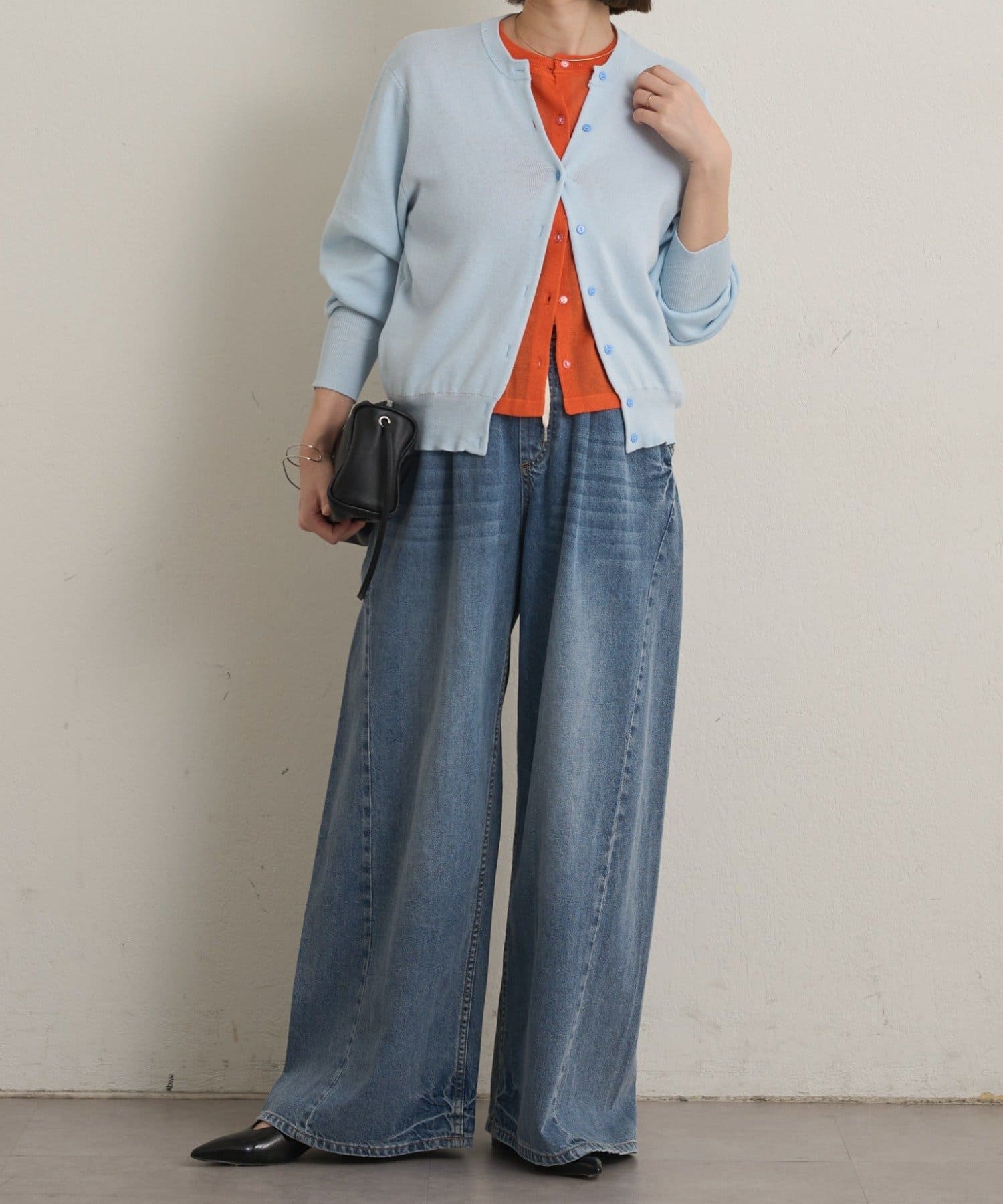 ・シアー感のある素材が使用されているため、コーディネートに抜け感が出る一枚。