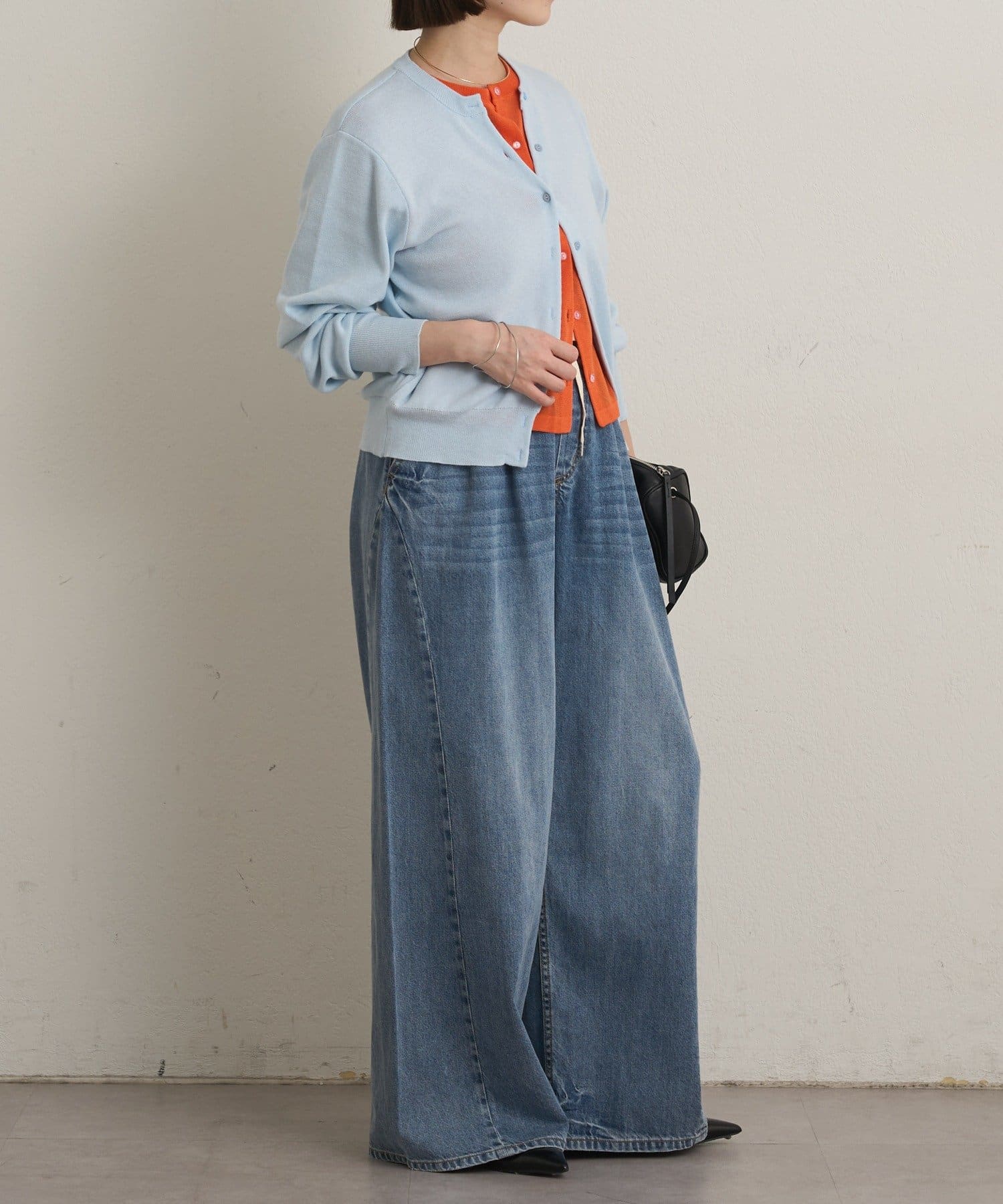・軽やかなニット素材のた、季節の変わり目にも大活躍。
