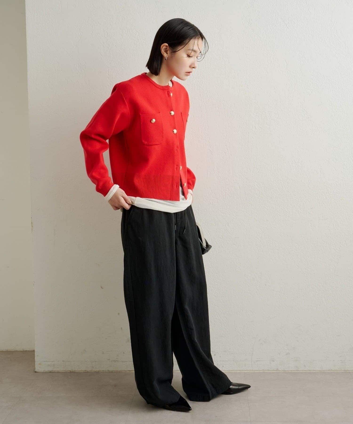 ・シンプルでありながら、伸縮性のある生地を使用しており程よく身体に沿う女性らしいシルエットが魅力。