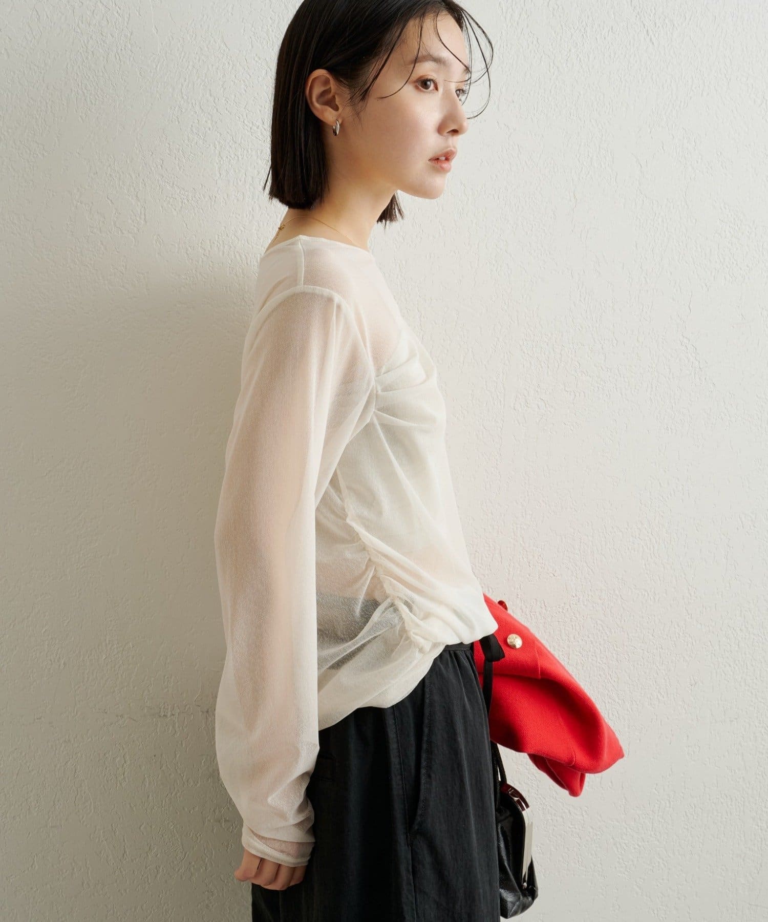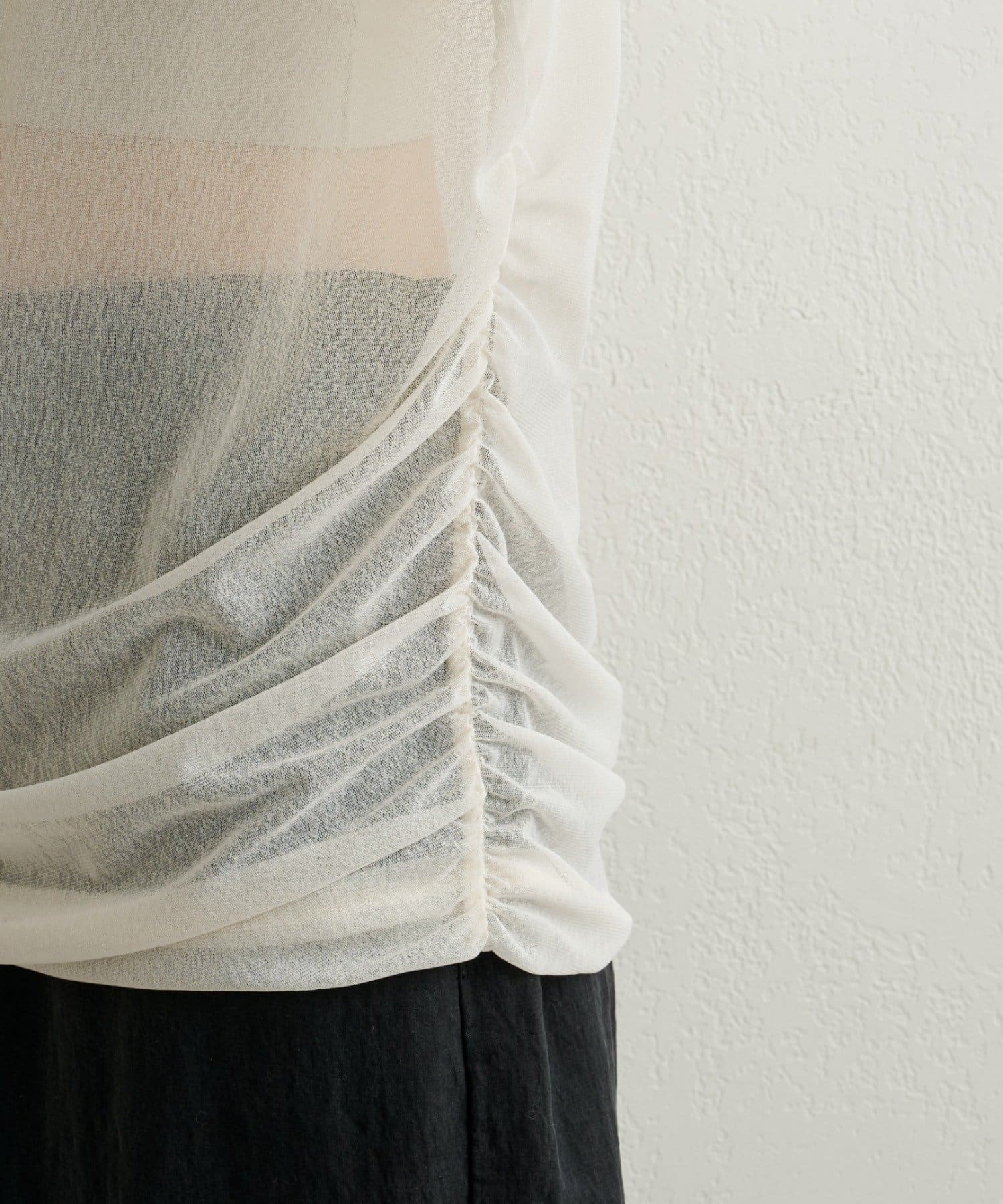 ・両脇に施されたシャーリングデザインが、立体感がのあるデザインカットソーです。