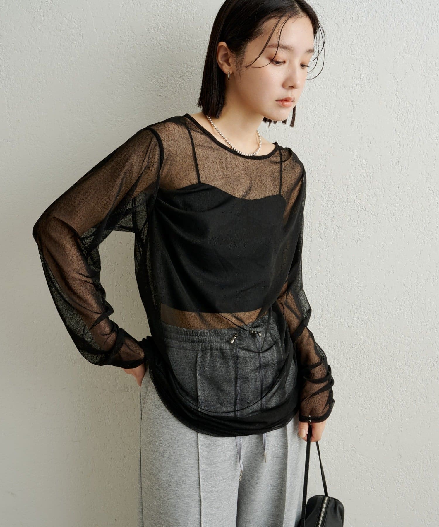 TOP > Omekashi > レディース > トップス > Tシャツ/カットソー > チュールTシャツ