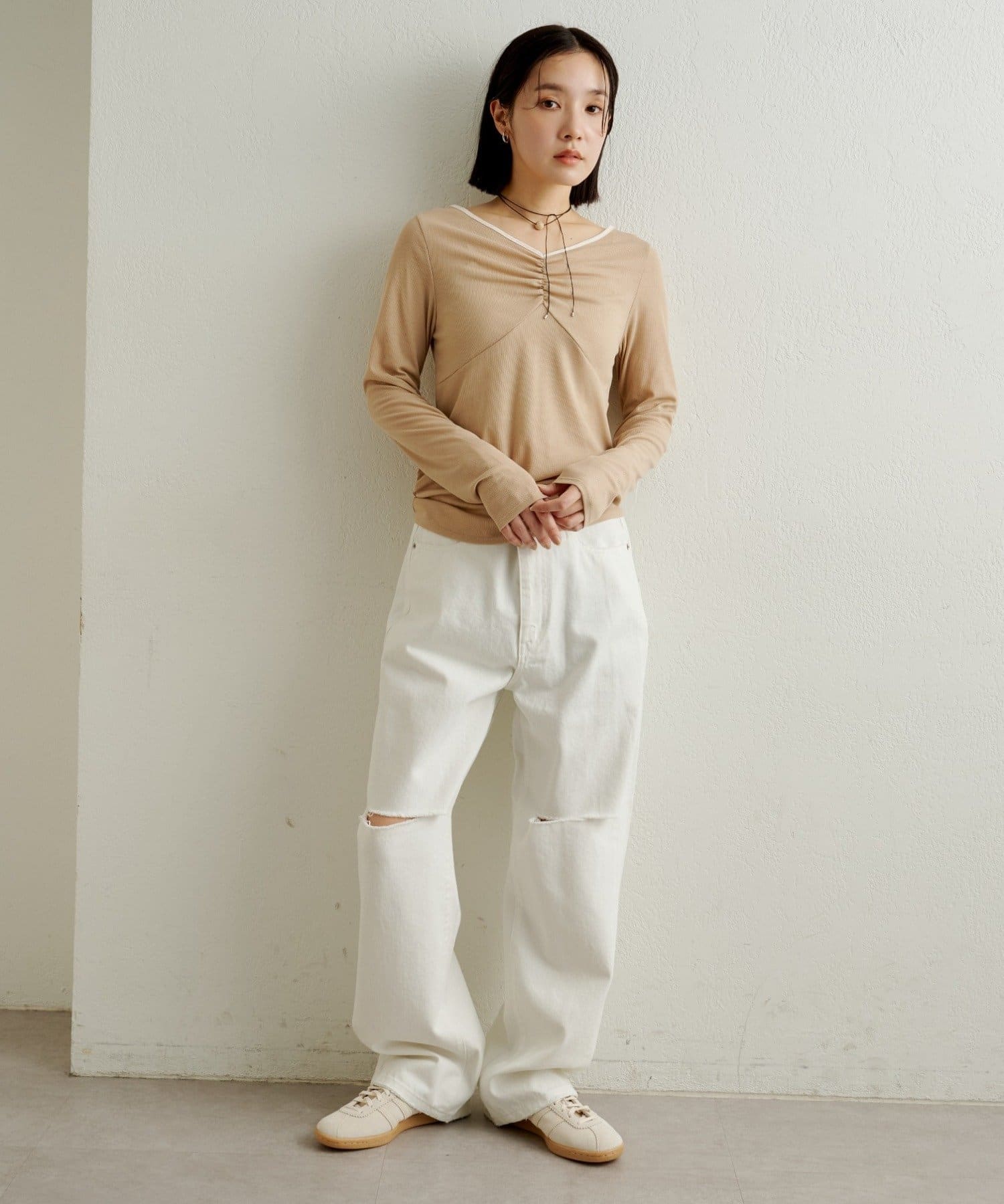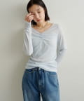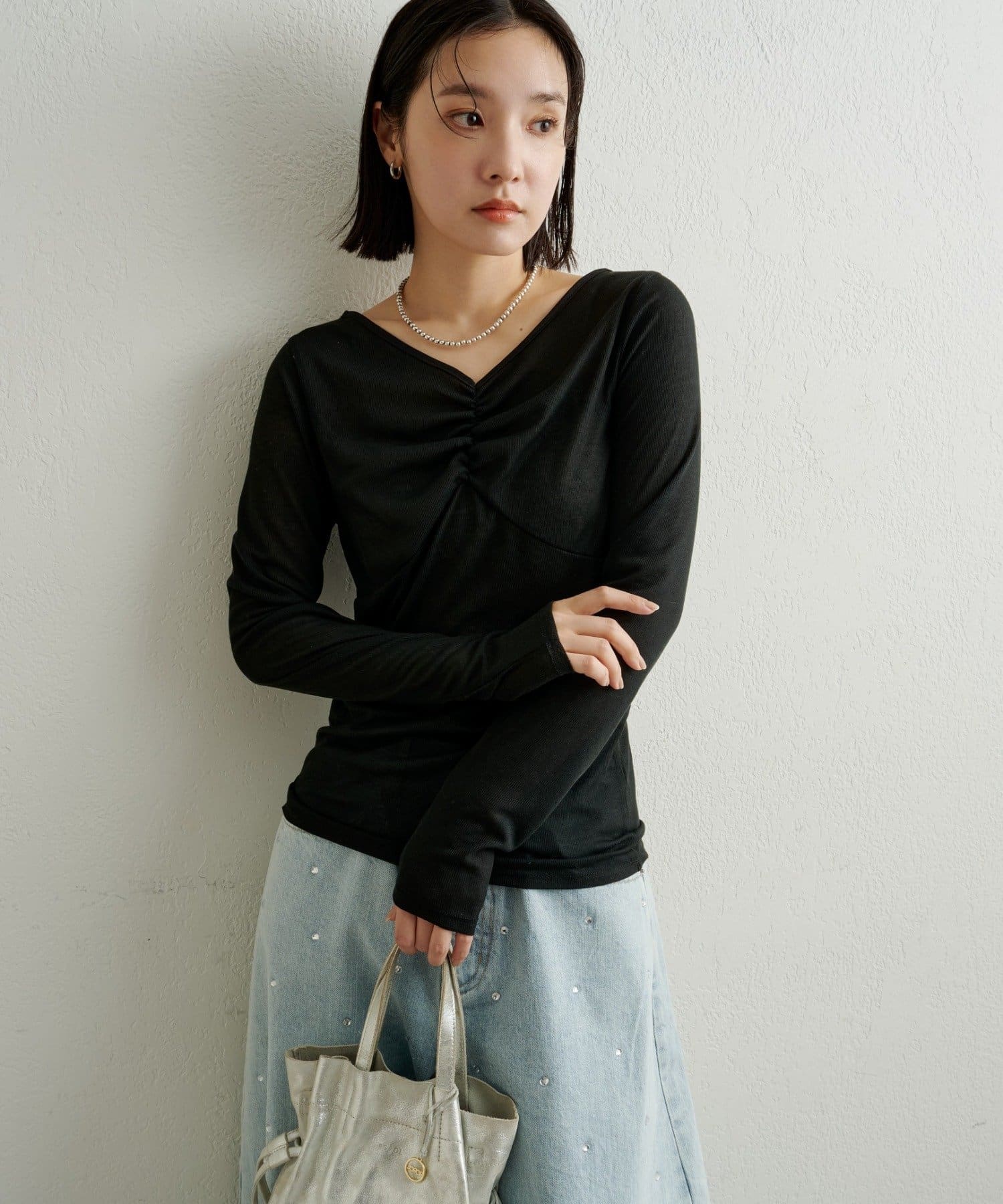 ・Vネックと胸元のデザインがさりげなく女性らしさを演出してくれます。