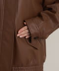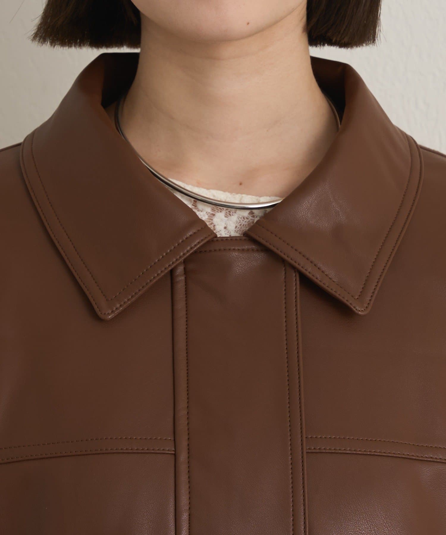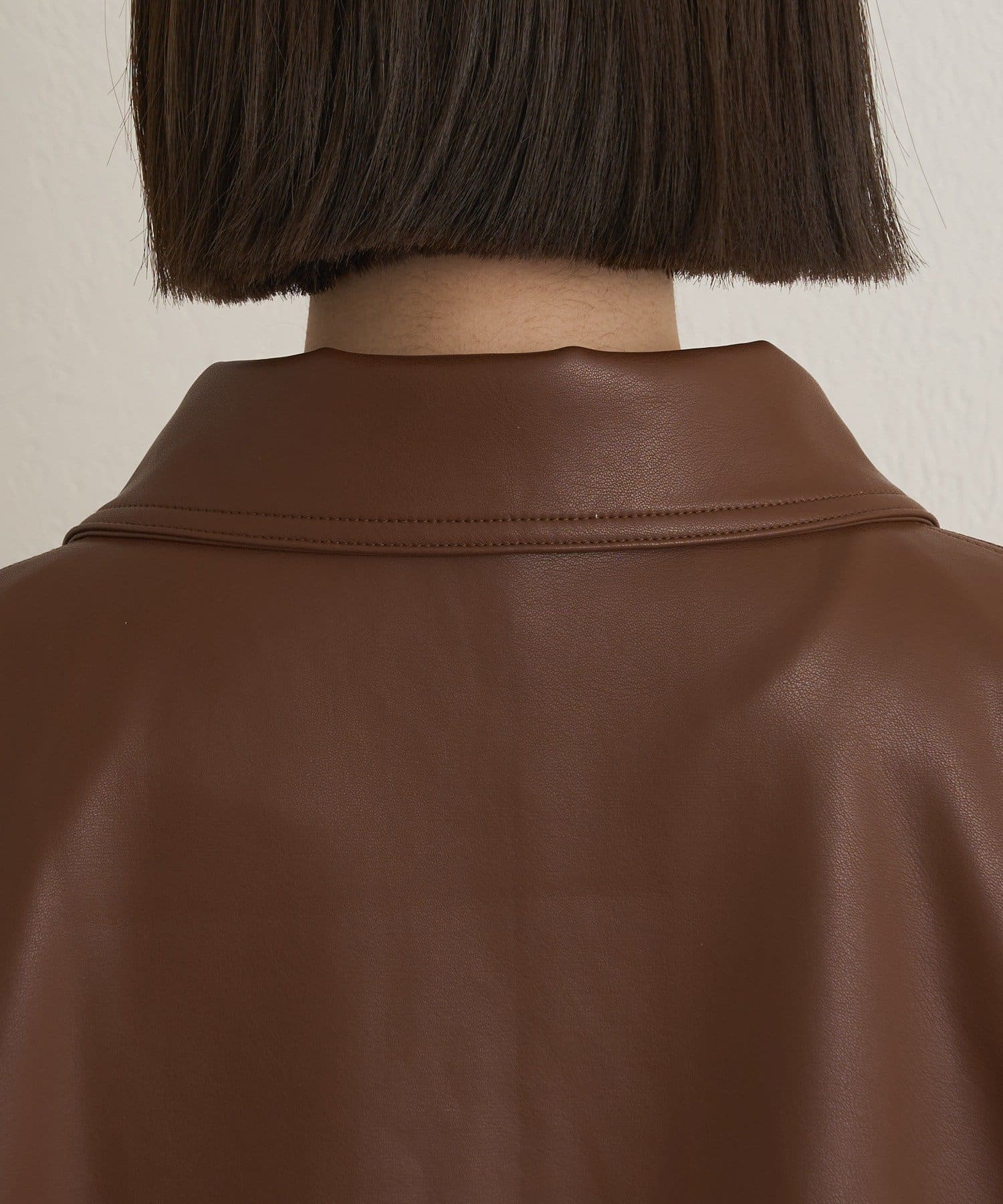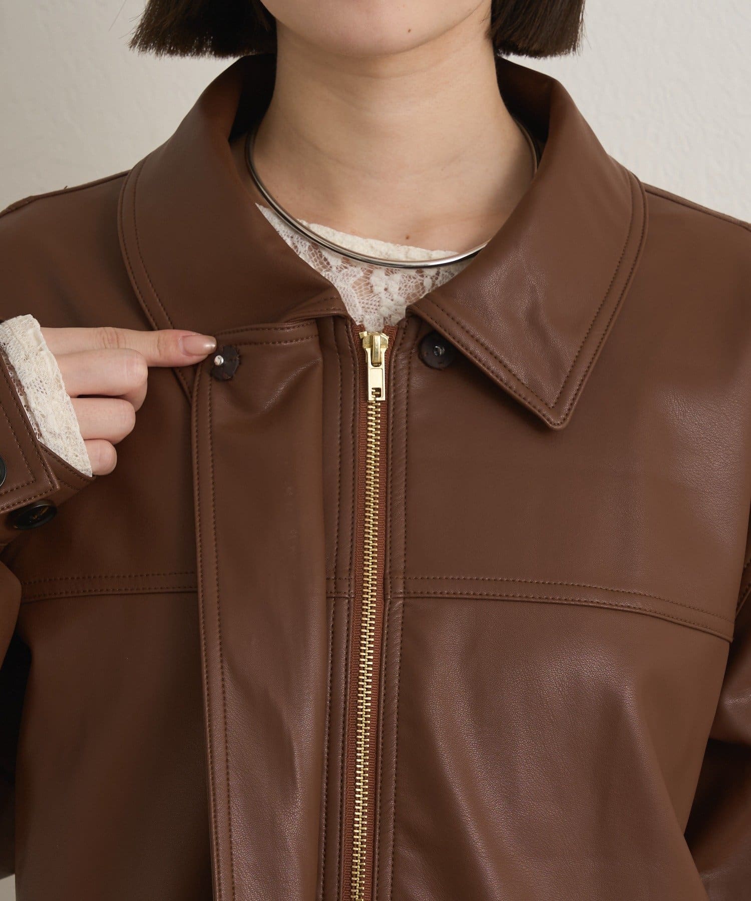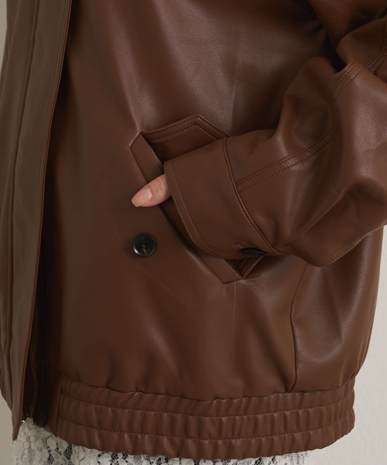 ・高級感ある光沢と質感を持ち合わせたフェイクレザーブルゾン。