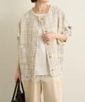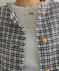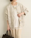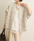 ・上品なツイード素材のノーカラージャケット。