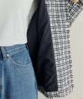 ・袖口や裾の切りっぱなしのデザインや金ボタンがポイントになり、一枚羽織るだけで着映えします。