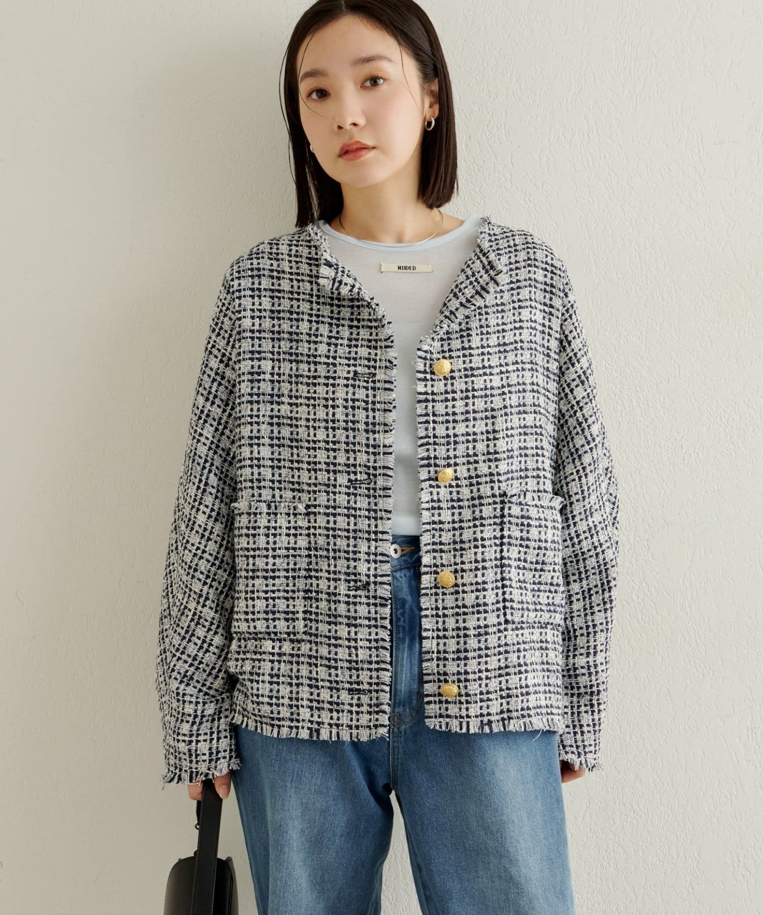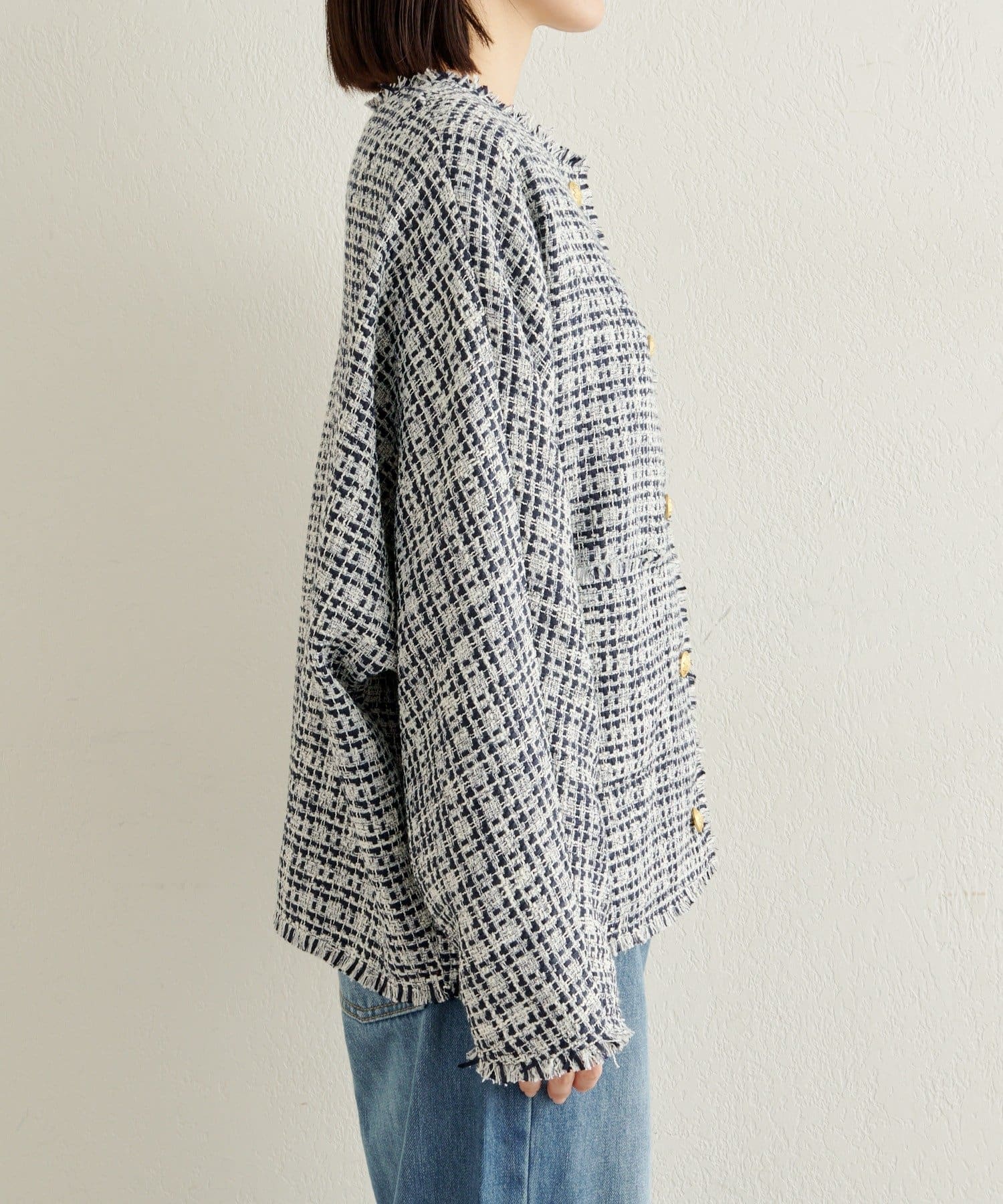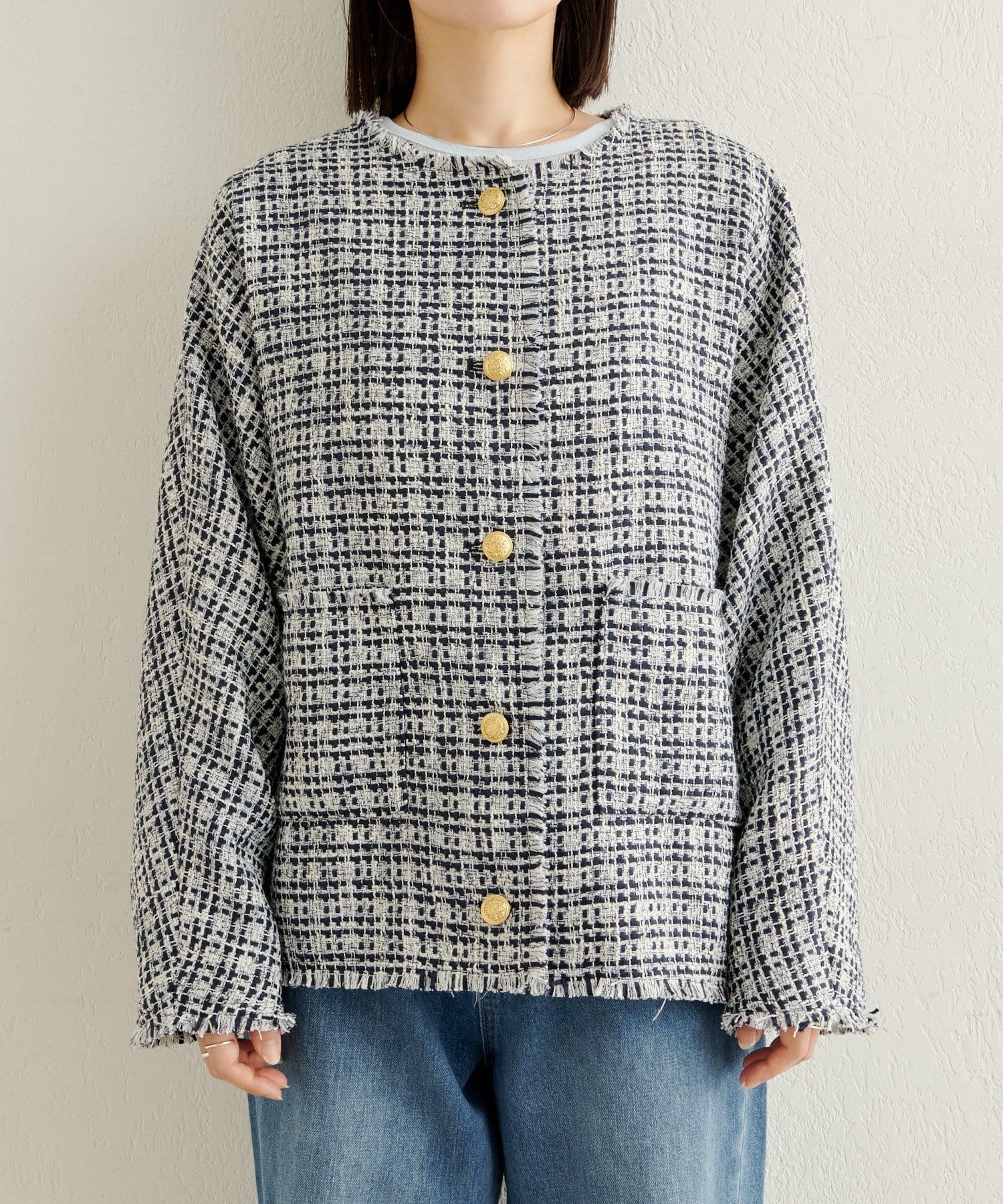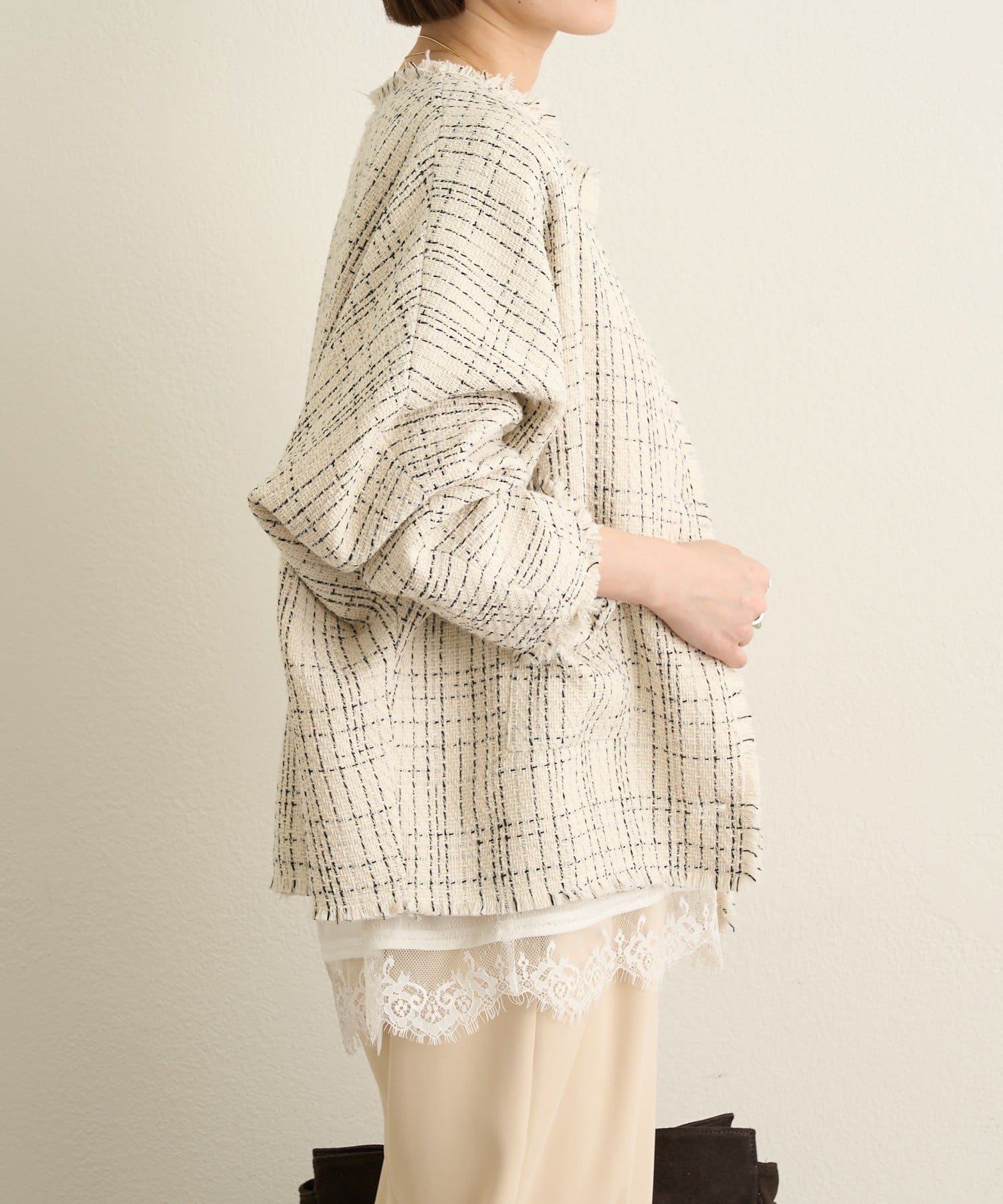 ノーカラーツイードジャケット