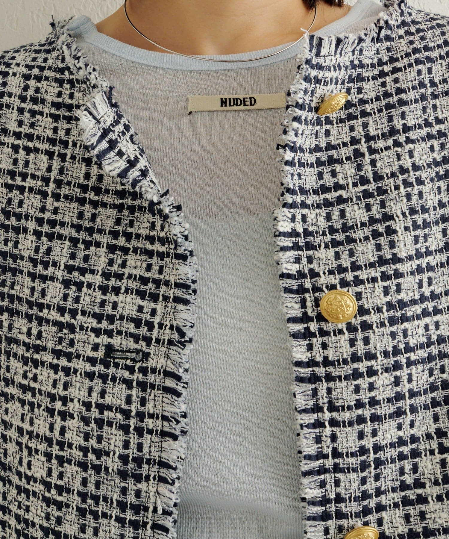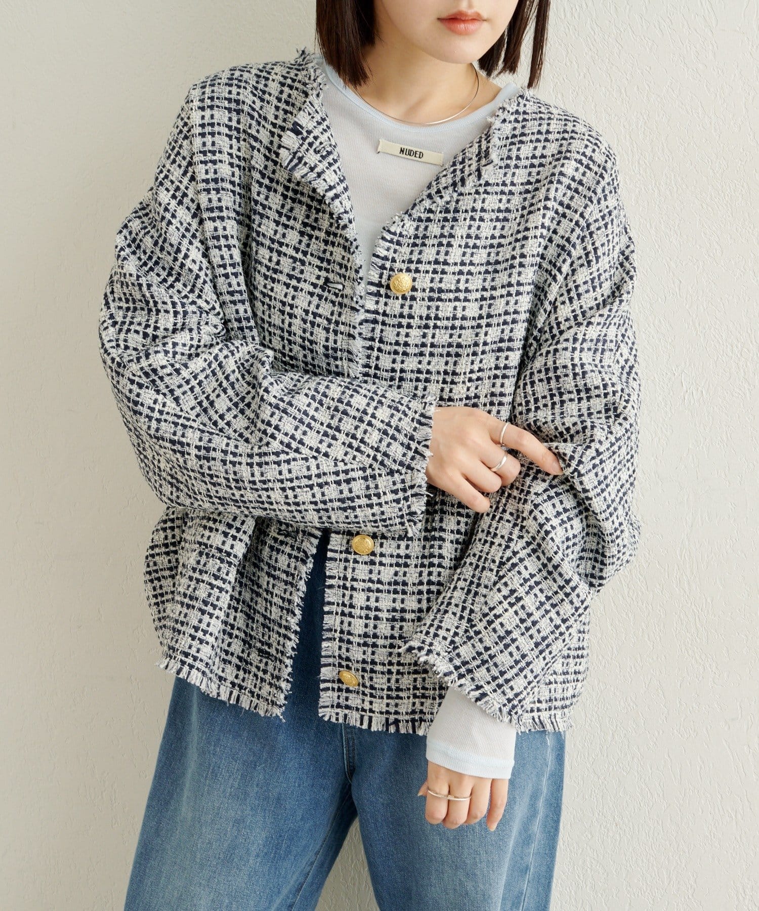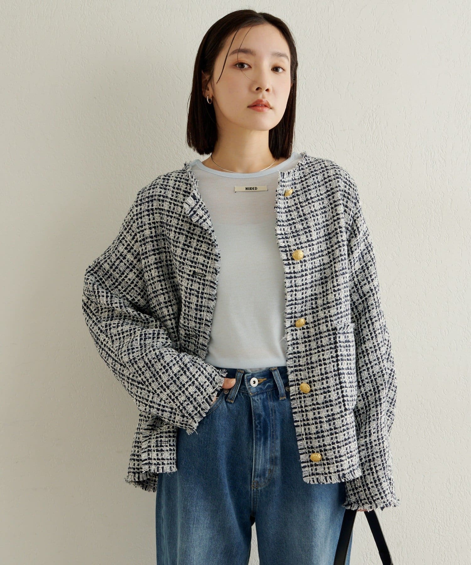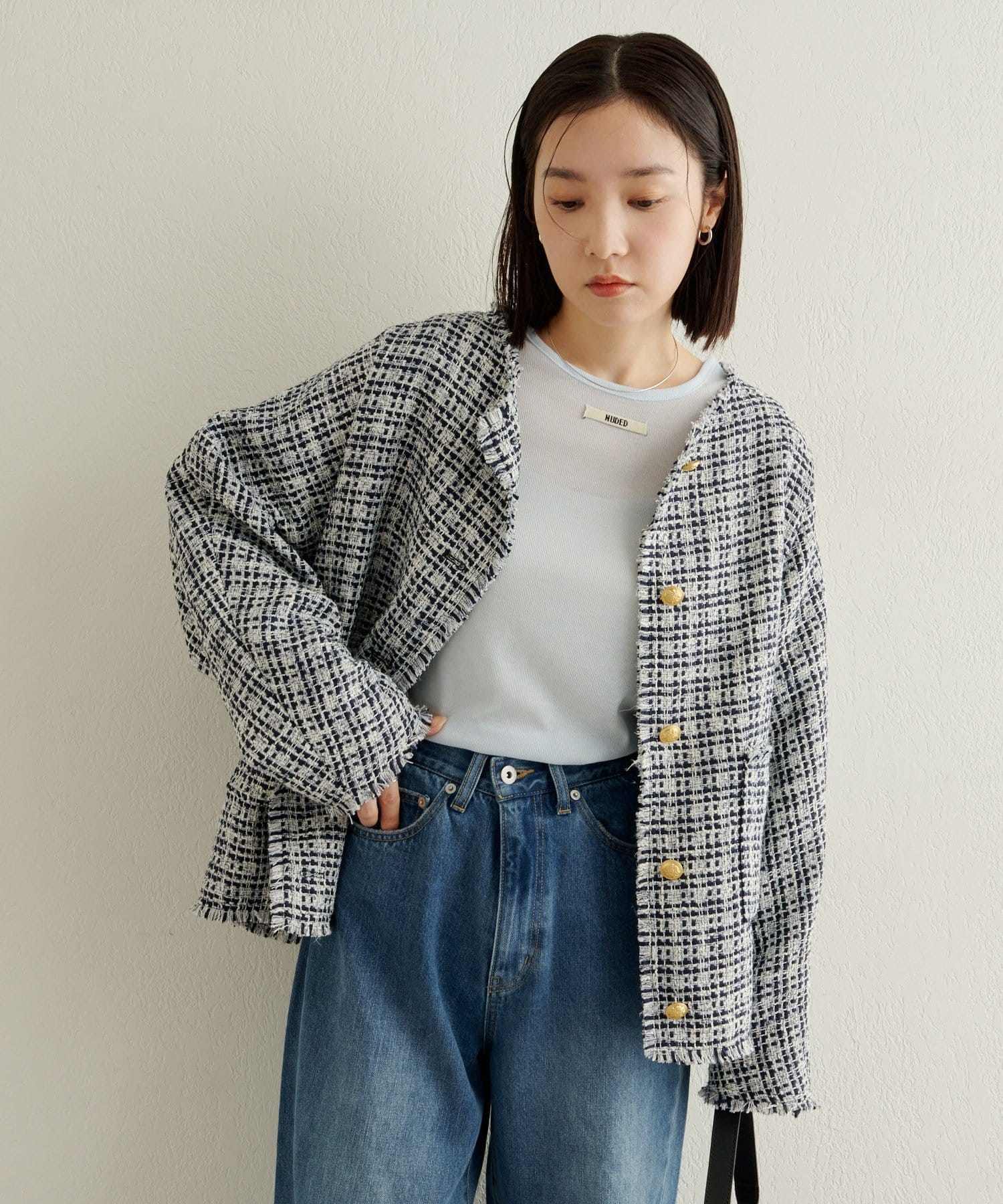 ノーカラーツイードジャケット