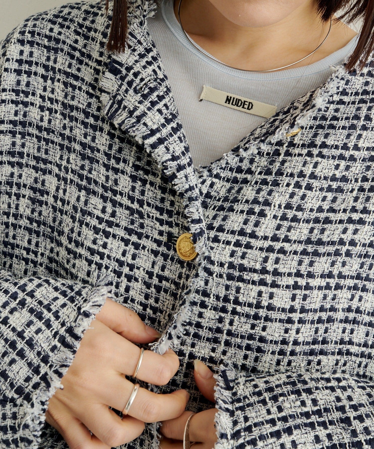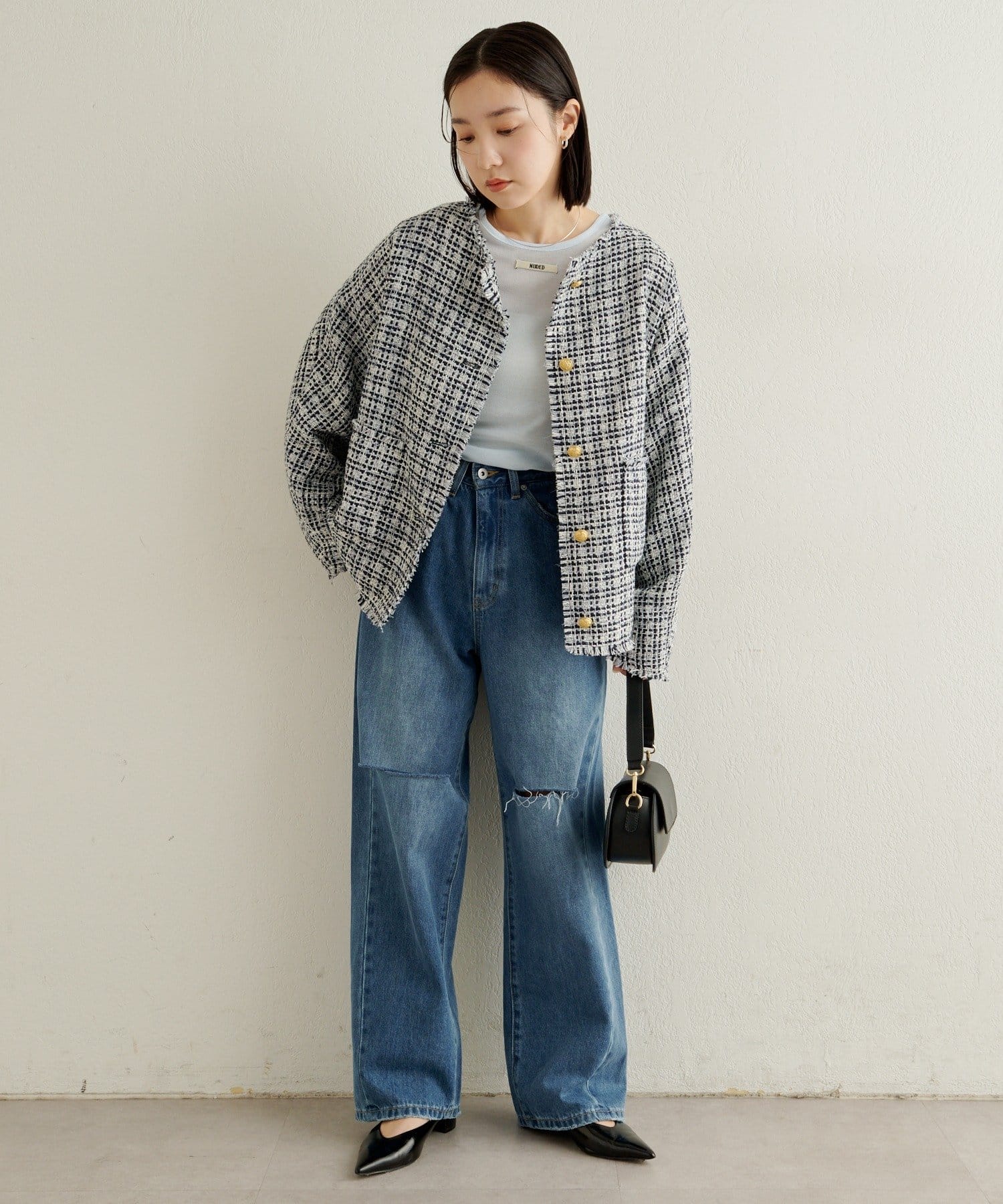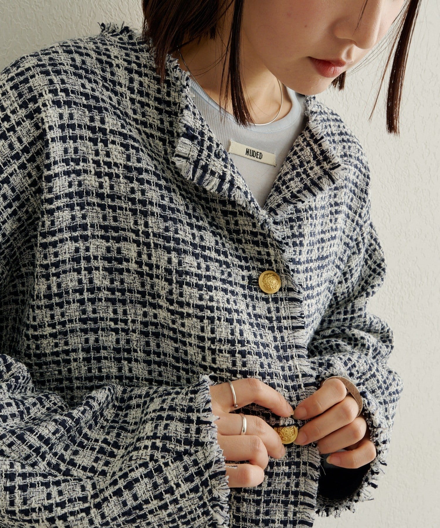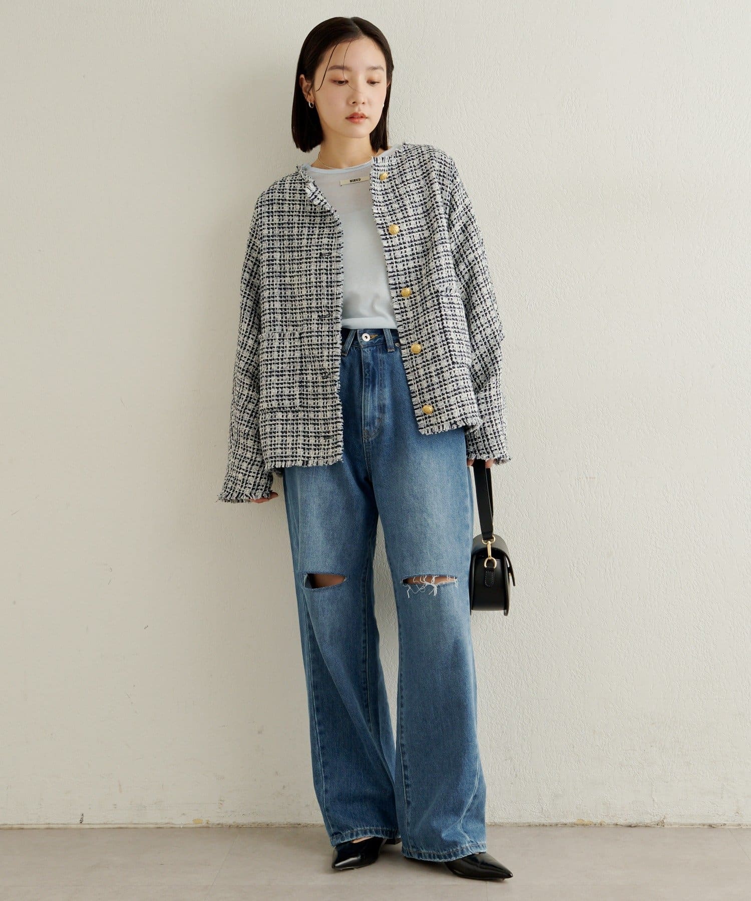 ノーカラーツイードジャケット