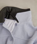 ・襟部分のレザーがコーディネートのさりげないアクセントに◎取り外しも可能です。