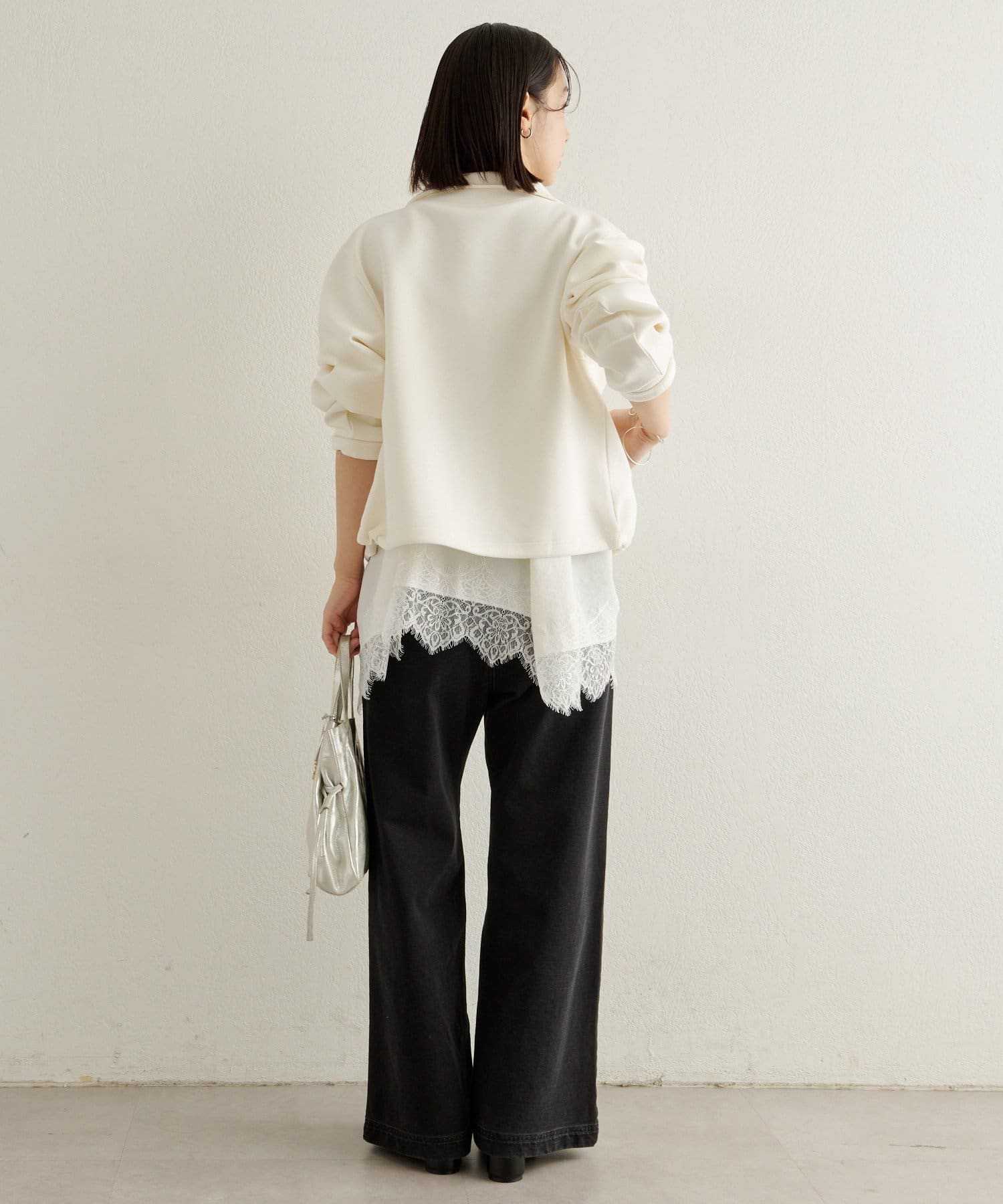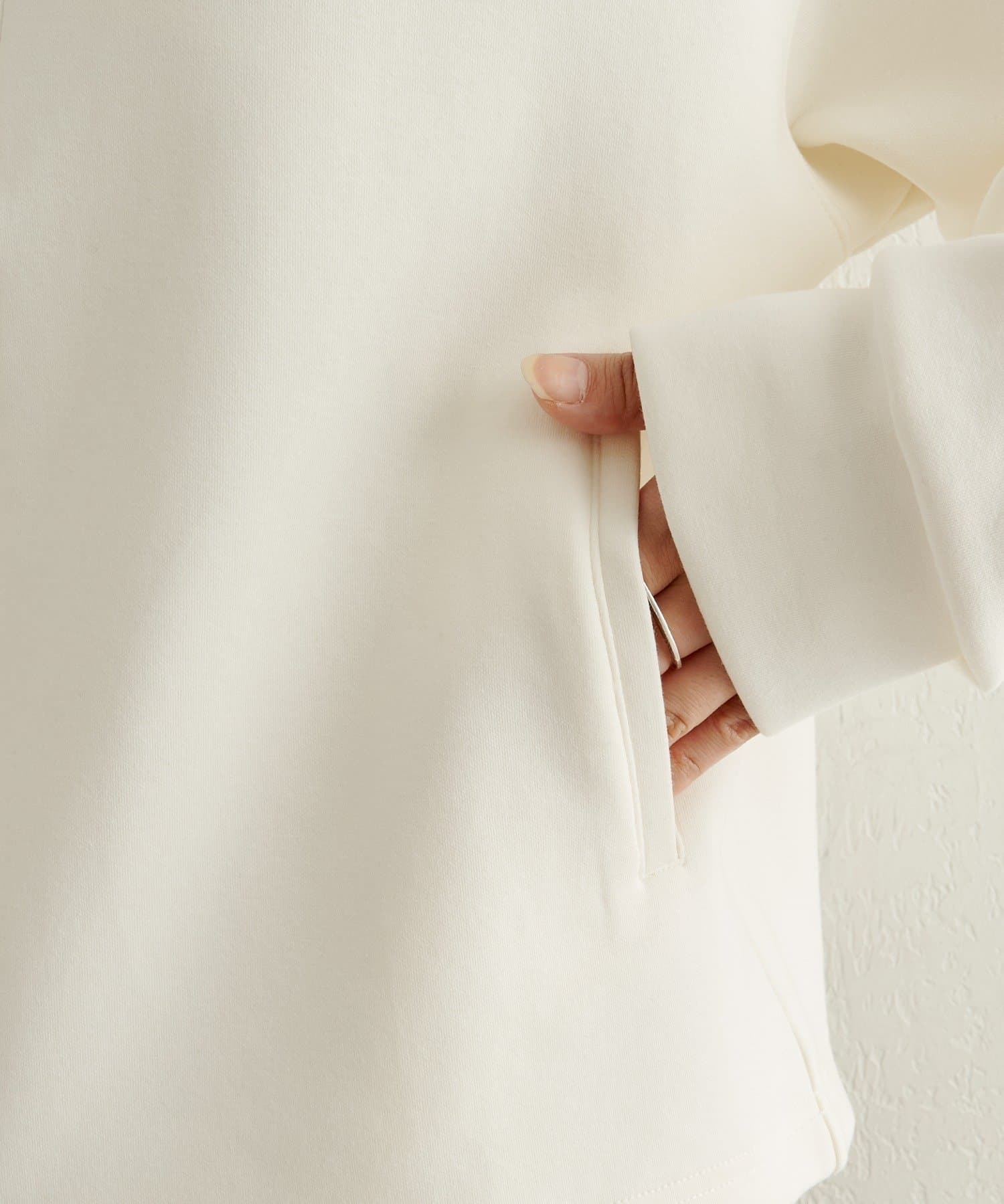 ・ストレッチ性がありリラクシーな着心地に加え、表面のハリ感できちんと見えするのも嬉しいポイント◎