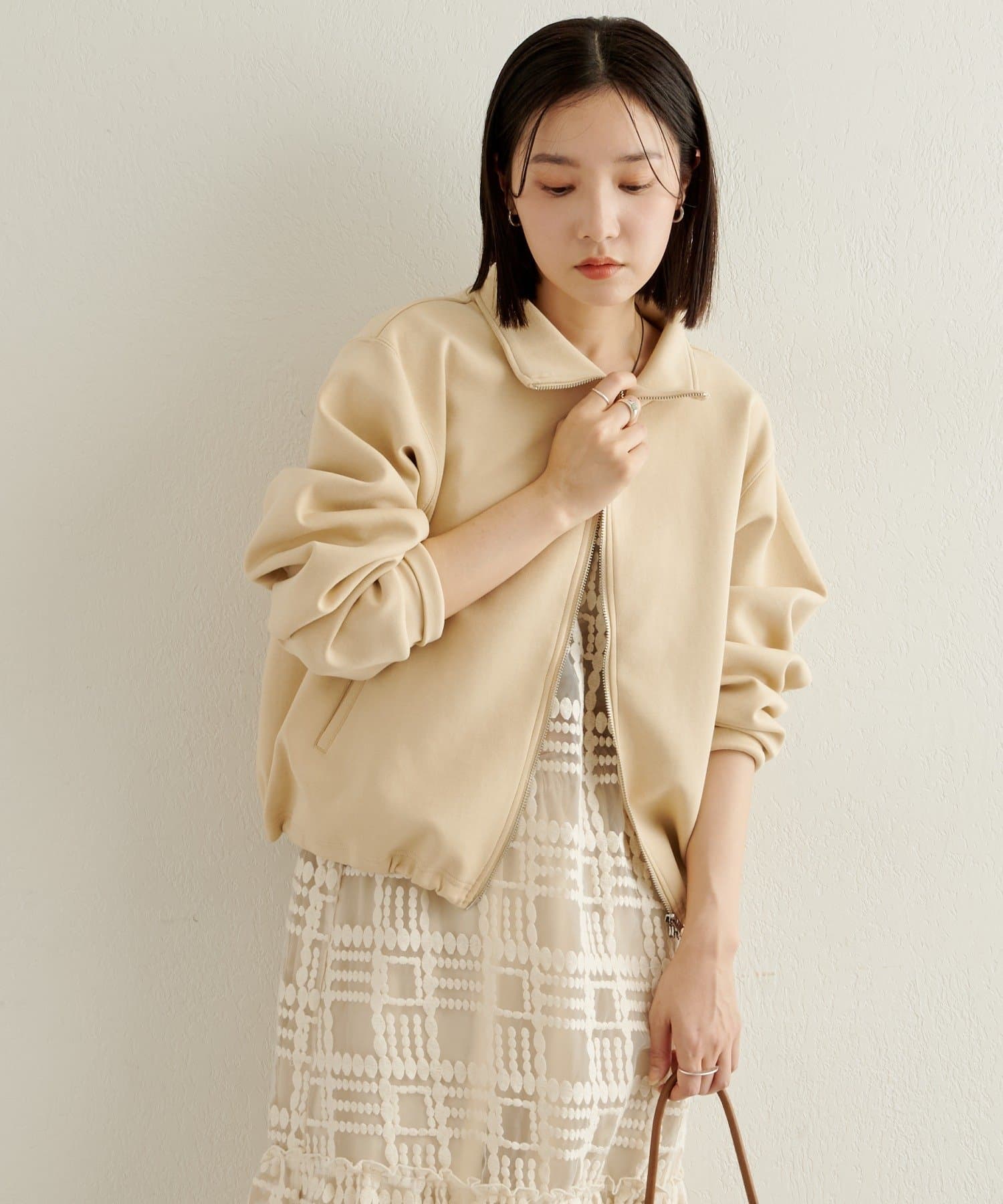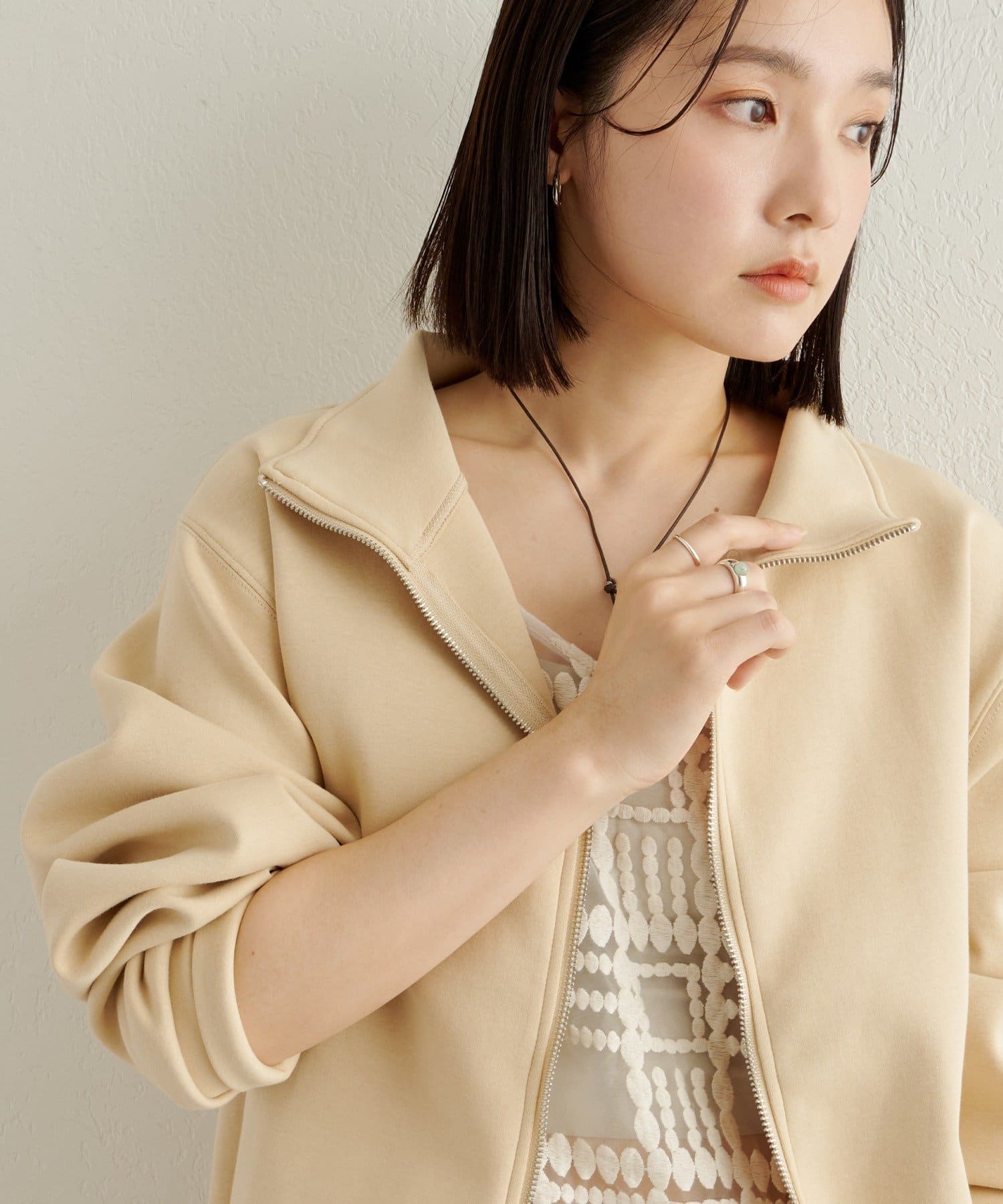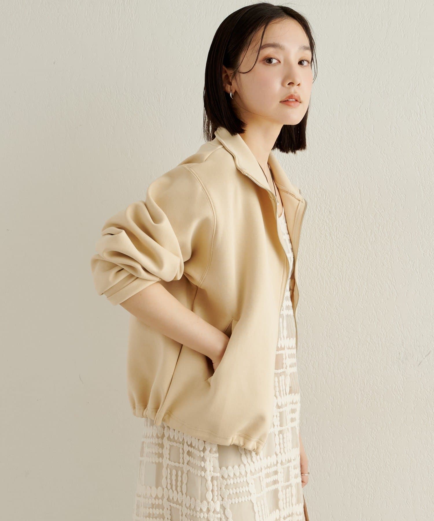 ・ハリと伸縮性のあるポンチ素材を使用した、カジュアルブルゾン。