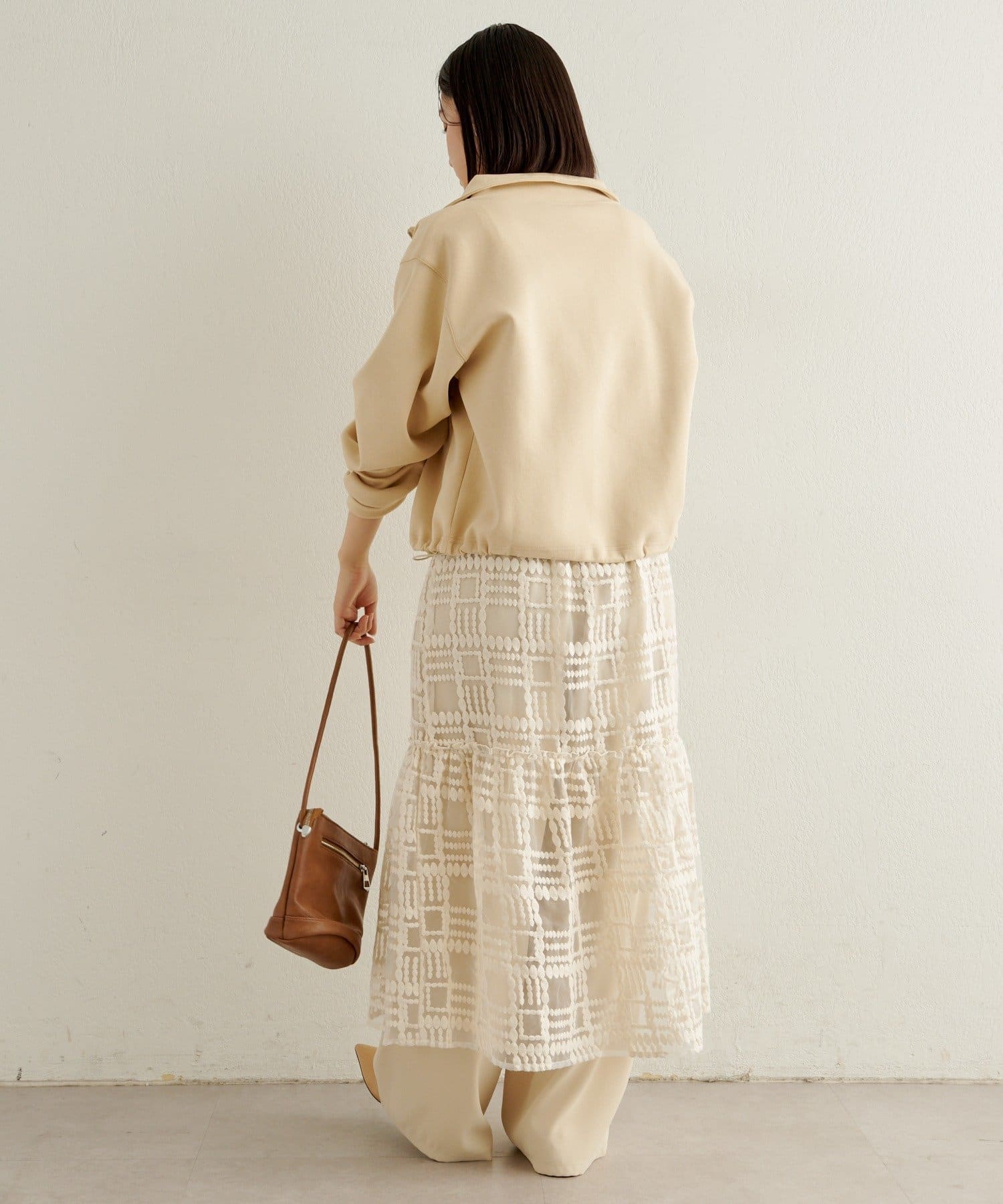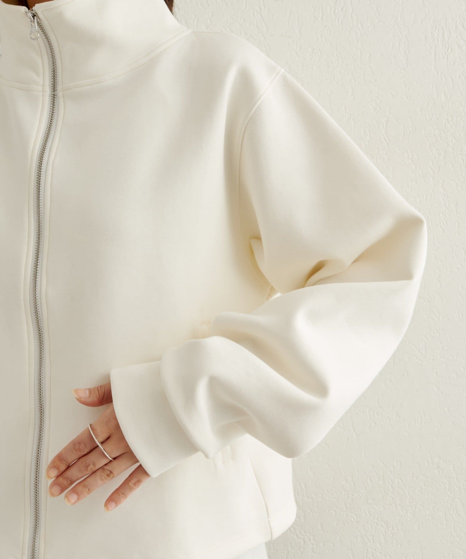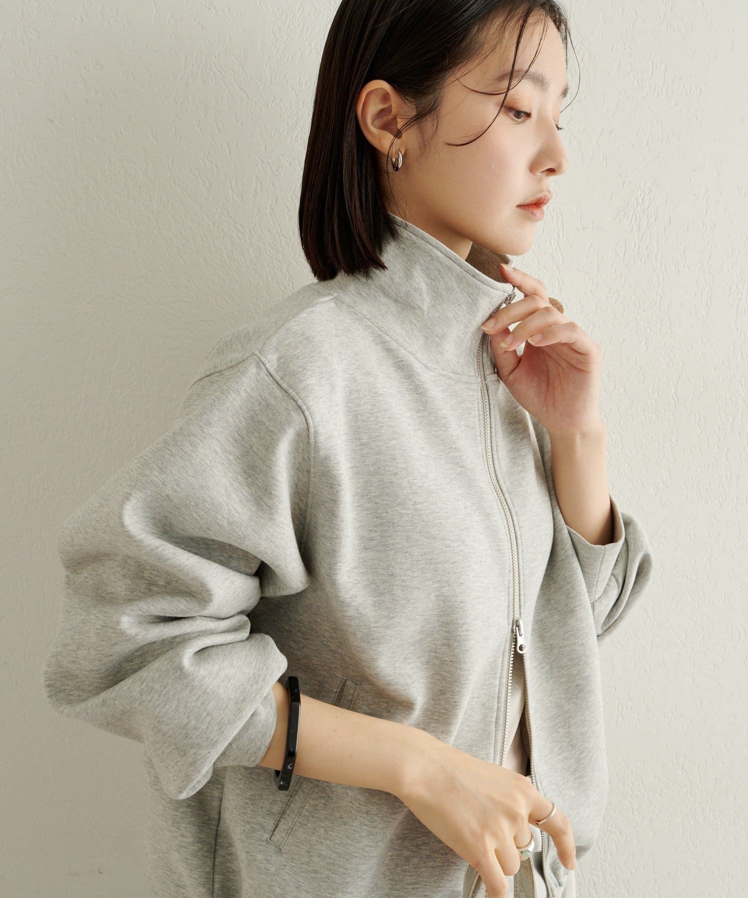 ・ハリと伸縮性のあるポンチ素材を使用した、カジュアルブルゾン。
