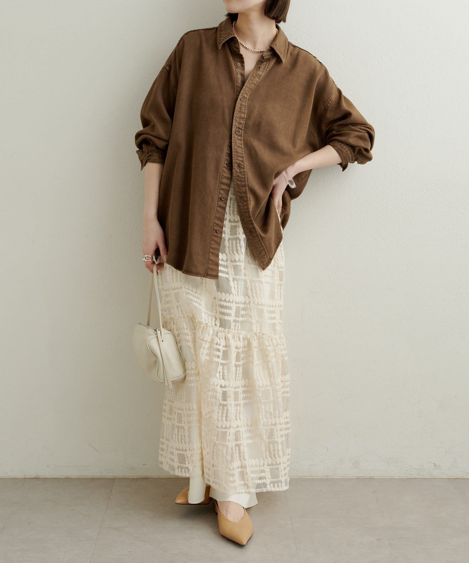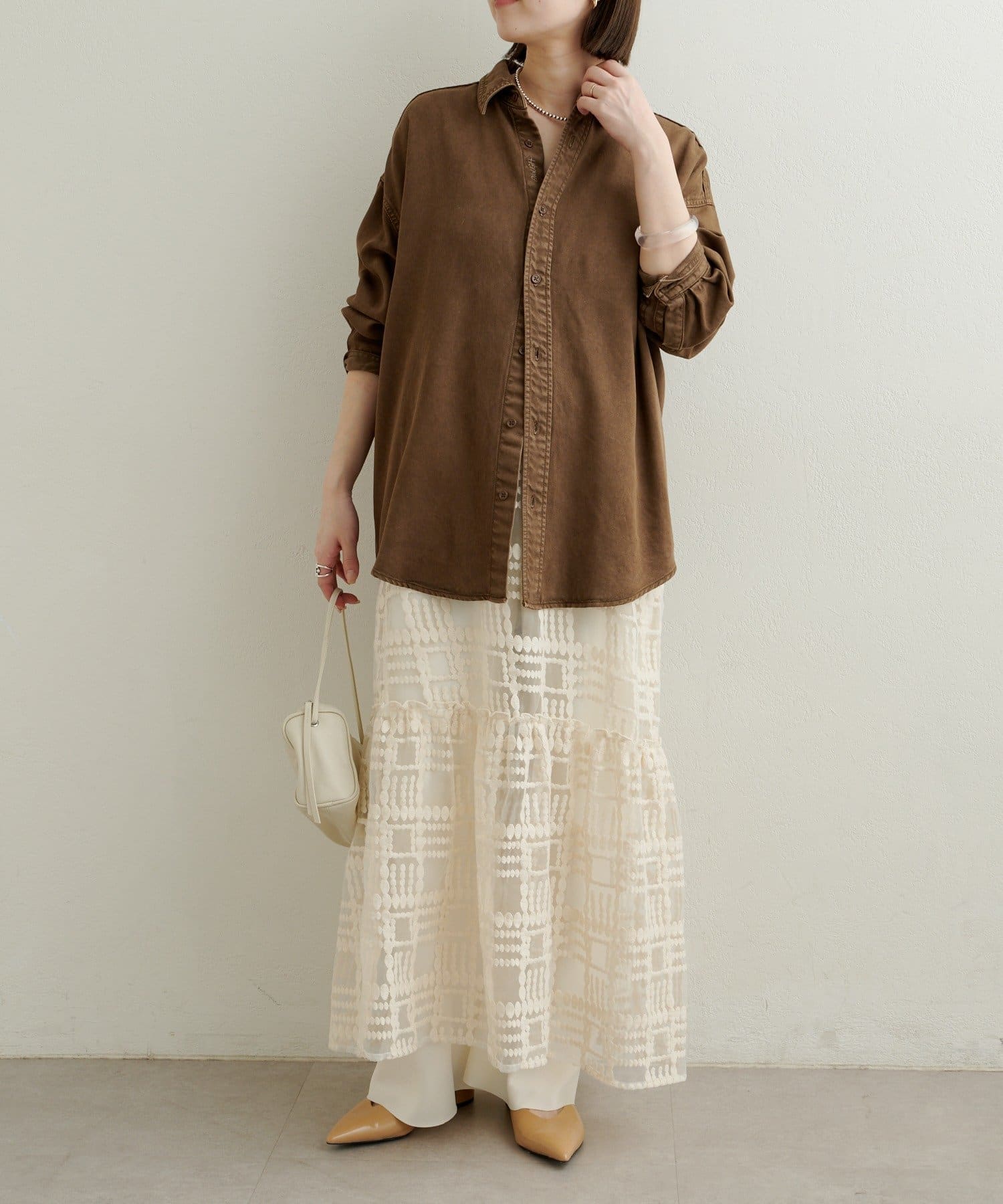 ・シアー素材がコーディネートに抜け感を施してくれる一枚。