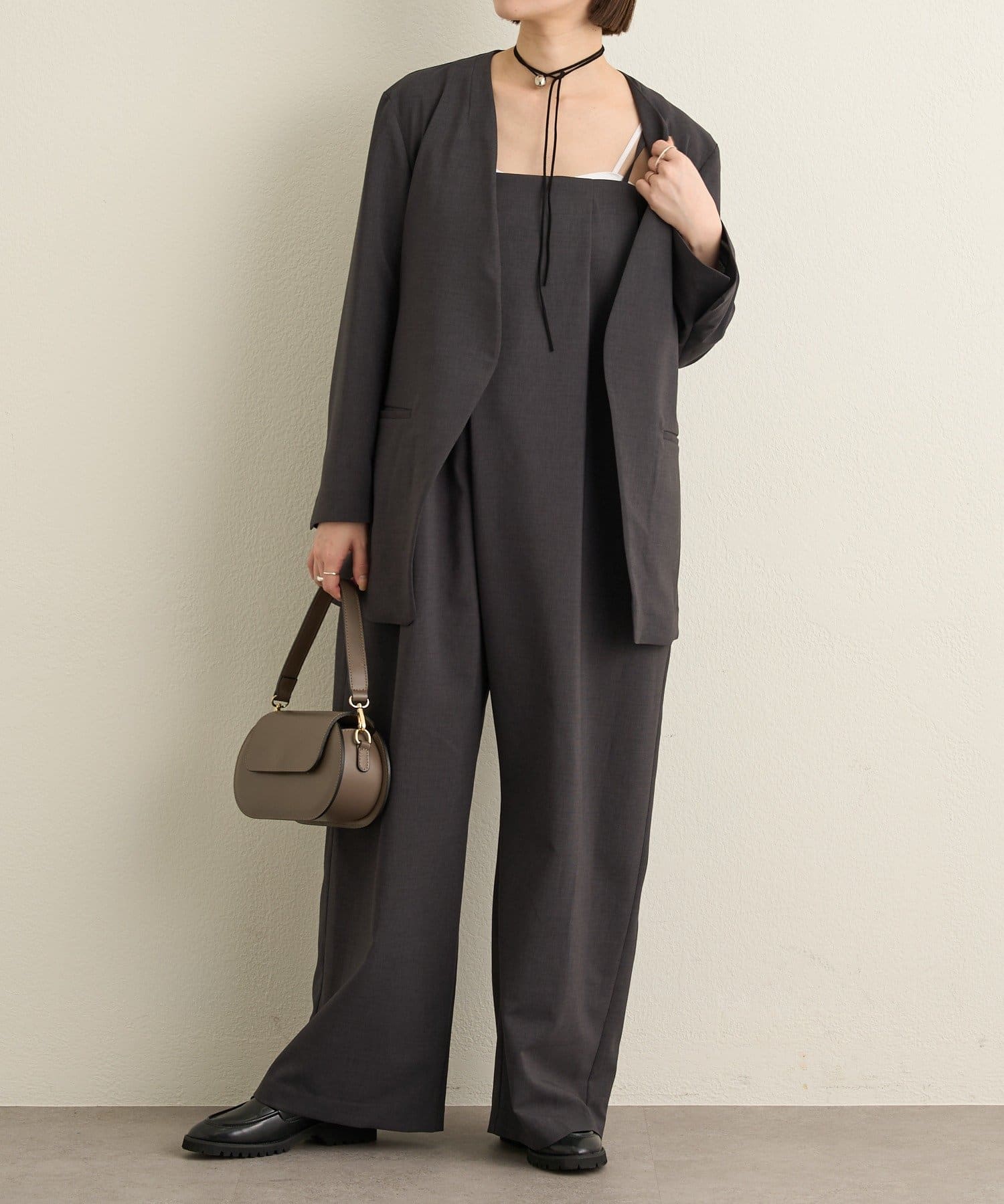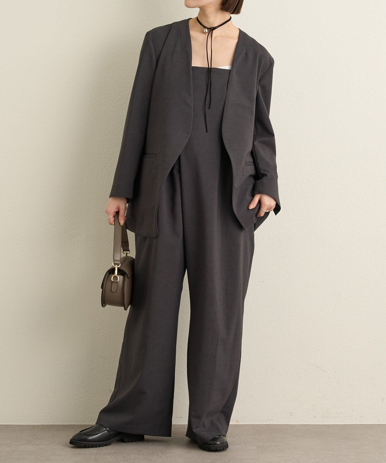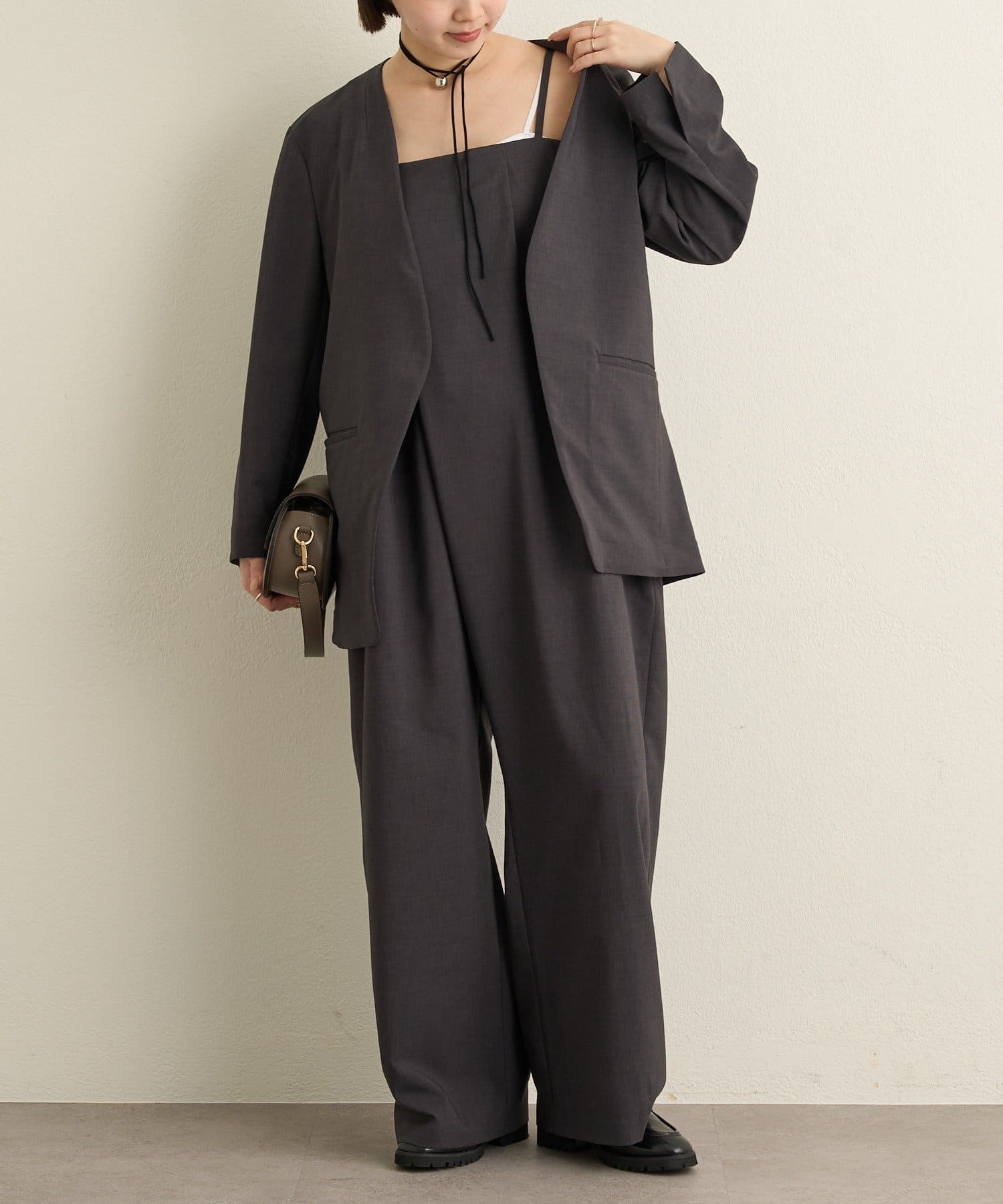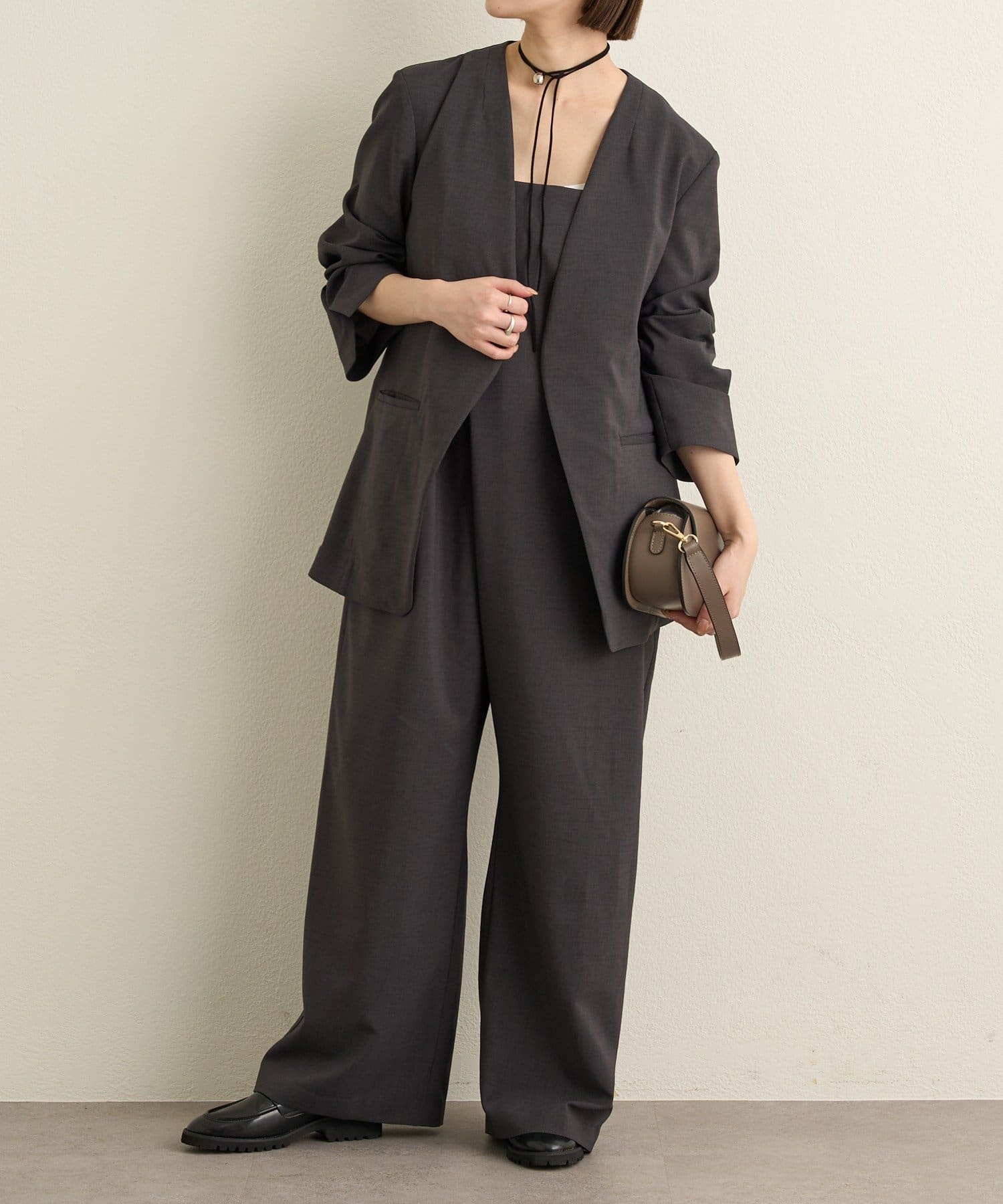 ・同素材のリネンライクノーカラージャケットとのセットアップもおすすめ