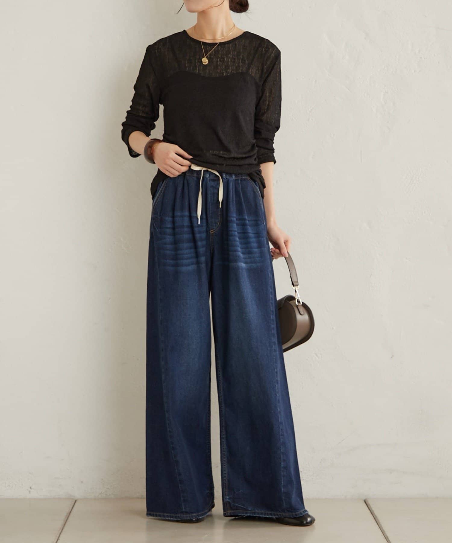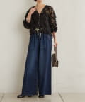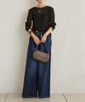 ・イージーな履き心地ながら、フレアでワイドなシルエットが脚のラインを拾わず脚長効果のあるデニムパンツ