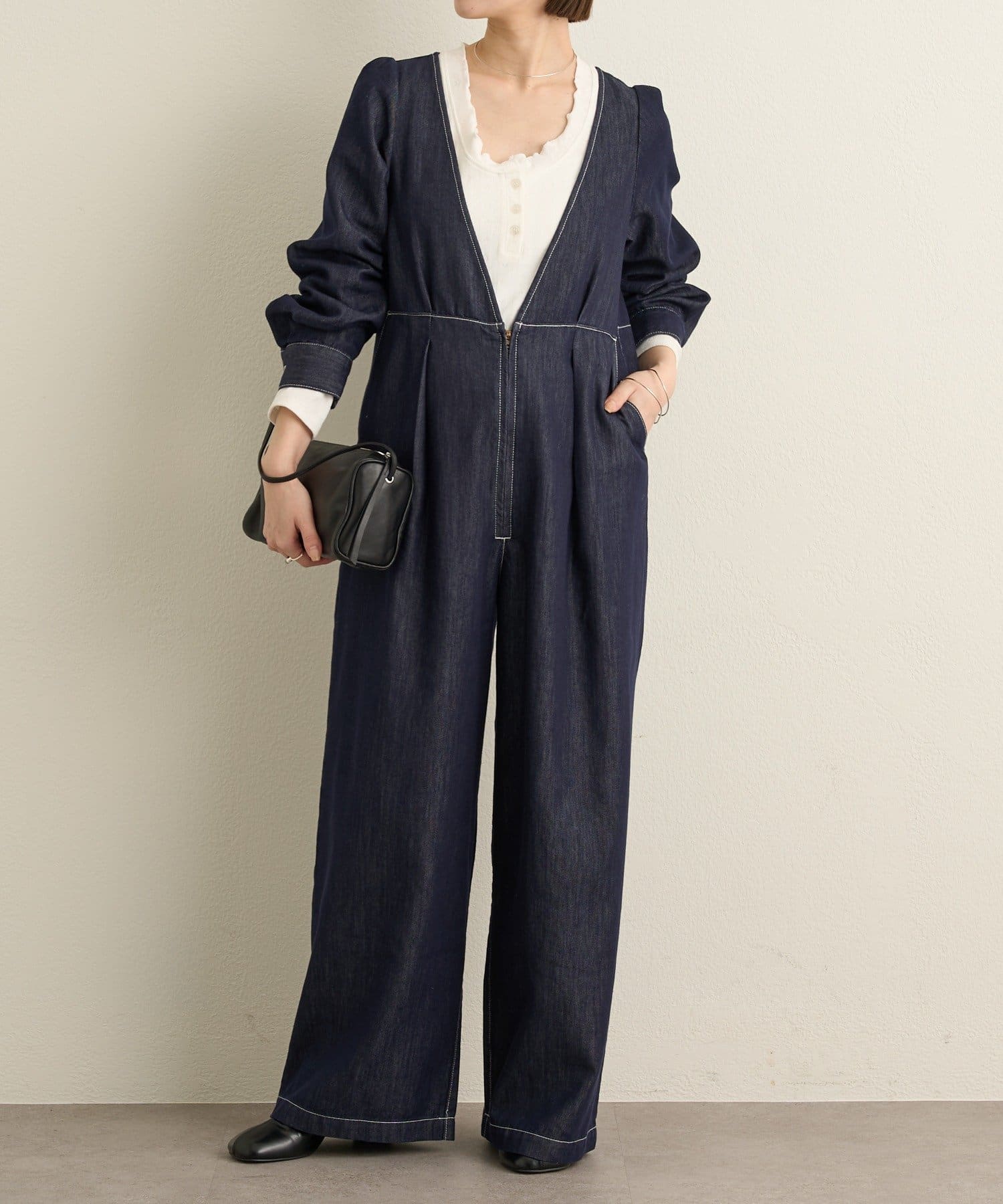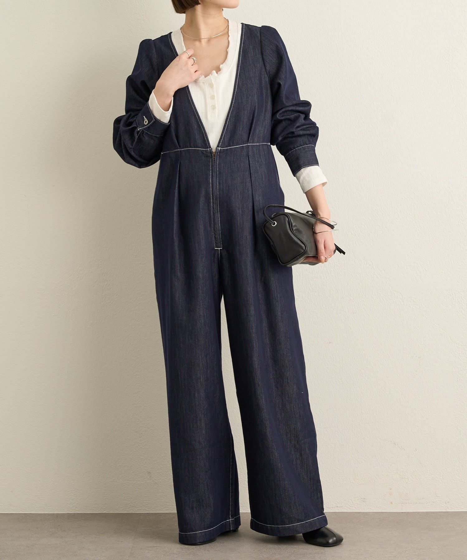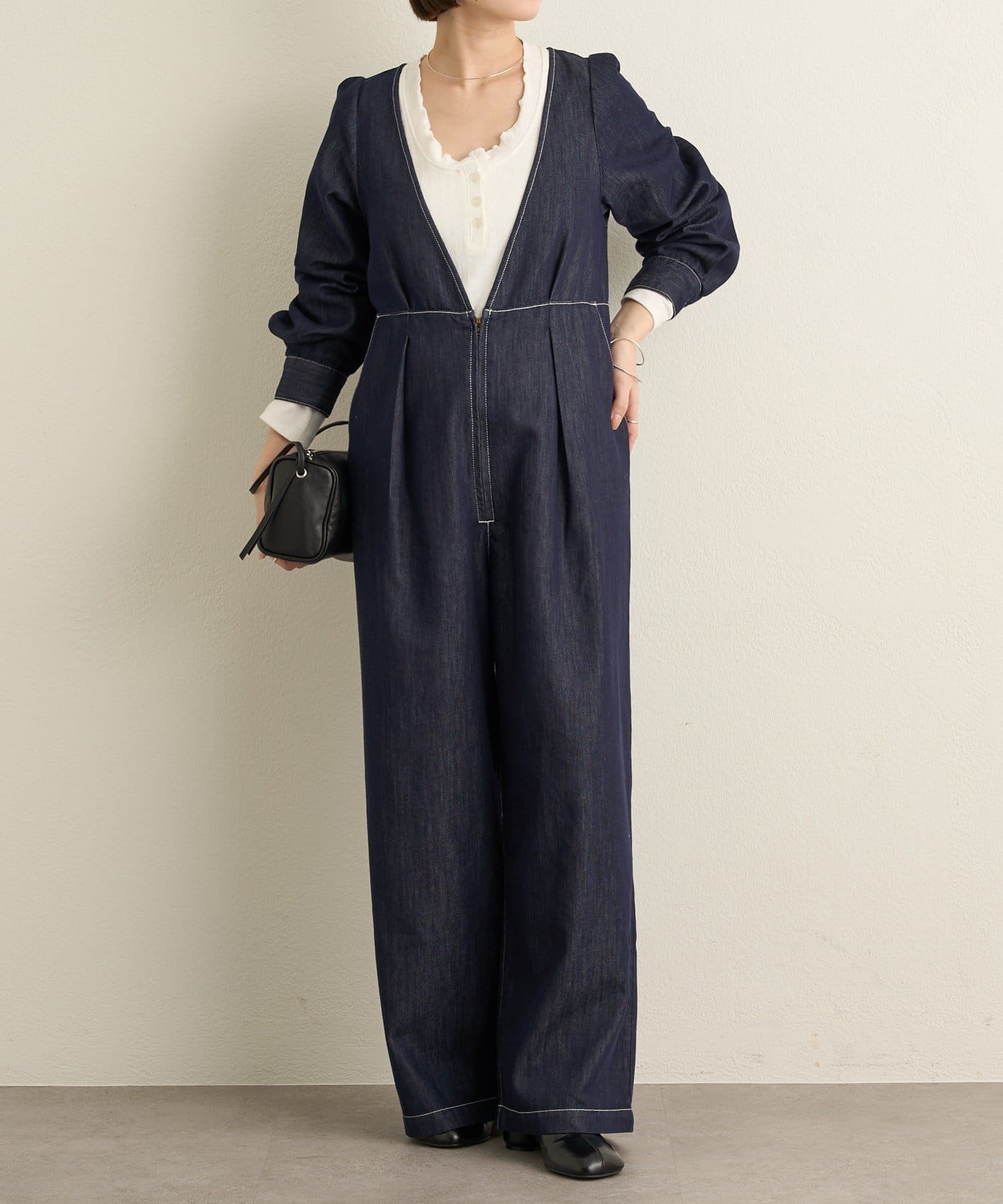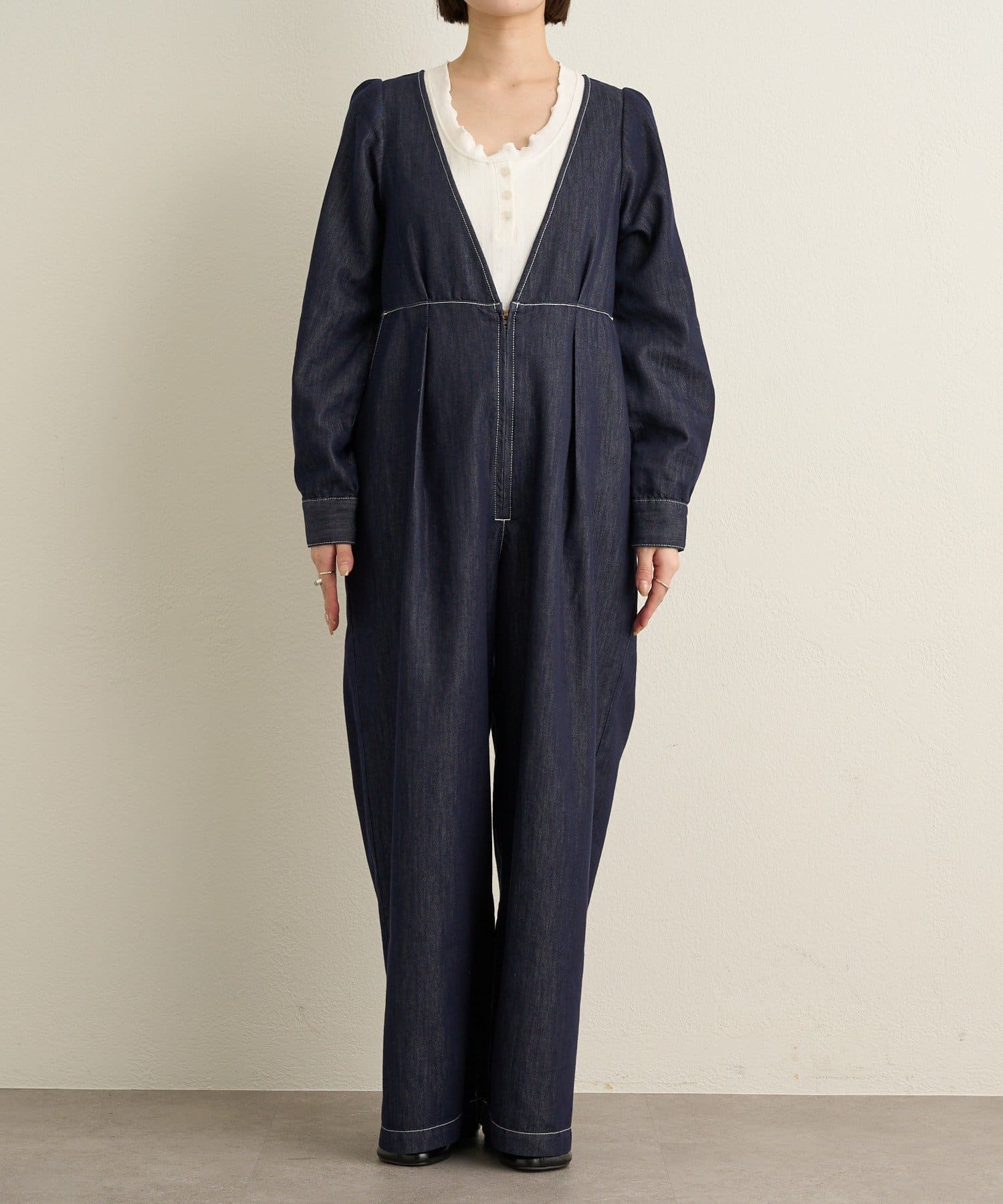 一枚でスタイリングが決まるデニムオールインワン
