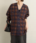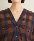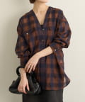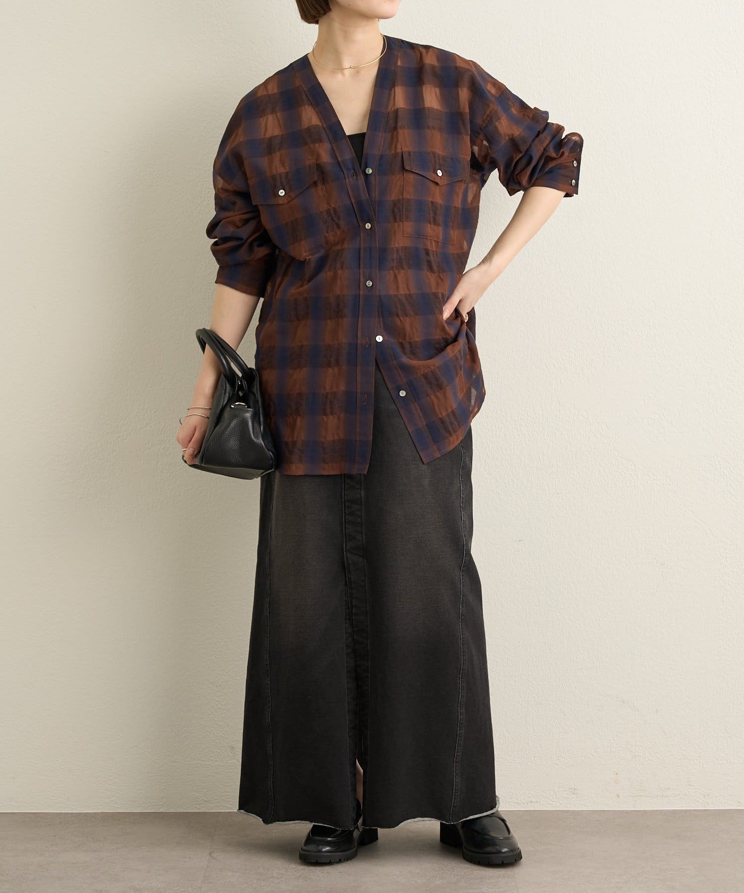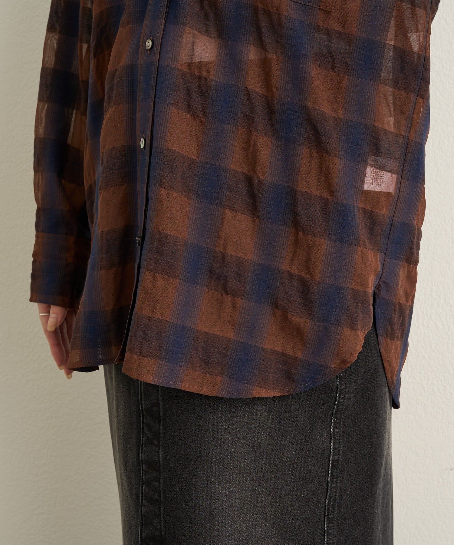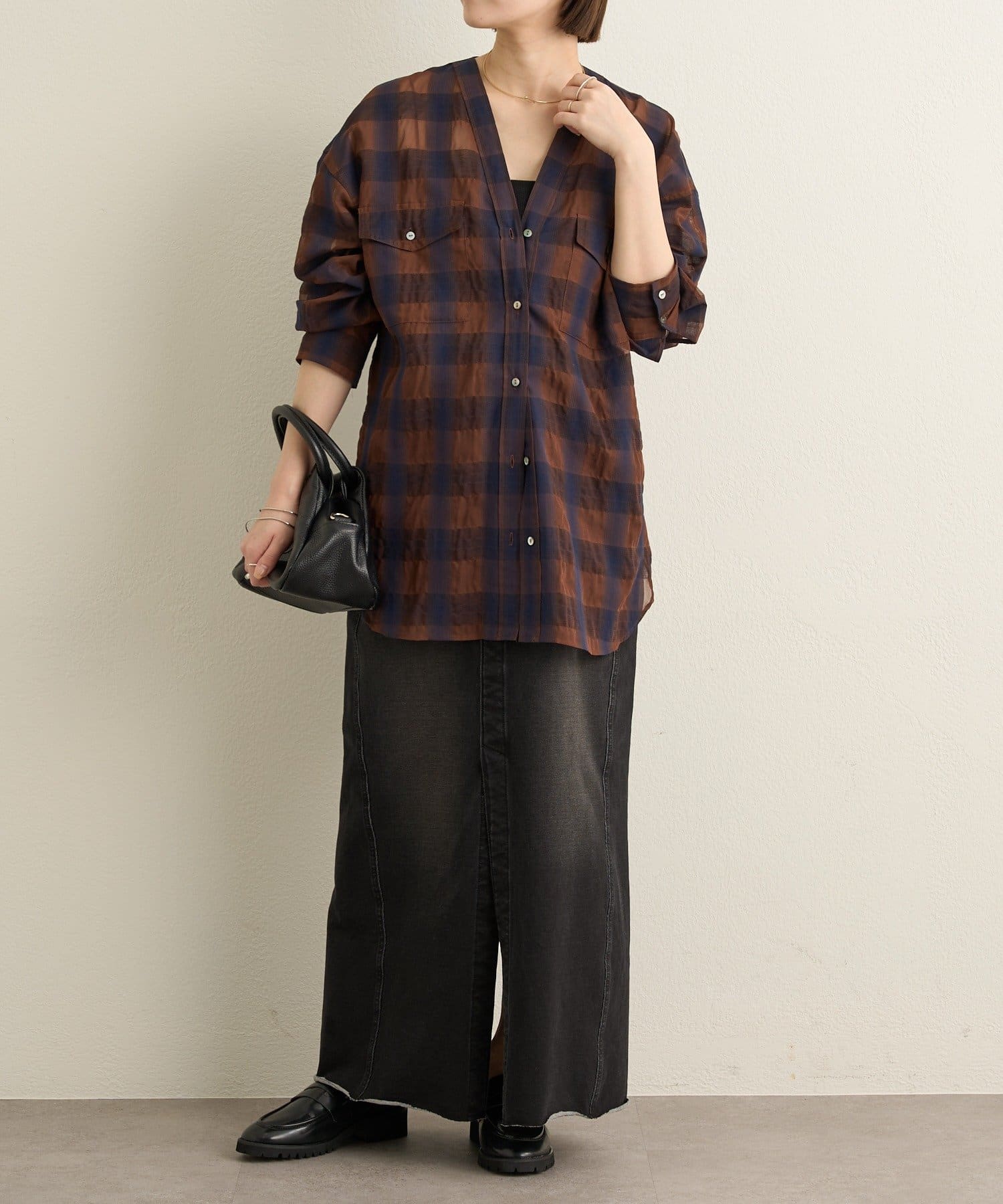 ・透け感のある素材にチェックのデザインが、カジュアルすぎず上品さも兼ね備えたブラウス。