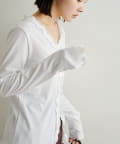 ・首元のさりげないフリルデザインが女性らしさを演出してくれます。。