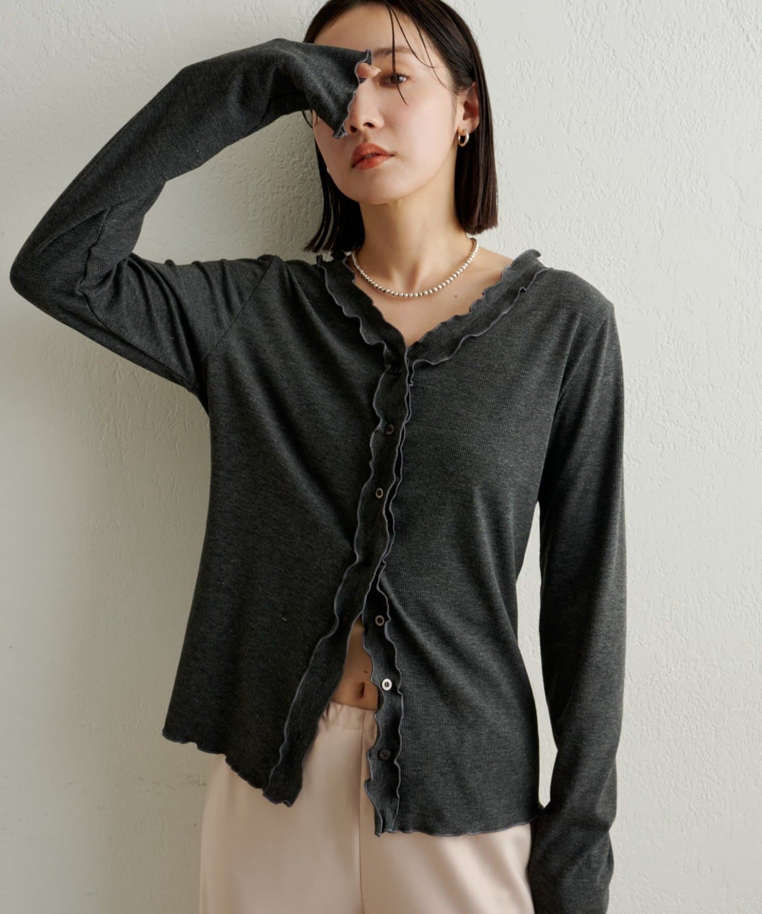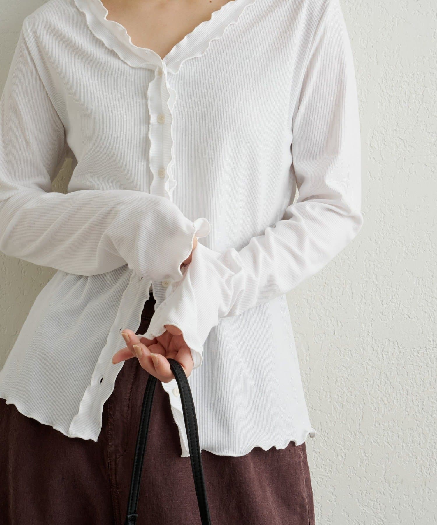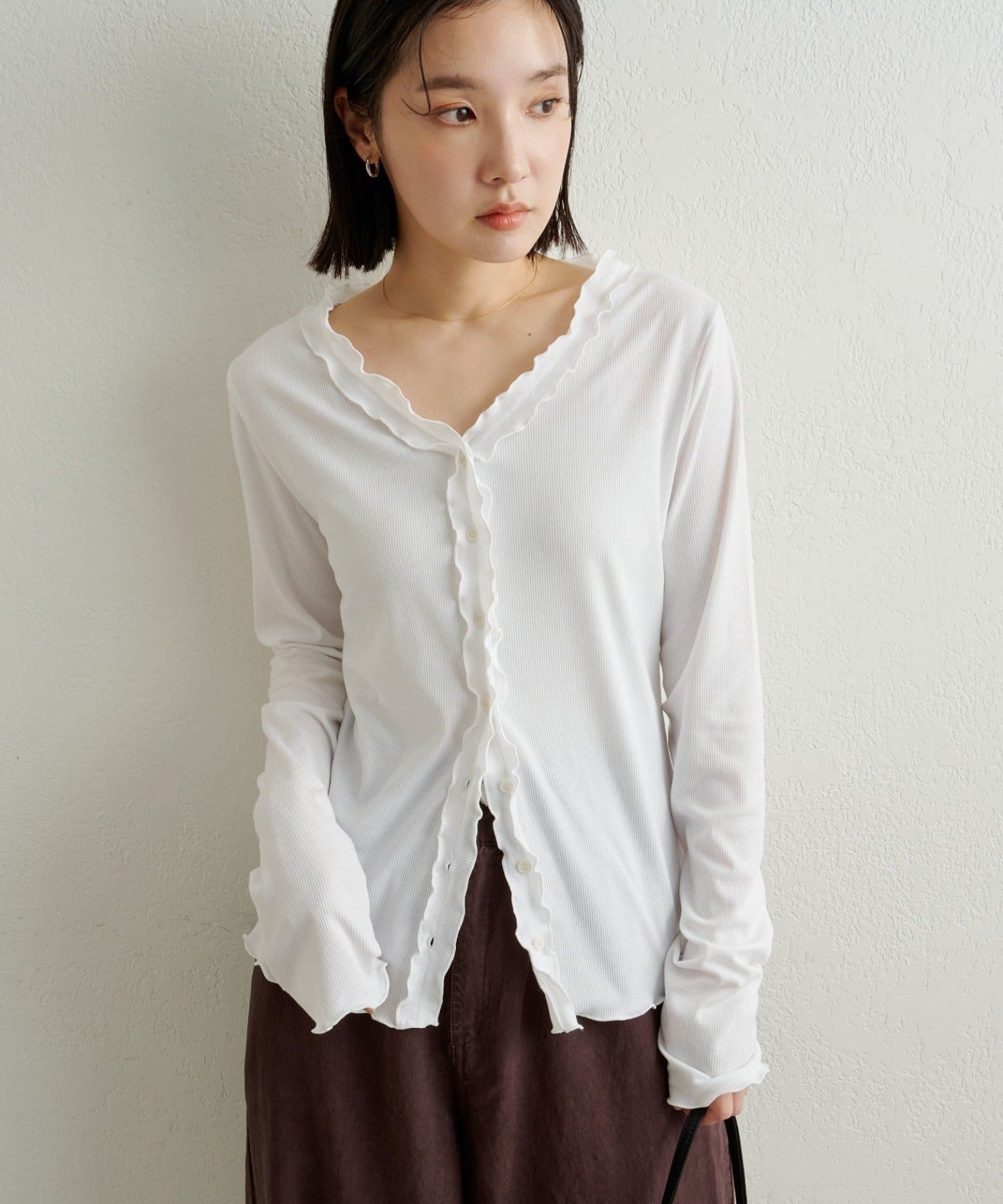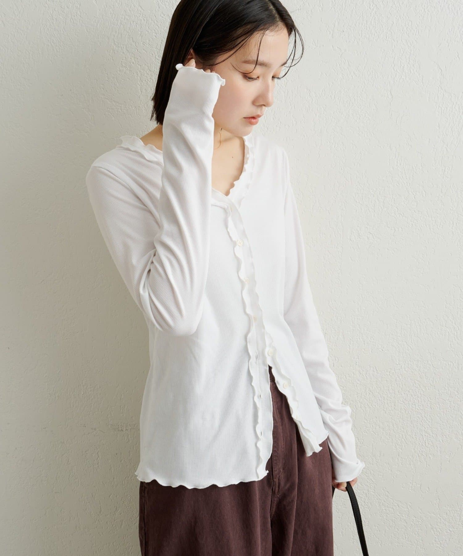 さりげないフリルが大人可愛いフリルリブカーディガン